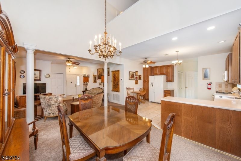 Welcome to Flemington Fields Community. Thoughtfully designed with an open-concept floor plan. The main level features a bright living room with a gas fireplace and a spacious dining area with soaring ceilings and sliders leading to a private deck and patio perfect for indoor-outdoor living and entertaining. The upgraded kitchen offers Corian countertops, premium cabinetry, new overhead lighting, and all appliances less than five years old. A conveniently located laundry room sits just off the kitchen. The first-floor primary suite includes new bedroom carpet, new bathroom light fixtures, a large walk-in closet, a private bath with a new walk- in shower, handicapped accessible and a linen closet for added storage. All custom Levolor blinds downstairs. For comfort and accessibility, the home includes a stair lift chair connecting the main and upper levels. The second floor features a guest bedroom, full bath, and a generous loft overlooking the main level ideal for a home office, den, or media space. Additional highlights include a powder room on the main level with new lighting, vanity and hutch. Full unfinished basement with a recently new hot water heater, offering abundant storage and shelving or future finishing potential. There is an attached one-car garage with a new ramp and shelving. Conveniently located minutes from major highways, mass transit, and shopping.