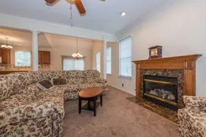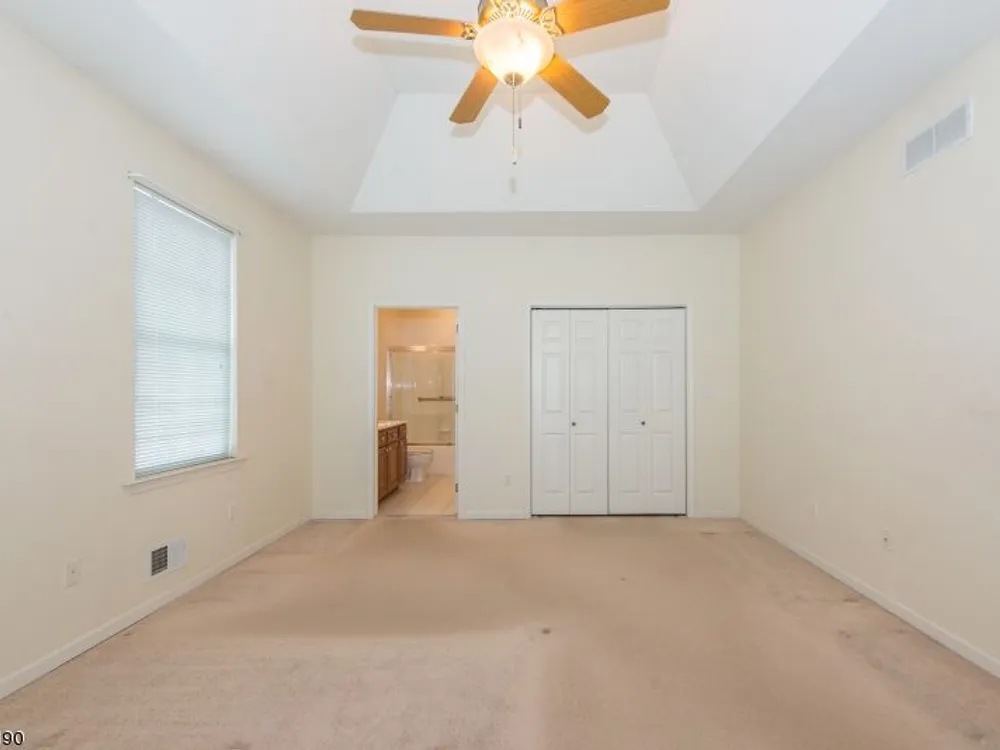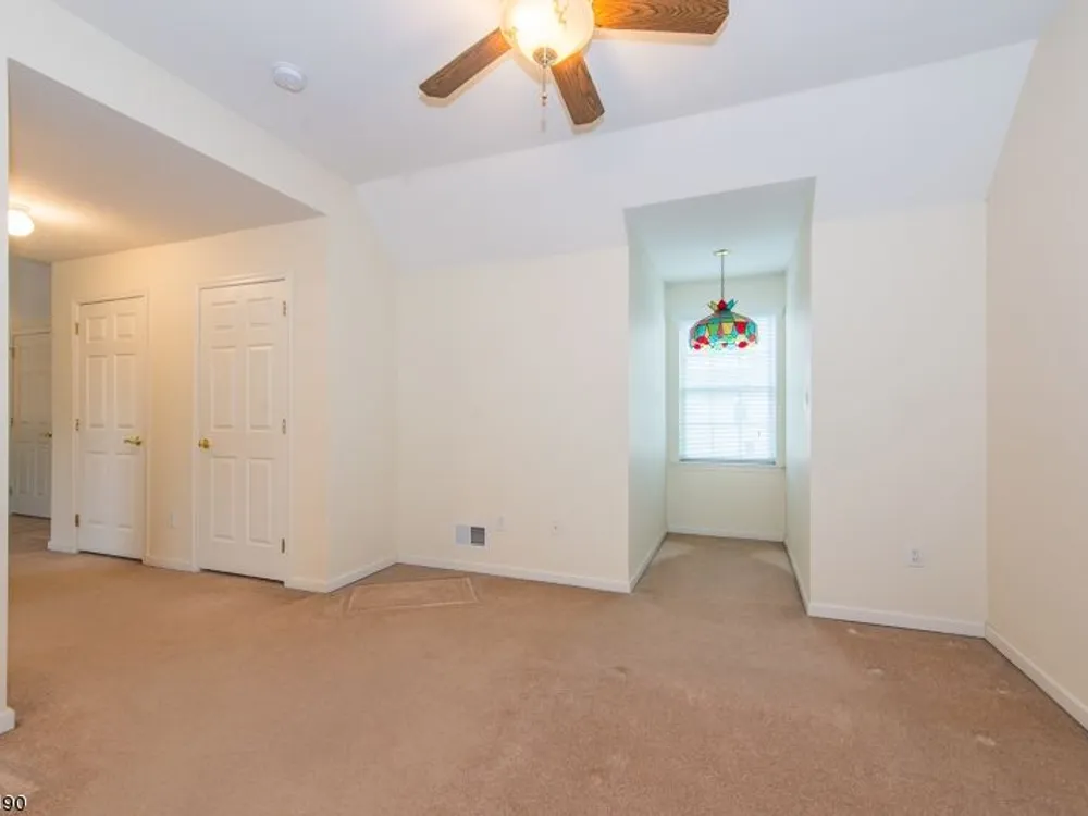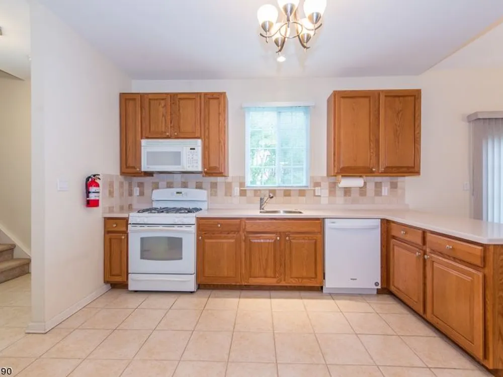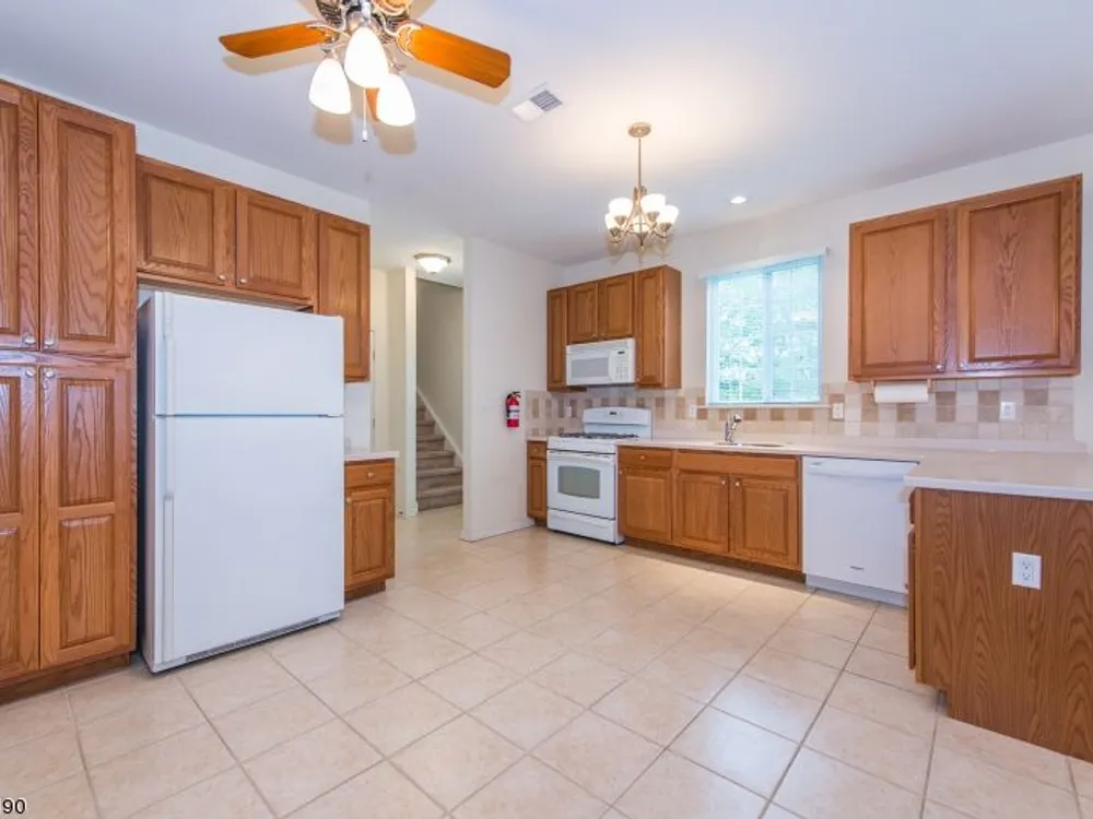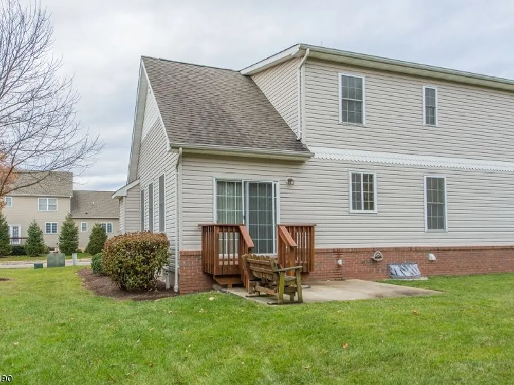 Welcome to Flemington Fields Community. Thoughtfully designed with an open-concept floor plan. The main level features a bright living room with a gas fireplace and a spacious dining area with soaring ceilings and sliders leading to a private deck and patio perfect for indoor-outdoor living and entertaining.The upgraded kitchen offers Corian countertops, premium cabinetry, and appliances less than five years old. A conveniently located laundry room sits just off the kitchen. The first-floor primary suite includes a large walk-in closet and a private bath with a linen closet for added storage. For comfort and accessibility, the home includes a stair lift chair connecting the main and upper levels. The second floor features a guest bedroom, full bath, and a generous loft overlooking the main level ideal for a home office, den, or media space. Additional highlights include a powder room on the main level, a full unfinished basement offering abundant storage and shelving or future finishing potential, There is an attached one-car garage. Conveniently located minutes from major highways, mass transit, and shopping.