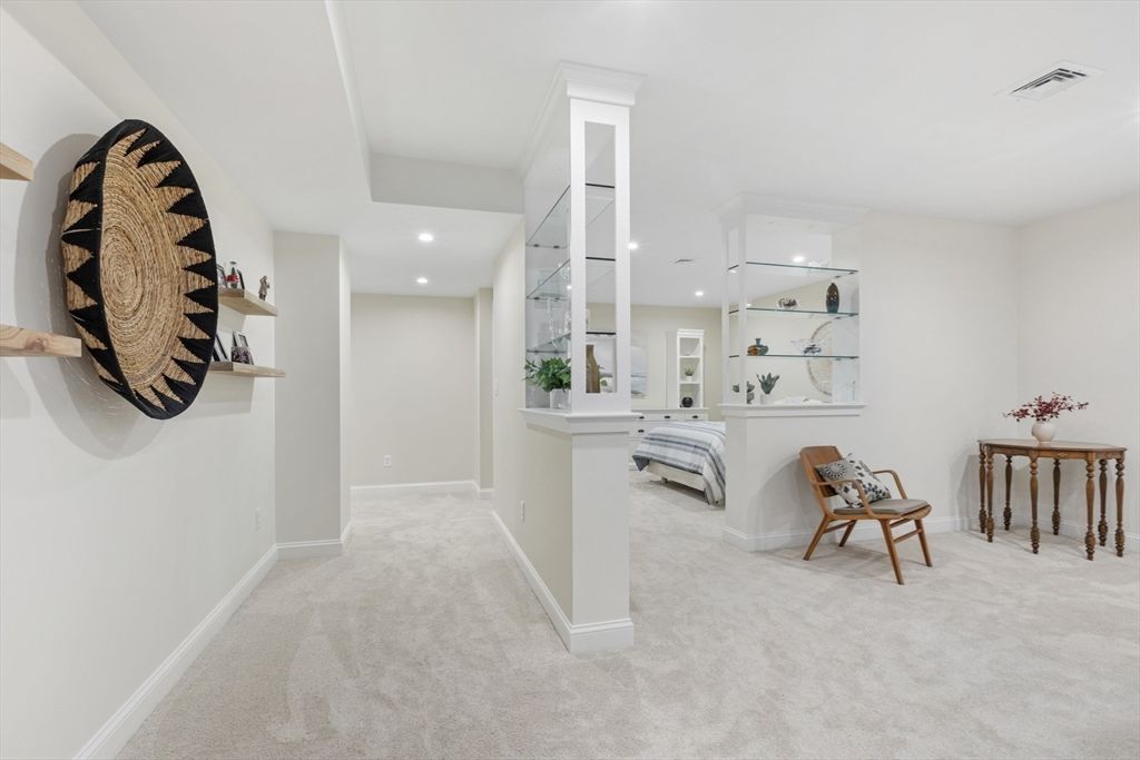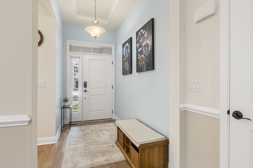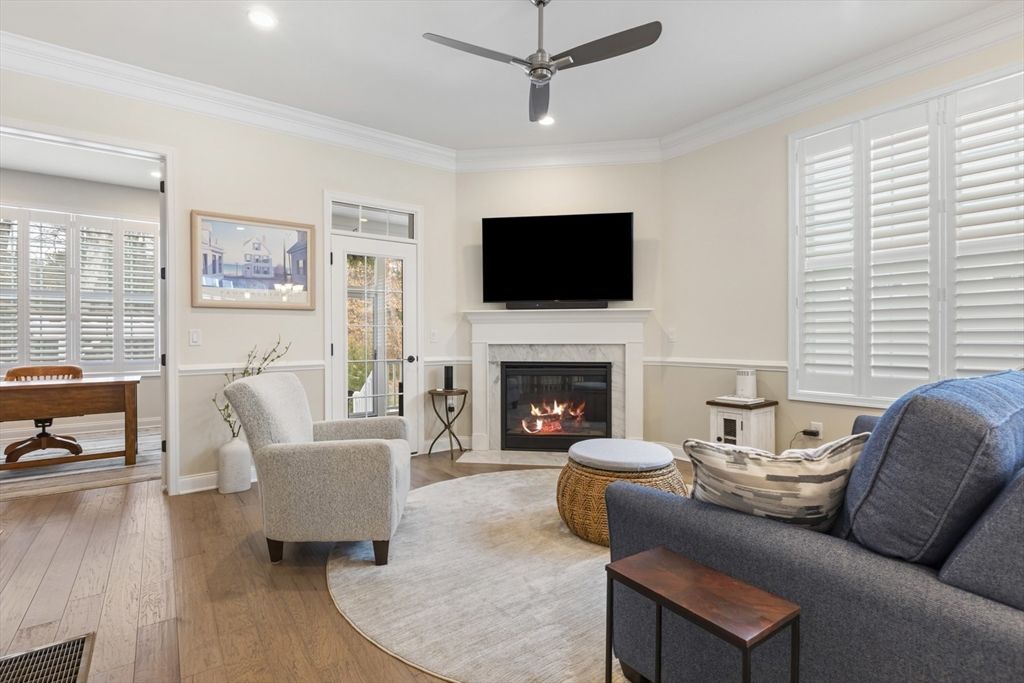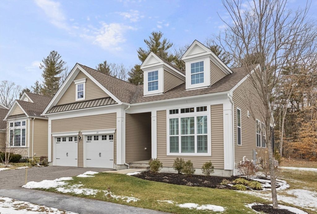 Villa-Style 'Stamford Cohasset' 1-level, custom designed home. This exceptional detached home offers a perfect blend of elegance and functionality. The lower level, beautifully finished with 1,190 sq. ft. of additional living and guest space, includes a full bath, ideal for hosting visitors and creating a private retreat. The main level boasts plantation shutters, French doors, gas fireplace, crown molding, chair rail molding, a dedicated office, an ample guest bedroom and full guest bath. The kitchen is a chef’s dream, featuring quartz countertops, a premium KitchenAid appliance package, and a sunlit, south-facing breakfast nook. The primary bedroom offers a private full bath with soaking tub, customized walk-in closet and tray ceiling. Step outside to a serene screened porch, which opens to a paved patio adorned with a stunning pergola, overlooking tranquil conservation land. This home is a harmonious blend of style, comfort, and natural beauty. 55+ Active, Adult Community.