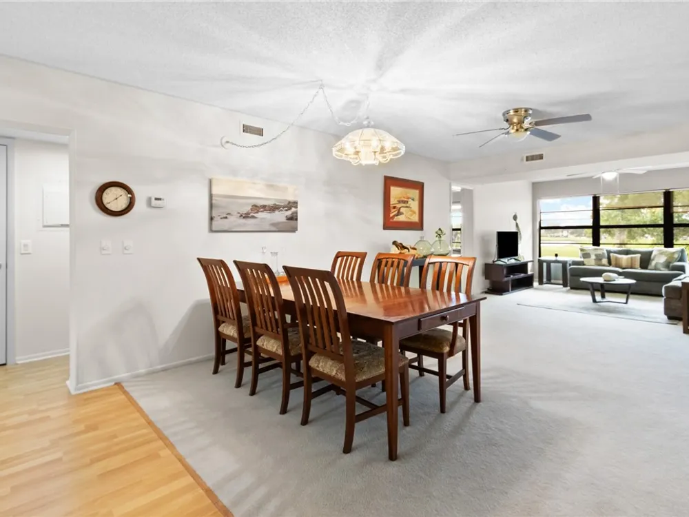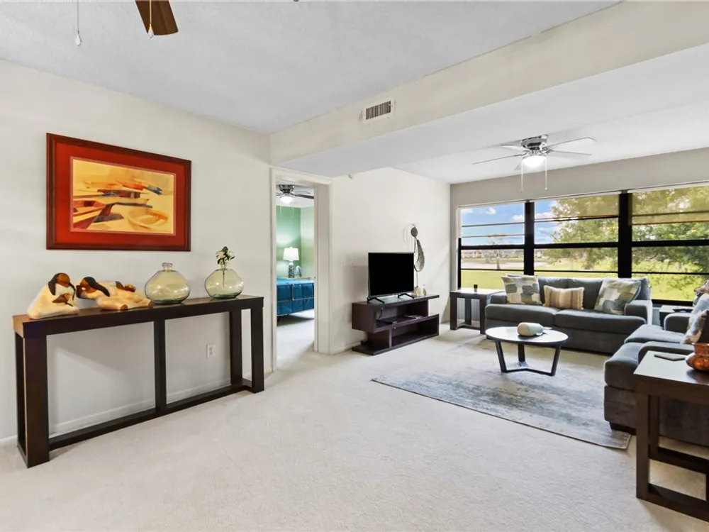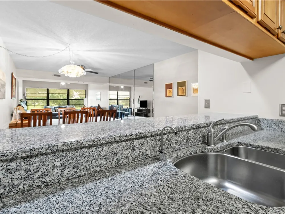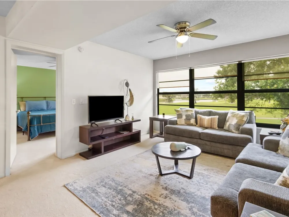 Unleash your inner golfer in this furnished-turnkey END UNIT beauty w/ jaw-dropping golf course views! Renovated kitchen w/ pantry is a showstopper! Setting the stage w/ granite counters, impact windows, concrete walls & laminate wood floors leading to plush carpets! This gem is your ticket to instant coziness or effortless rental income! Stay cool w/ 21' A/C & handle laundry like pro w/ washer/dryer in-unit! Convenience of 1 covered parking space! Dive into fun w/ 18-hole golf course-open to public, clubhouse, heated pools, pickle ball & more! Not just a home-it's a lifestyle waiting for you!