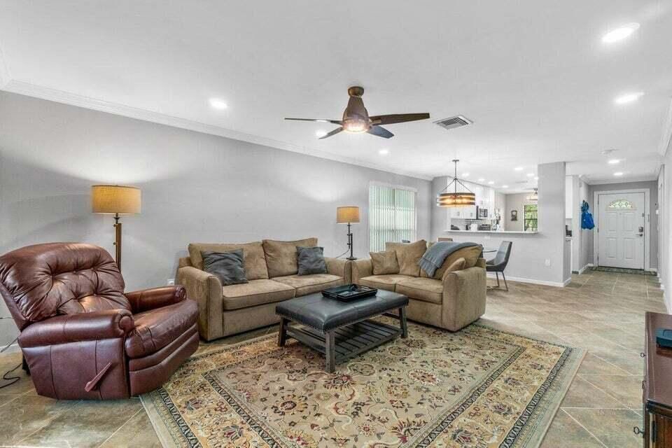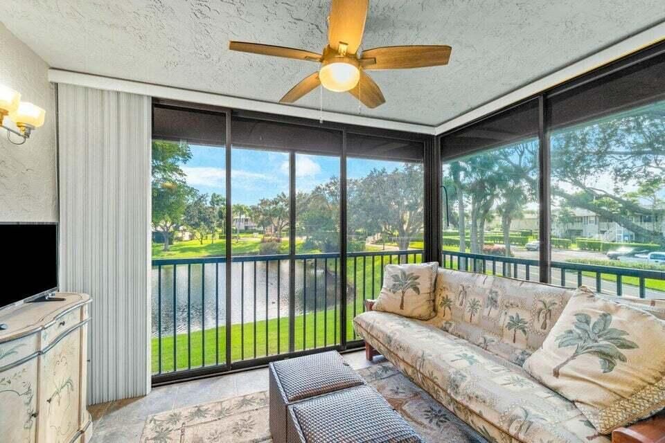 Experience the epitome of modern elegance in this fully remodeled 2nd Fl corner condo. This residence boasts contemporary finishes, and captivating lake view. The living area features sleek slate flooring, and luxurious carpet in the bedrooms. LED lighting & crown molding for a polished touch ( No POPCORN here). Open concept gourmet kitchen stainless appliances, quartz counters. Enjoy the versatile glass enclosed Florida Room ( conv. screened porch), perfect for relaxing /entertaining. This Fabulous condo combines sophistication, comfort, & vibrant lifestyle the Hunters Run Country Club offers.