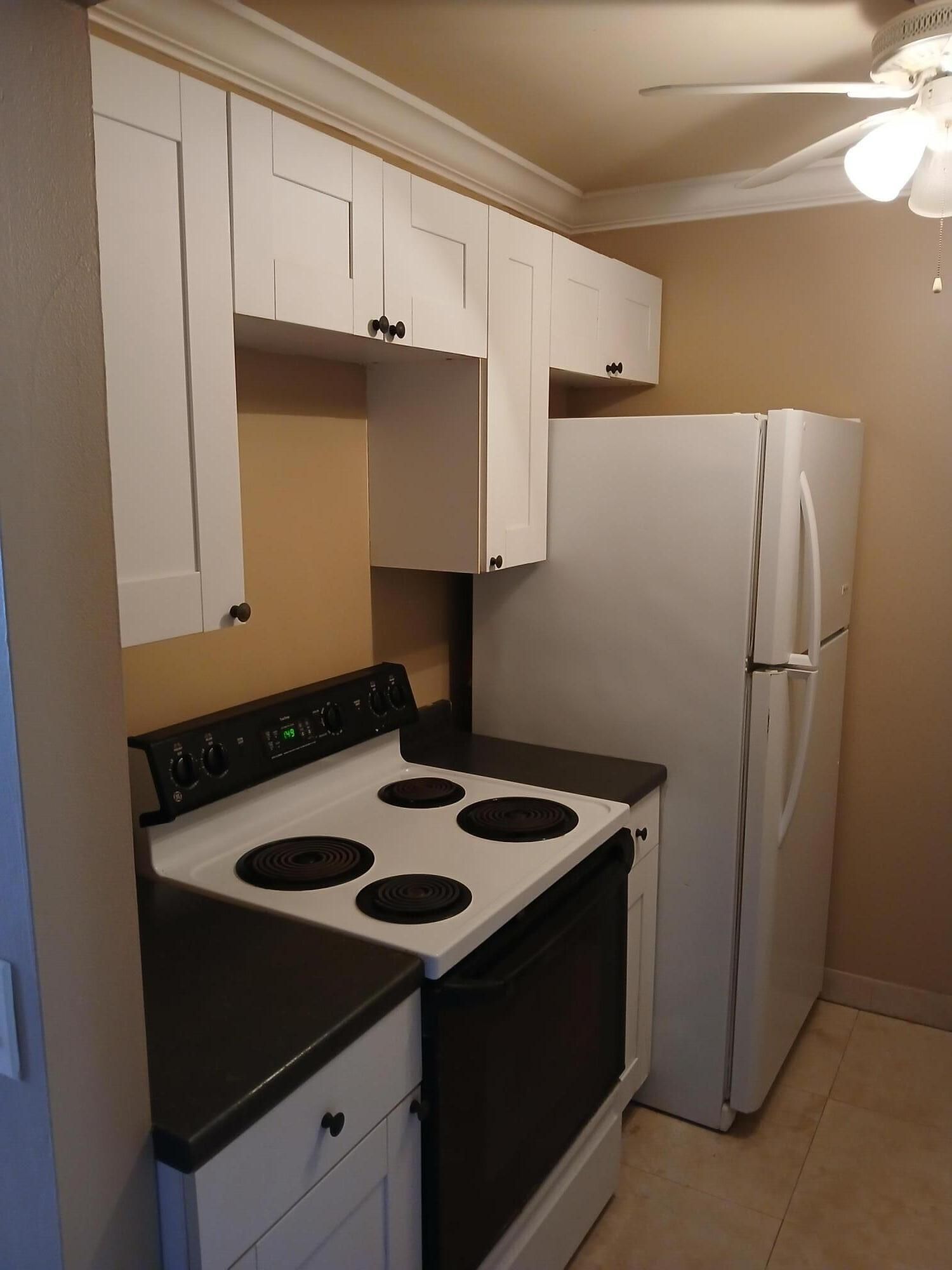 Great location, very quiet. This unit has updated bath, kitchen with plenty of storage cabinets, electric stove, refrigerator, and a tankless water Vinyl flooring and large utility closet