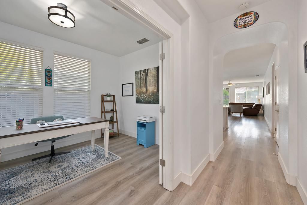 Heritage Park is an elevated lifestyle community for 55+. This beautifully upgraded two-bedroom, two-bath, with a possible third bedroom, is immaculate, featuring marble-look quartz countertops, white-glazed subway tile backsplash, soft-close veneer drawers, luxury waterproof kitchen surfaces, and scratch-resistant laminate throughout. Enjoy a separate laundry room, a closet-pantry, a family room, a great room with a dining area combo, a primary bedroom with an ensuite full bath, and a walk-in closet with a built-in humidifier fan unit. Both full baths have large closets, and the primary has an easy, low-step-in shower. Stay comfortable year-round with a new air conditioning and heating unit. This private community offers maintenance for your front yard, tennis/pickleball courts, clubhouse, pool, recreation, exercise room, offers a prepared dinner, and more, all provided within this impressive gated neighborhood that's close to serene parks and dining.