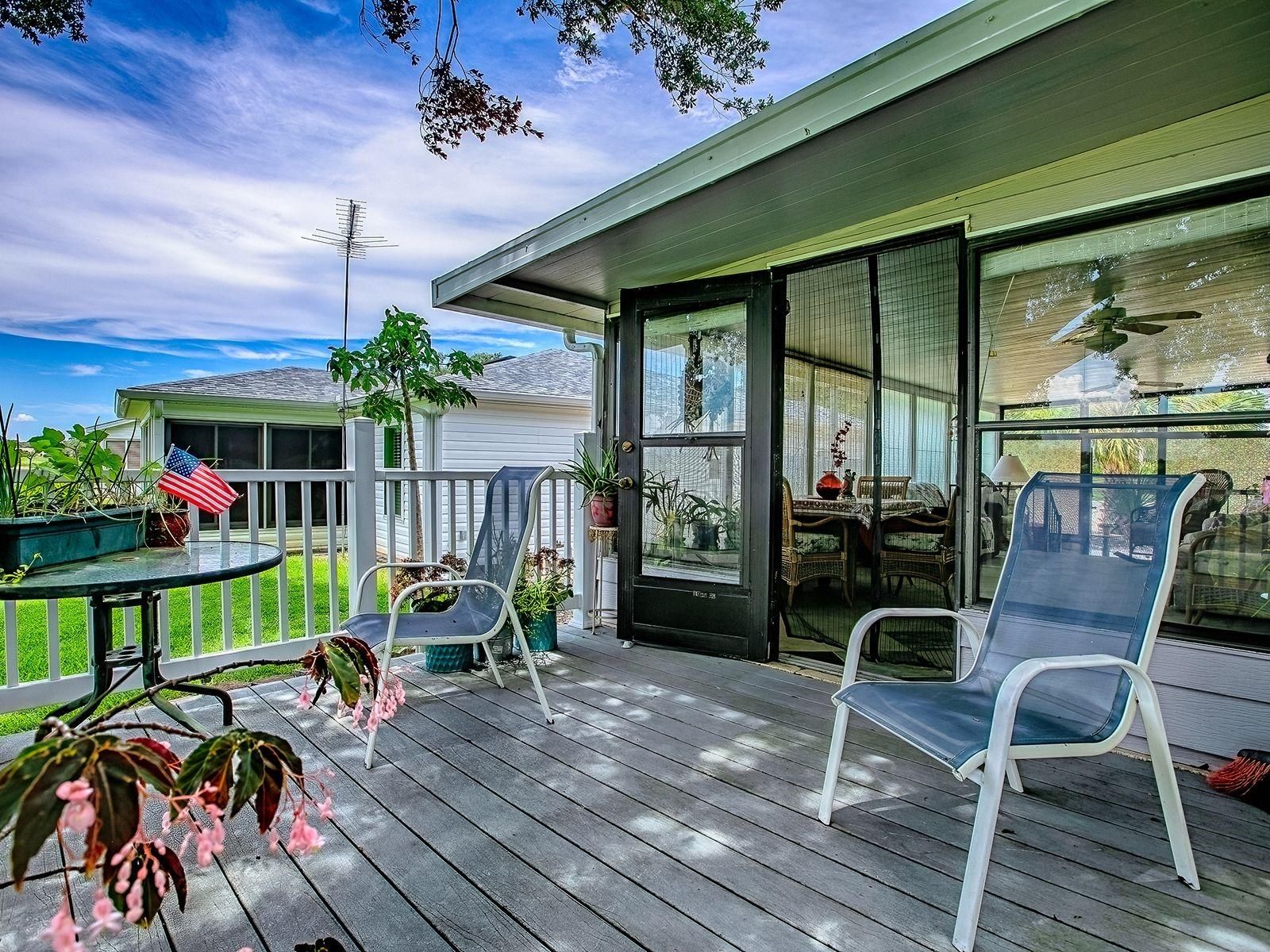 The perfect home for peace and tranquility! Enjoy beautiful views of Planters Pond from your back deck or tree swing. This home offers two spacious bedrooms, two upgraded bathrooms with new vanities and flooring and a spacious garage with extra storage. The lanai is extra large and made for comfort. The roof and windows were replaced in 2014, a/c replaced in 2007. The water heater and stove were converted to propane in 2014. Laminate flooring in the living room with a wood burning fireplace for those chilly winter nights and romantic evenings. This home is a nature lovers dream!! The Plantation at Leesburg is a desirable 55+ community with two 18 hole championship golf courts, along with a driving range and putting green. There are 3 heated pools, each with a jacuzzi, two fitness centers (one with a steam and sauna room), billiards room, tennis and pickleball courts, an on-site restaurant with pub area and full liquor bar, and over 100 activities scheduled every week. The Plantation is located in Central Florida, about 40 minutes from Orlando and 90 minutes from the beaches.