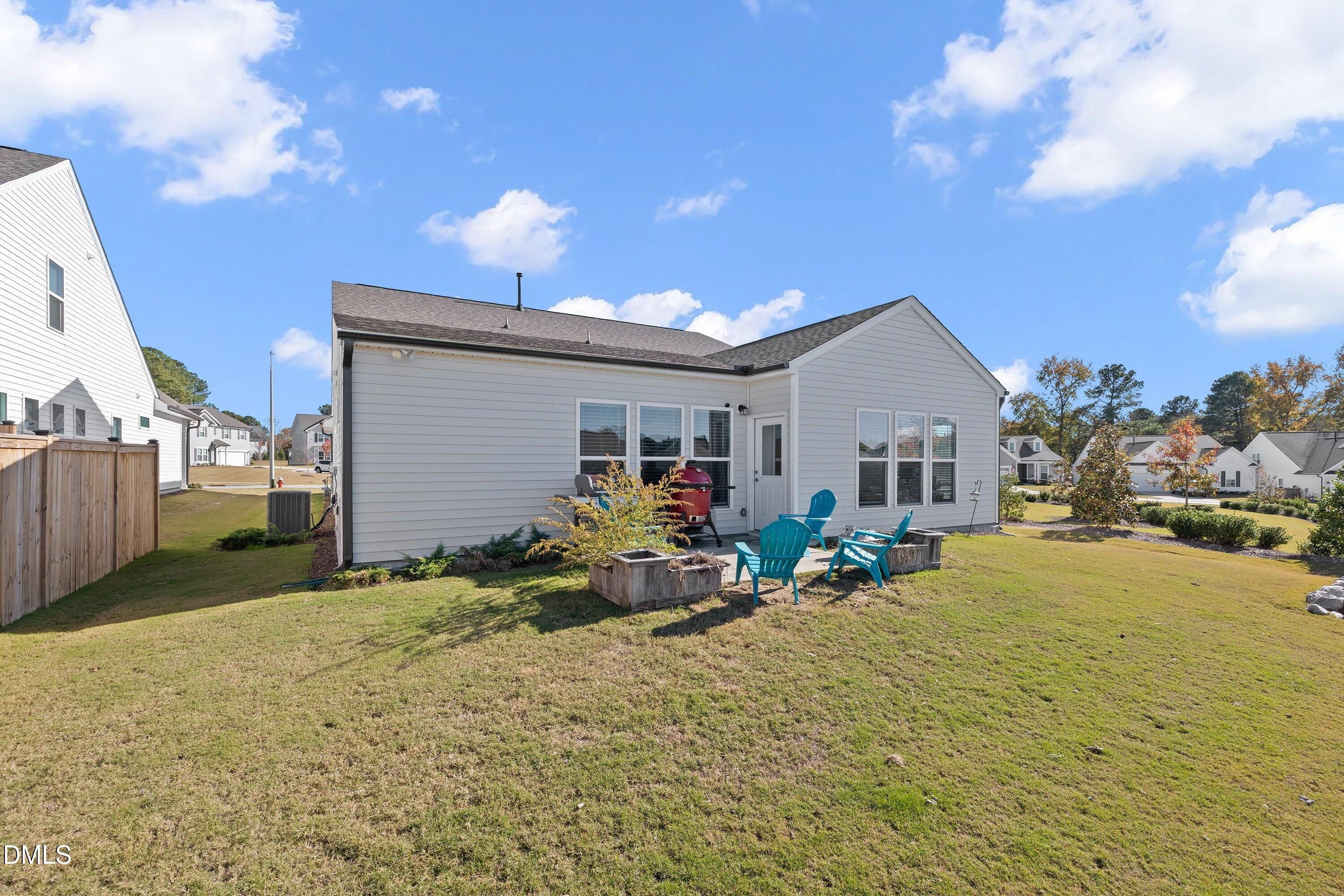 BETTER THAN NEW CONSTRUCTION! Built in 2023, this magnificent ranch home in the Hidden Valley neighborhood offers upgraded selections and thoughtful customization that ranks it above its cookie-cutter competition. Look at the forest green accent wall in the living room with its built-in electric fireplace that creates cozy ambience and heat as the outdoor temperatures drop. Note the color-changing flames to fit your aesthetic and the barnwood backdrop, ready to display your holiday stockings. Admire the oversized kitchen island that offers abundant food prep, entertaining and storage space that is visually more appealing than a standard rectangle. Appreciate the clean white cabinets, the oversized pantry and the butlers pantry where the ingredients for a New Years Eve cocktail await. Through the kitchen window, you'll see another stand-apart feature of this home: a fabulous pocket park with a picnic table and bocce ball court next door. The sellers say this greenspace is seldom used by the neighbors so this idyllic land becomes a visual extension of this property and offers extra play space. In addition to 3 bedrooms and 2 full bathrooms, this home expands your living space with an office with French doors, a light-filled sunroom and a grilling patio. Garage offers built-in shelving and more storage space is available in the attic. Neighborhood delivers highly coveted sidewalks, multiple pocket parks, swimming pool and clubhouse.