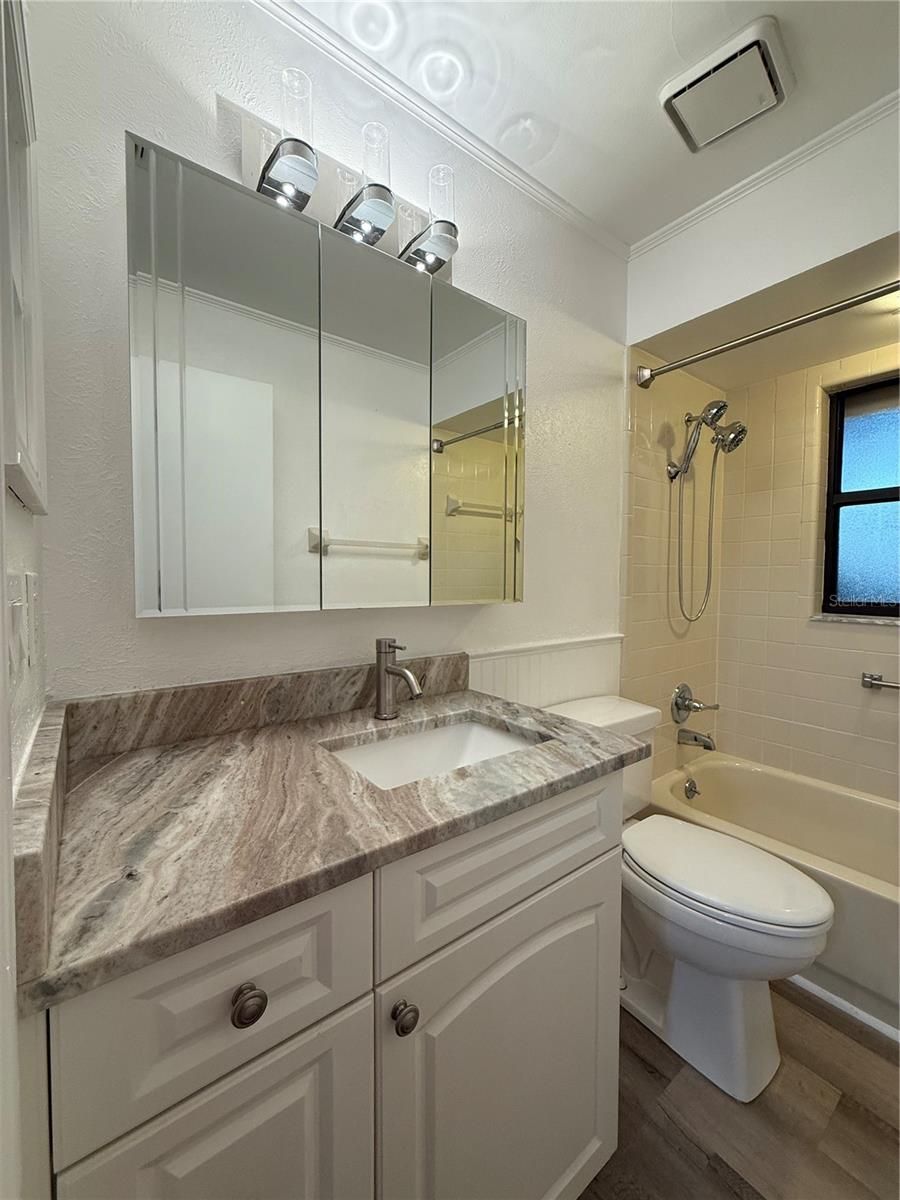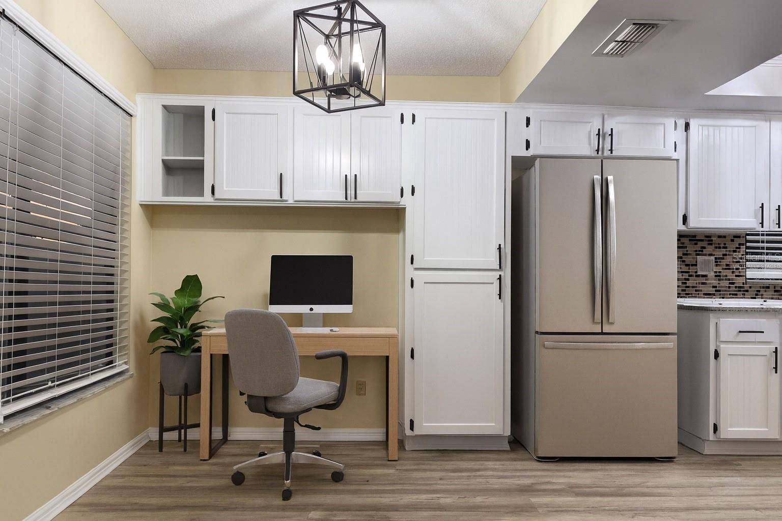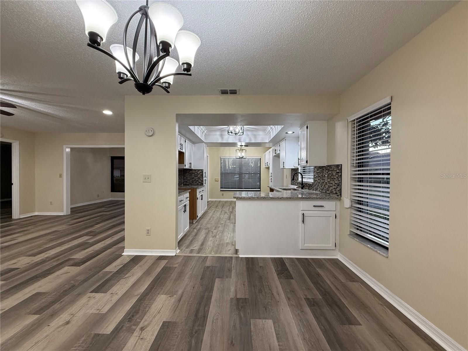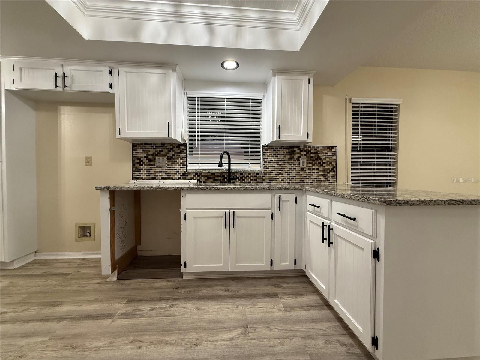 - Crown Molding, Eat-in Kitchen, Open Floorplan, Main Level Primary, Solid Surface Counters, Split Bedrooms, Thermostat, Window Treatments