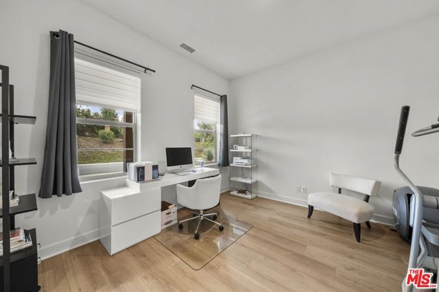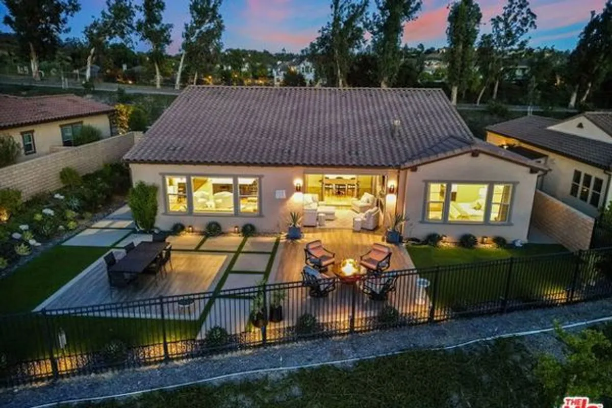 FIRST AVAILABLE SHOWINGS MONDAY APRIL 13, 2026. Welcome home to The Grove, a stunning 55+ resort inspired community quietly nestled between the Pacific Ocean and the Santa Susana Mountains. Enjoy convenient access to shopping, dining, harbors, beaches, and everyday essentials, all while being surrounded by scenic trails that wind through this elegant neighborhood and offer breathtaking panoramic views. With its welcoming atmosphere and exceptional setting, The Grove truly delivers a sense of community paired with effortless Southern California living.Residents enjoy an impressive collection of resort style amenities, including a spectacular outdoor pool and spa, cabanas, an outdoor kitchen with fireplace, and a luxurious clubhouse. The clubhouse features a full fitness center, gathering room, library, lounge area, and an array of outdoor leisure options such as a putting green, pickleball courts, bocce ball, and a dog park.This home is one of the desirable Flora single family residences, offering a private yard and no common walls. Purchased early to secure this premier lot, the home features a spacious, low maintenance west facing backyard with unobstructed views and spectacular sunset vistas.The thoughtfully designed open floor plan includes two bedroom suites, an office/den, powder room, and a generous great room that flows seamlessly into the kitchen and dining area. Indoor outdoor living is highlighted by a covered outdoor living space complete with a built in fireplace, creating an ideal setting for relaxation and entertaining.Owner upgrades include custom cabinetry, Vadara quartz countertops in the kitchen, a large soaking tub, tongue and groove wood ceiling in the outdoor living space, matching ceramic outdoor flooring, and more.This residence presents a rare opportunity to own a beautifully upgraded home in one of the area's most sought after 55+ communities.
