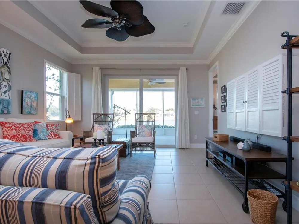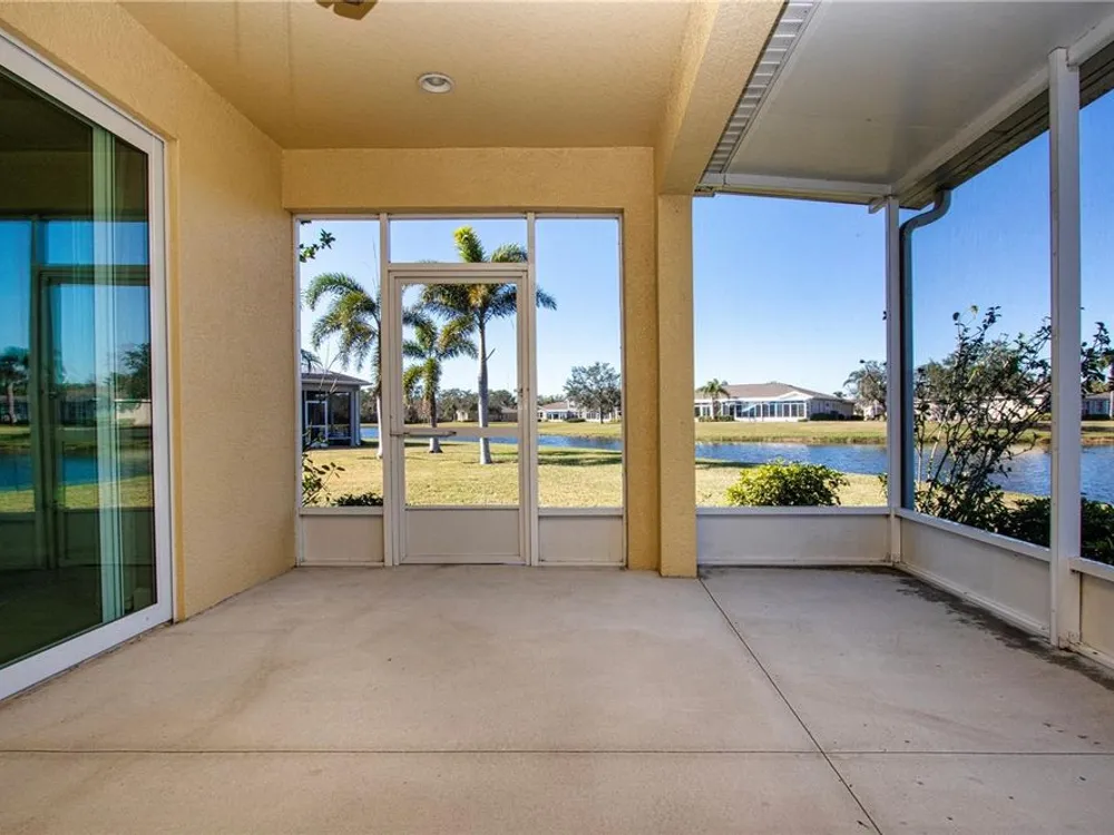 Pond & Golf Views! Pet Friendly! Welcome to this Beautiful Villa in The Guarded Section of Sun City Center known as Kings Point. HOA REDUCTION FOR ONE YEAR, 4/1/2025 - 4/1/2026 DOWN TO $83 A MONTH! The Palm Floor Plan features 2 bedrooms, 2 Bathrooms, an Open Concept Den, and 2 Car Garage all Situated at the End of the Cul-De-Sac. This Home has Barely Been Lived In and It Shows. The Kitchen is a Cooks Dream with 42" Custom Painted Cabinets, Under Cabinet Lighting, Slide Out Shelves in the Bottom Cabinets, Drawers, Granite Counters, Pendant Lights at the Breakfast Bar, and Stainless Steel Appliances. You Will Appreciate the Water Views in the Open Living and Dining Room with Tray Ceiling, Crown Molding, Designer Fan, and Tile Floors. The Primary Bedroom Overlooks the Pond and has Tray Ceilings, Crown Molding, En-Suite Bathroom and 13' x 5' Walk-In Closet. The Primary Bathroom has a Walk-In Shower with Bench, Dual Sinks with Granite Top and Grab Bars for your Safety. Your Guests Have Their Own Spacious Bedroom with Premium Carpet and Designer Ceiling Fan. Just Down the Hall Sits The Guest Bathroom with Granite Vanity and Tub with Shower. The Laundry Closet in the Hall has Extra Cabinets for Storage Over the Washer and Dryer. The Den Features a Unique Side Fold Murphy Bed with Enough Room Left for a Desk and Shelves. The 15' x 14' Extended Lanai with Expansive Water and Golf View is Covered and Screened to Enjoy the Sunsets, Wildlife, and Beautiful Florida Weather. With Features Like Impact Windows, Crown Molding, Tray Ceilings, Tile Floors, Premium Carpet in the Bedrooms, Plantation Shutters, Central Vacuum, and Recessed Lighting. New Garage Door Opener with 2 New Remotes and Garage Button. NEW ROOF IN DECEMBER 2024. Screens for the Garage Doors and Newly Painted. Kings Point boasts 2 clubhouses in this fabulous 55 and older community, each with an outdoor heated pool, indoor pool, exercise room, craft rooms, large screen TV, bar, food service, and planned social activities. Maintenance Includes building exterior, premium cable, internet, escrow reserves fund, pest control, grounds maintenance, private road, recreational facilities, 24/7 guarded entrances, water and sewer. Centrally Located to Busch Gardens, Tampa and Sarasota's cultural and sporting amenities, and the Bay and Gulf Beaches. Call for details!