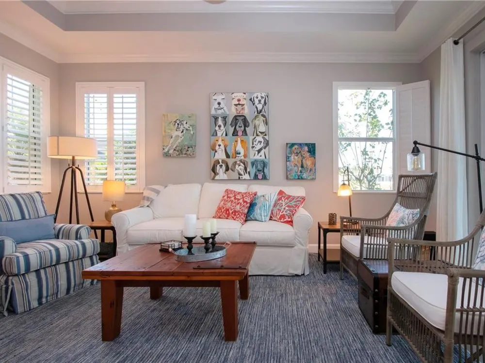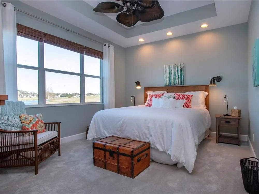 - Ceiling Fan(s), Central Vacuum, Crown Molding, High Ceilings, Living/Dining Room, Open Floorplan, Split Bedrooms, Stone Counters, Tray Ceiling(s), Walk-In Closet(s), Window Treatments