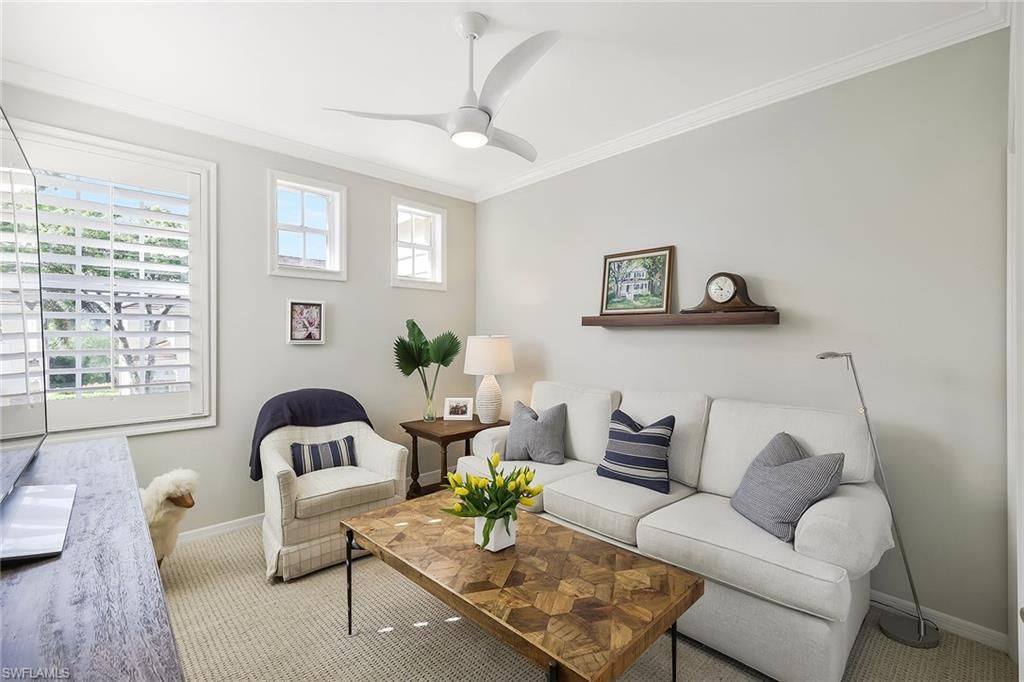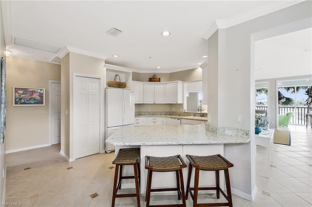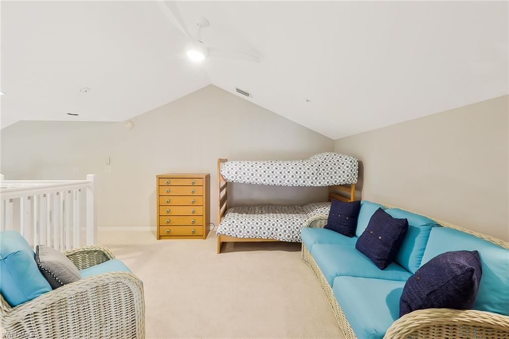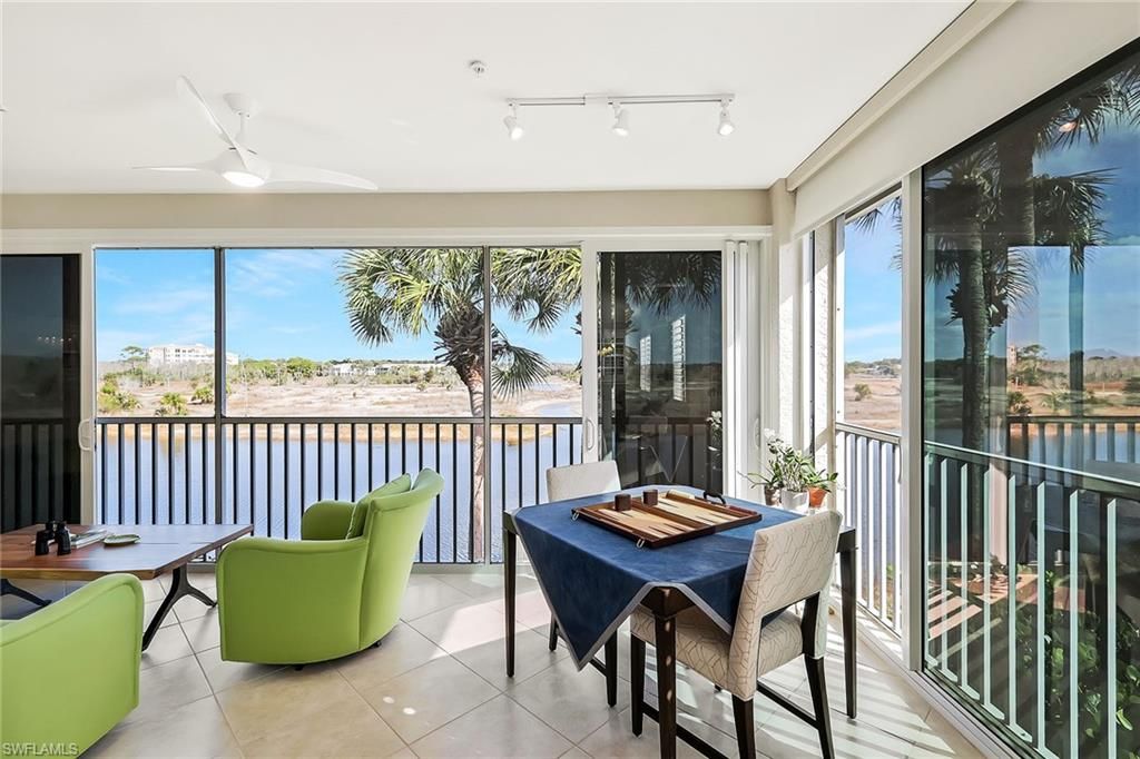 Wide preserve vistas unfold at the intersection of two waterways, creating a layered natural panorama rarely available within Pelican Landing. The meeting of these water corridors draws a variety of birdlife and native wildlife, offering an ever-changing backdrop for those who appreciate nature and quiet surroundings. From the enclosed extended lanai, the view stretches across protected preserve land, providing depth, privacy and a sense of retreat that is increasingly difficult to find. In the Cypress Island enclave and near the center of the community, the residence benefits from minimal road noise and a peaceful setting. The extended lanai, enclosed with impact-rated sliding glass doors, serves as a year-round living space and viewing point, allowing owners to enjoy the preserve and waterways in comfort. Offering 2,044 square feet, the condominium includes three bedrooms plus a spacious loft and two baths. The primary suite overlooks the preserve and features an updated primary bath. A den has been converted into a third bedroom, providing comfortable accommodations for guests or family. The bright kitchen is appointed with newer countertops, a dedicated workstation and built-in cabinetry, offering functionality and additional storage. The expansive loft adds flexible living space ideal for entertaining, a media area or home office. Residents of Pelican Landing enjoy a comprehensive amenity package, including a private island beach park accessible by water taxi, a community center, fitness center, tennis and pickleball courts, bocce, kayaking, sailing, miles of recreational and biking paths, and optional golf opportunities at The Nest Golf Club.