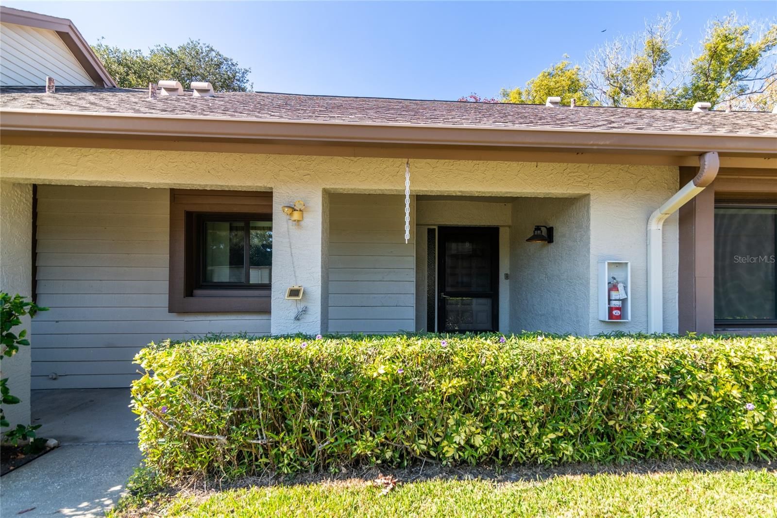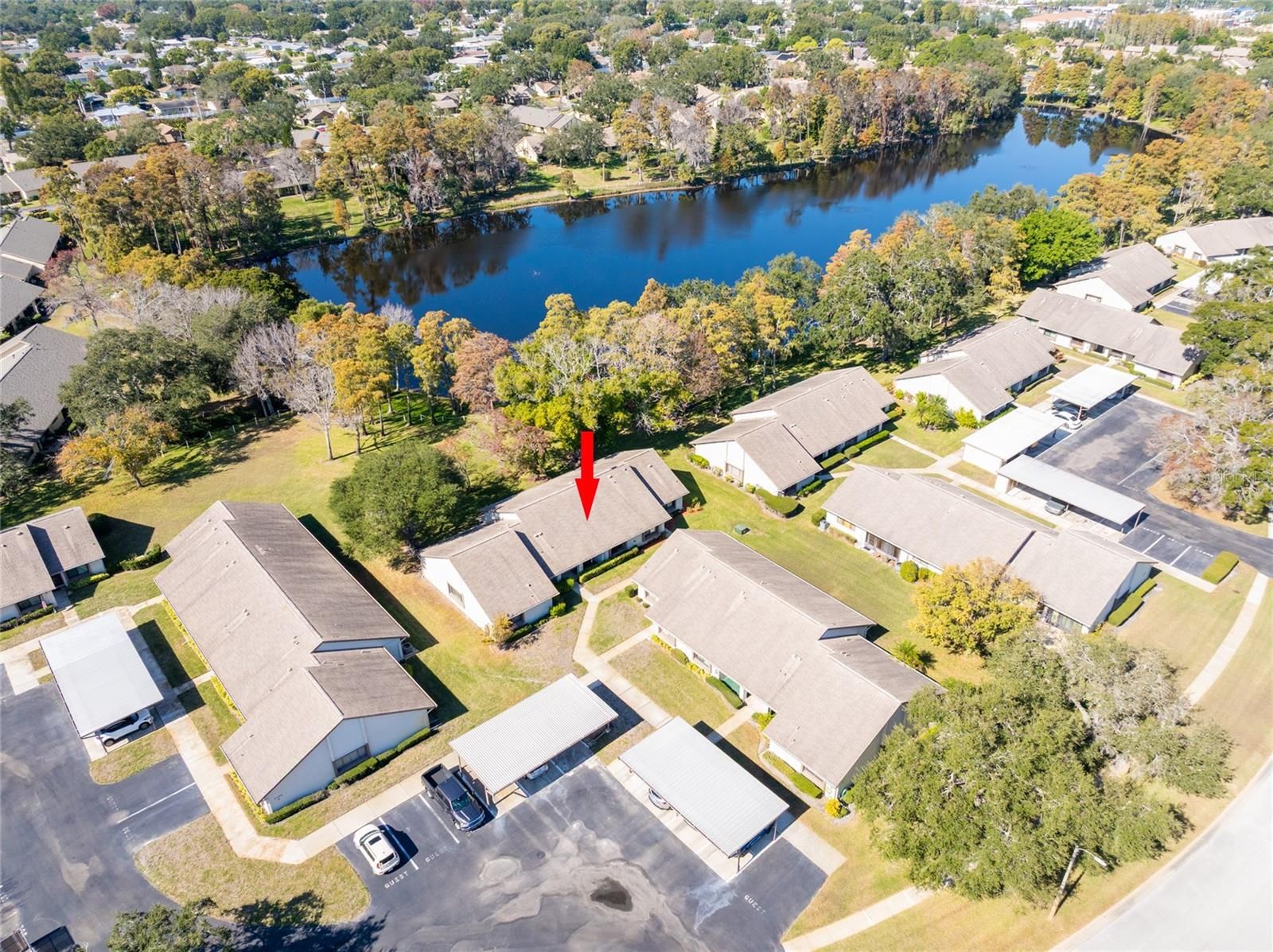 A great opportunity to get into the beautiful, 55+ community, Village On The Green, nestled on the far west side of Clearwater, just on the cusp of Dunedin's city limits. Out back you will enjoy leisurly evenings on the pavered patio, looking out through beautiful live oaks onto the large, serene pond. We've priced this lovely Villa, so that there is room to come in and make it exactly how you want it! Brand new TRANE A/C, and new IMPACT WINDOWS will give you peace of mind at the closing table! The floorplan is perfect with a split bedroom plan, a large family room, 2 bathrooms, roomy kitchen, and INSIDE LAUNDRY. The bones are fantastic! This HOA has so much to offer... All exterior is maintained, Cable TV and Internet, Community Pool, A healthy reserve fund, recreational facilities and clubhouse, sewer, trash, and water. Your unit will come with a storage room, assigned carport parking and guest parking. Minutes to great grocery options, Countryside Mall, Honeymoon Island, and downtown DUNEDIN. Come make this your home today!