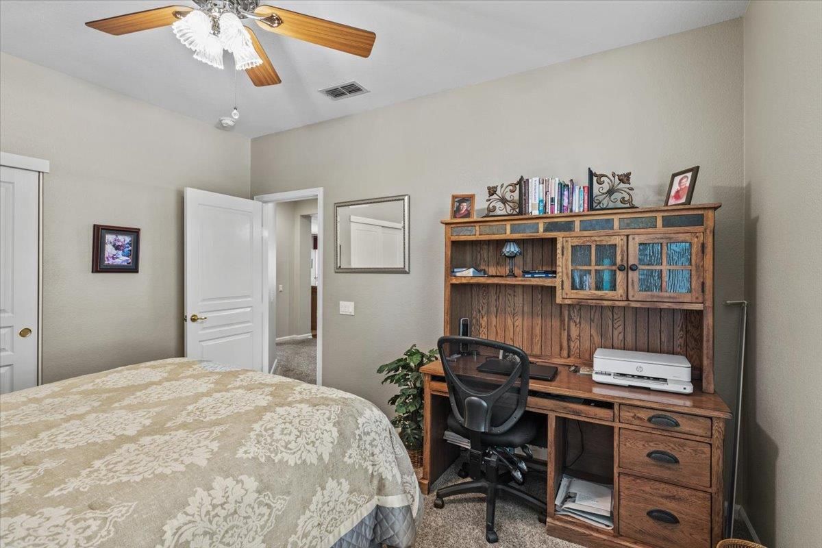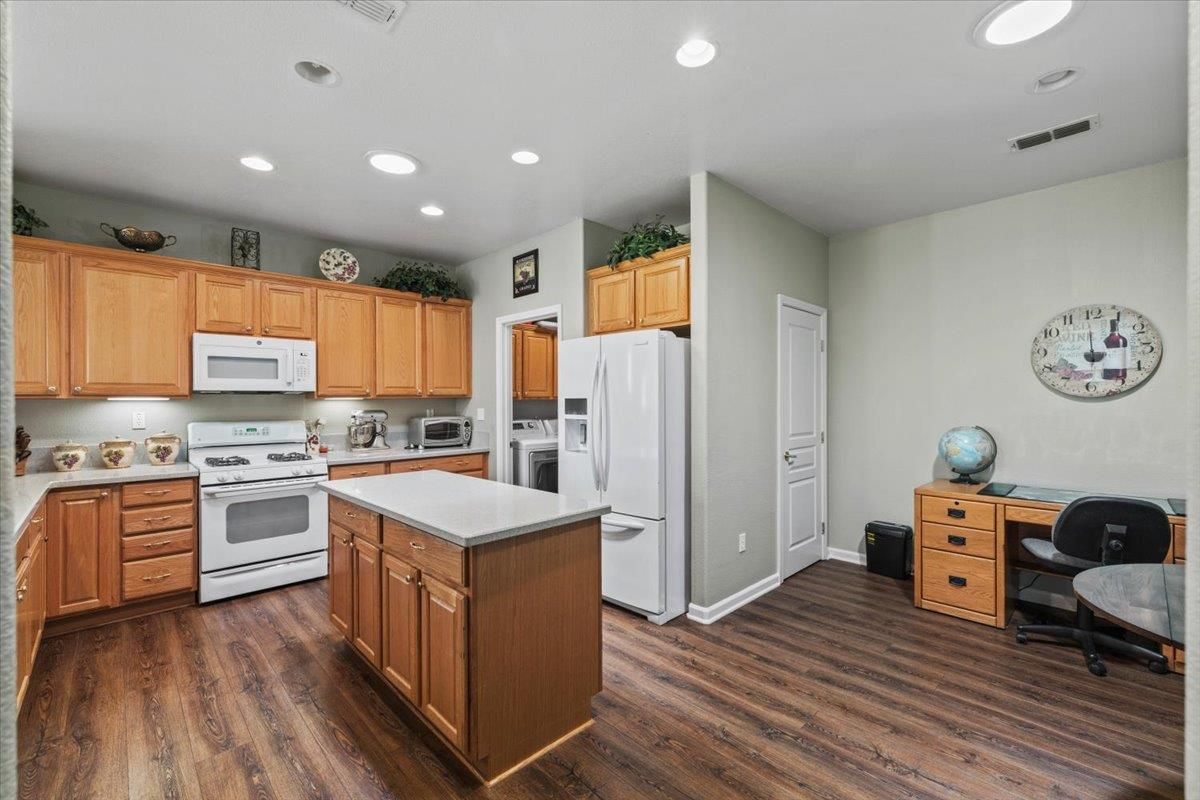 This Beautifully Maintained 1854 square foot Plumas Model. The Seller is the original owner It features 2 bedrooms, 2 full bathrooms with a closed in Den/Hobby/That could be a possible 3rd Bedroom. The Master Bathroom shares a Huge walk-in customized closet. The kitchen is well-equipped with a pantry, Golden Oak cabinets with lazy Susan and pull-out shelving. Solid surface counters and island for additional work space. This lovely home has a 2.5-wide extended garage with nice cabinets and built in work bench, new water heater & clear termite report in 2025. Their is a convenient indoor laundry room with cabinets and sink. Nestled in the hills of Sun City against a backdrop of open space which is maintained by the Community Association. The yard is professionally landscaped & drought-tolerant Don't miss the video tour of this amazing home. This property has no Kitec. Come take a look!