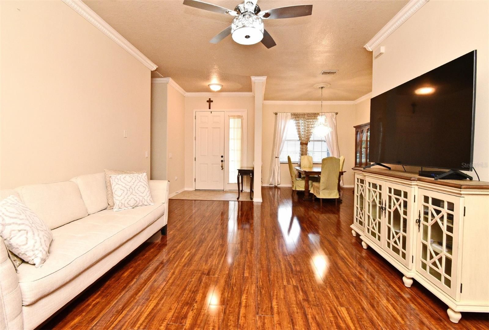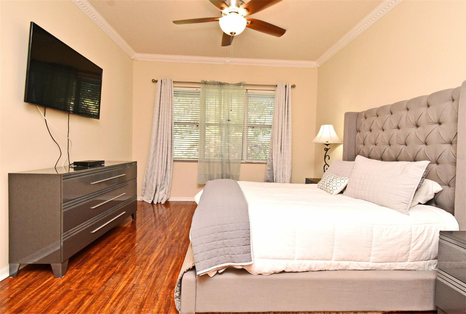 - Ceiling Fan(s), Crown Molding, Eat-in Kitchen, Split Bedrooms, Walk-In Closet(s)