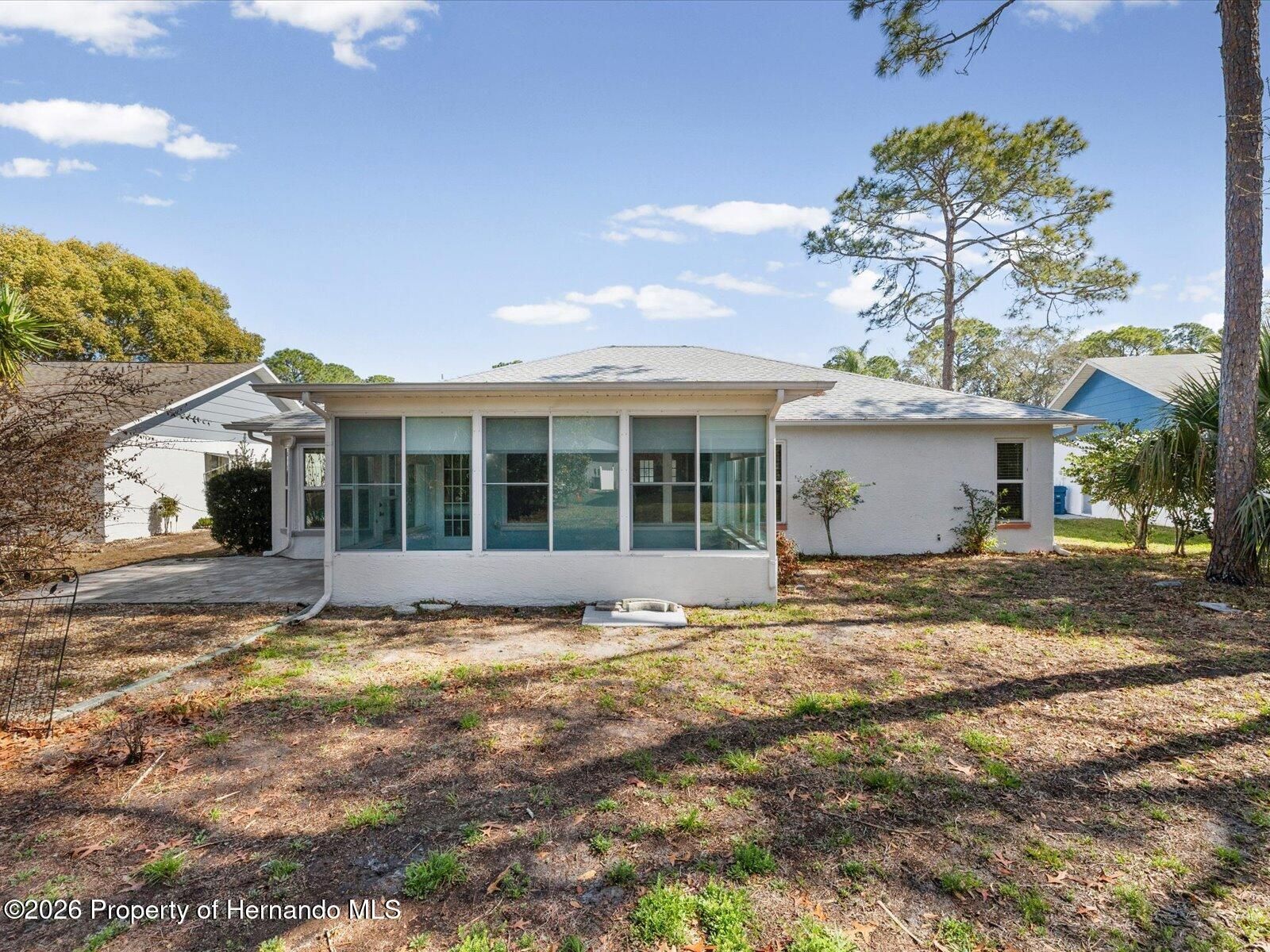 Move-In Ready Home in the Premier Golf Community of Timber Pines! This beautifully updated 2 Bedroom, 2 Bathroom, 2 Car Garage single-family home has been meticulously maintained and recently painted, making it truly move-in ready, and partiality furnished. Major updates provide peace of mind, including a 2022 roof, 2017 HVAC system, and newer windows installed in 2021. A spacious front porch welcomes you through elegant double doors into a bright open-concept living area filled with natural light. The updated kitchen features modern finishes, ample cabinetry, an oversized pantry for exceptional storage, and a comfortable eat-in dining area. The primary suite offers a large walk-in closet plus an additional closet for extra storage, while the tastefully renovated bathrooms add style and comfort. The second bedroom is generously sized and also features its own walk-in closet. Newer ceiling fans are installed throughout the home. The flexible floor plan includes a living and dining room combination along with an additional family room, providing multiple spaces for relaxing and entertaining. Step into the enclosed lanai, perfect for enjoying the Florida lifestyle year-round and equipped with its own dedicated AC unit. Just outside, a spacious paver patio offers a wonderful setting for grilling, outdoor dining, and entertaining. This home is conveniently located near the community's stunning new multi-million-dollar fitness center, pickleball facility, and dog park, allowing you to fully embrace the exceptional lifestyle that Timber Pines offers: • 3 Championship Golf Courses • 2 Pro Shops • 2 Community Pools with Hot Tubs • Resort-Style Country Club Pool with Food & Beverage Service • Pickleball & Tennis Courts • Driving Range & Two Putting Greens • Full-Service Restaurant • Performing Arts Center • 120+ Clubs and Activities The low HOA of just 332 per month includes high-speed internet and cable, making this an outstanding value for resort-style living. Come see the recent improvements the owner has made and experience the incredible Timber Pines lifestyle for yourself!