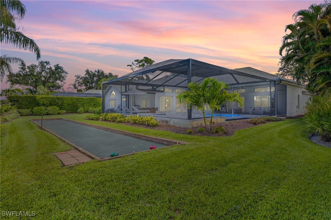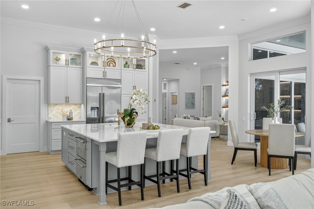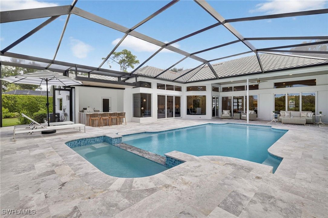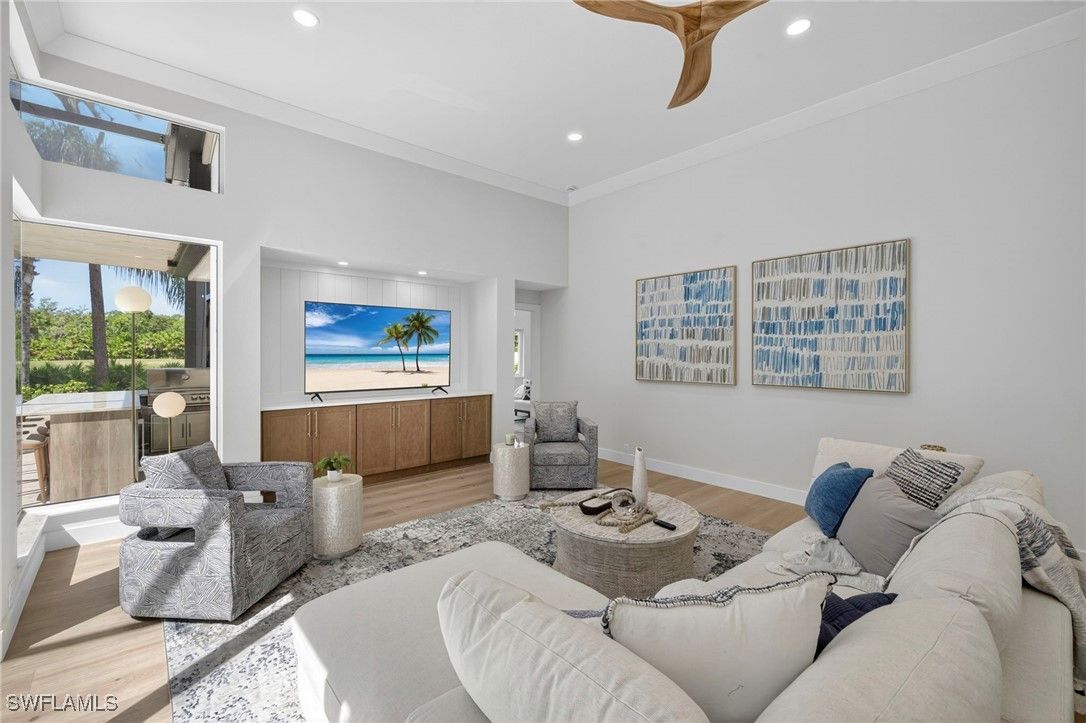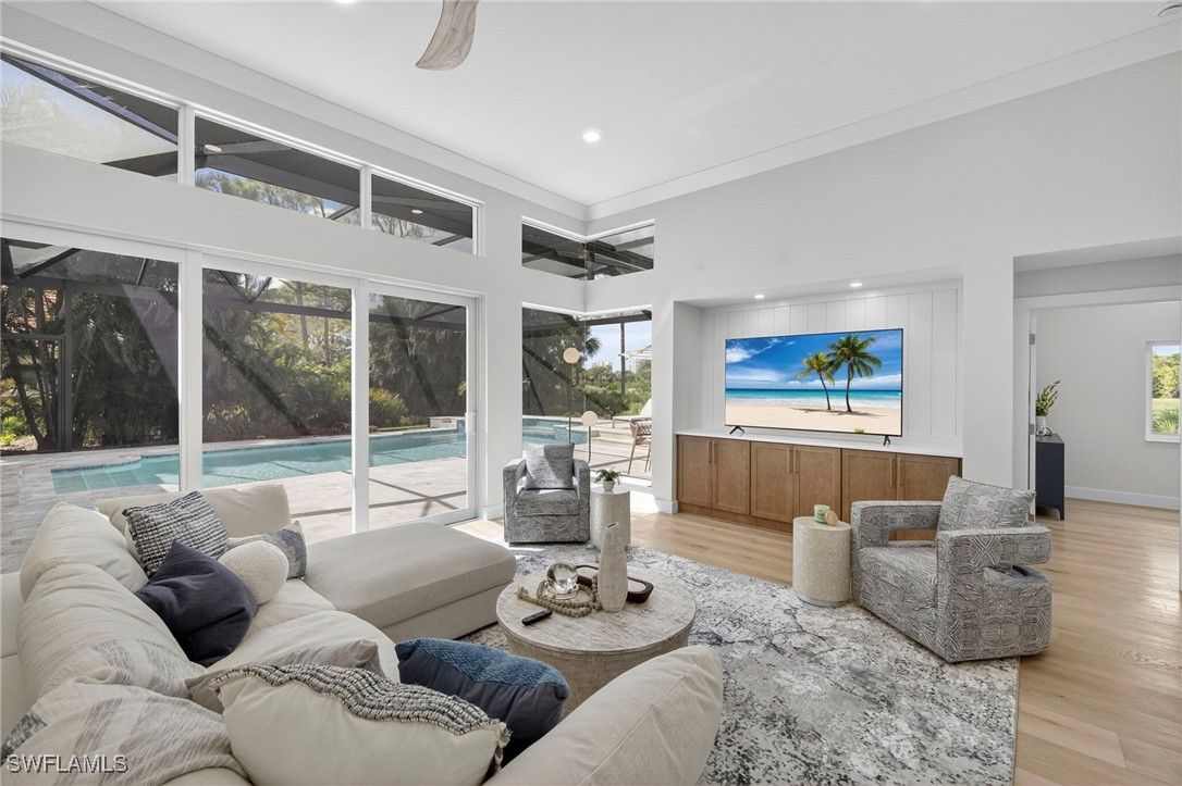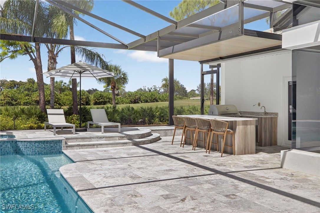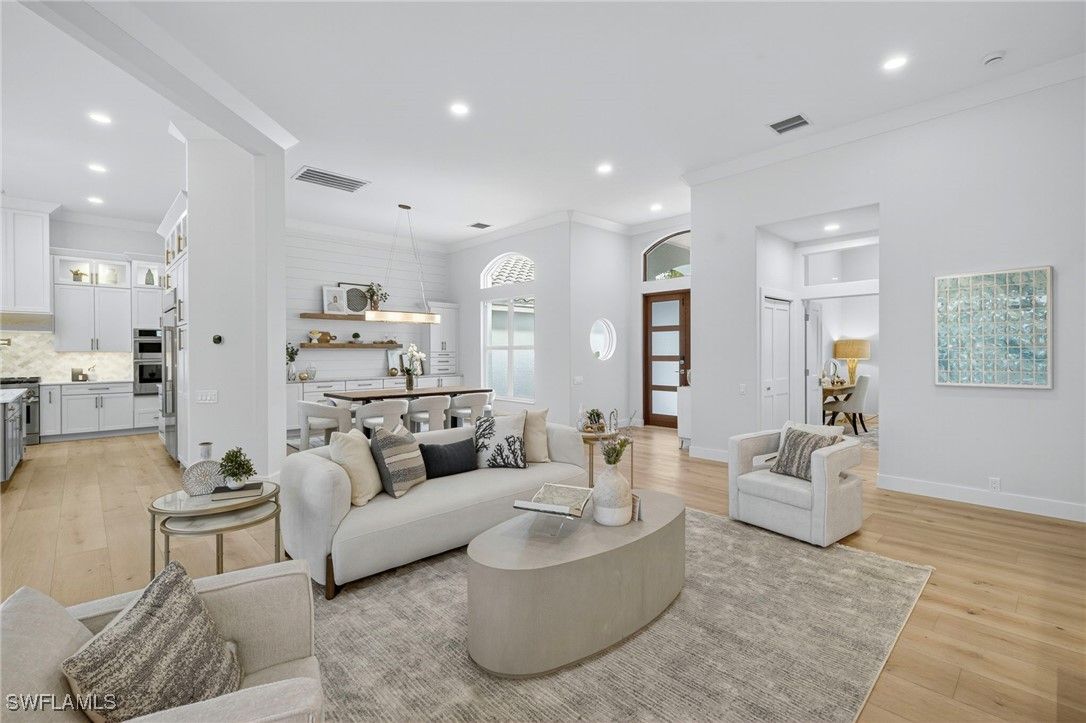 Welcome Home! This breathtaking full house remodel by Tortuga Homes, Inc. redefines luxury living with timeless coastal elegance. Perfectly situated along the scenic 8th fairway of the Hurricane Golf Course in Pelican Landing, this fully reimagined 4-bedroom plus den, 3.5-bath residence offers refined style, thoughtful functionality, and a lifestyle of effortless sophistication. Step inside to wide-plank European white oak floors flowing through light-filled, open-concept spaces. The heart of the home is a chef’s kitchen designed to impress—featuring top-tier appliances, custom cabinetry, and ample storage that makes both everyday living and entertaining feel seamless. Adjacent, the tastefully appointed great room invites relaxed gatherings with family and friends. Designed for those who love indoor-outdoor living, this home truly shines beyond its walls. A fabulous outdoor kitchen and bar anchor the expansive lanai, creating an ideal setting for al fresco dining and sunset cocktails. Enjoy the lush, professionally landscaped backyard complete with a private bocce ball court and sweeping fairway views. Each of the four bedrooms offers comfort and serenity, including a luxurious primary suite with a spa-inspired bath. The versatile den adds flexibility as a home office or reading retreat. A 2.5-car garage provides generous room for vehicles, storage, and more—every detail crafted with intention. Every inch of this home reflects Tortuga Homes’ signature craftsmanship and commitment to quality—from the custom millwork and thoughtful layout to the cohesive, coastal-inspired design. This is more than a remodel—it’s a full reinvention. Don’t miss the opportunity to own one of Pelican Landing’s finest homes, where luxury meets lifestyle on the fairway. Joining the Country Club is optional, but in Pelican Landing the Private Beach Club, Tennis, Pickleball, Fitness Center, and much more are included by the Homeowner's Association.