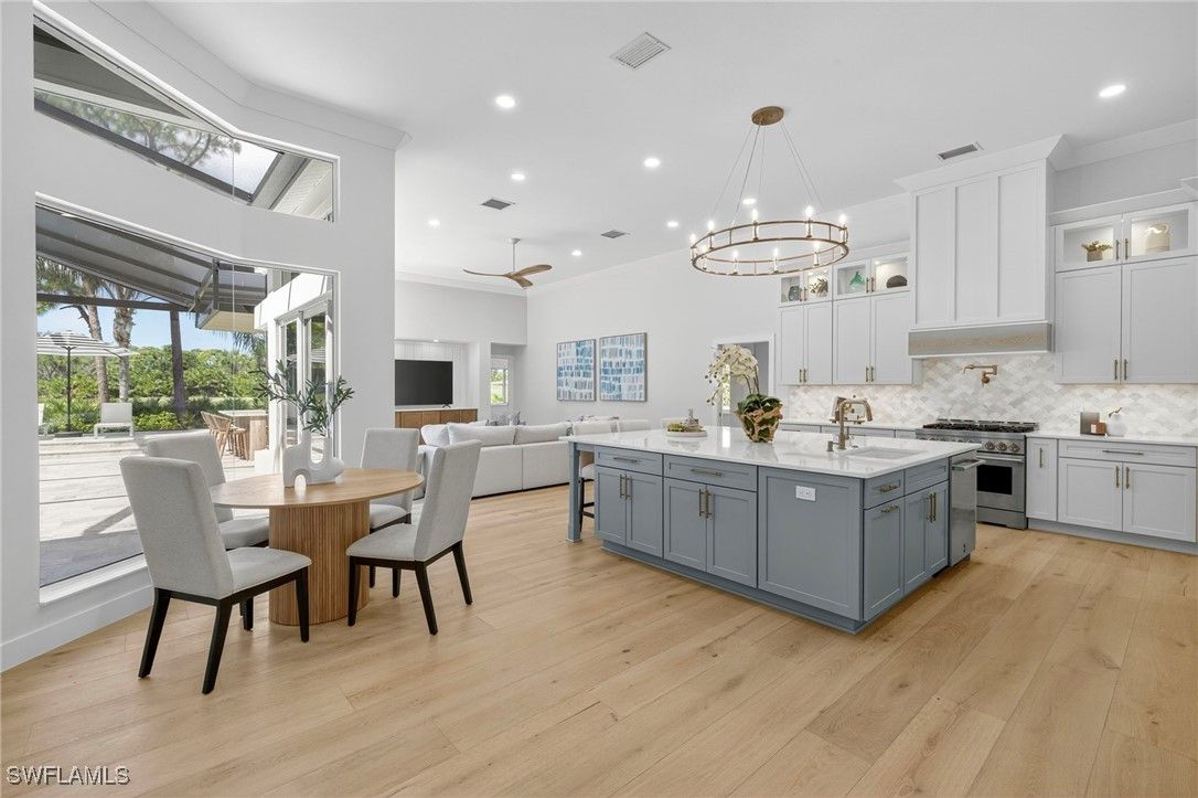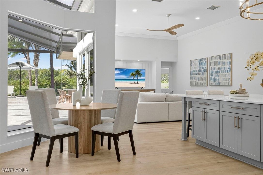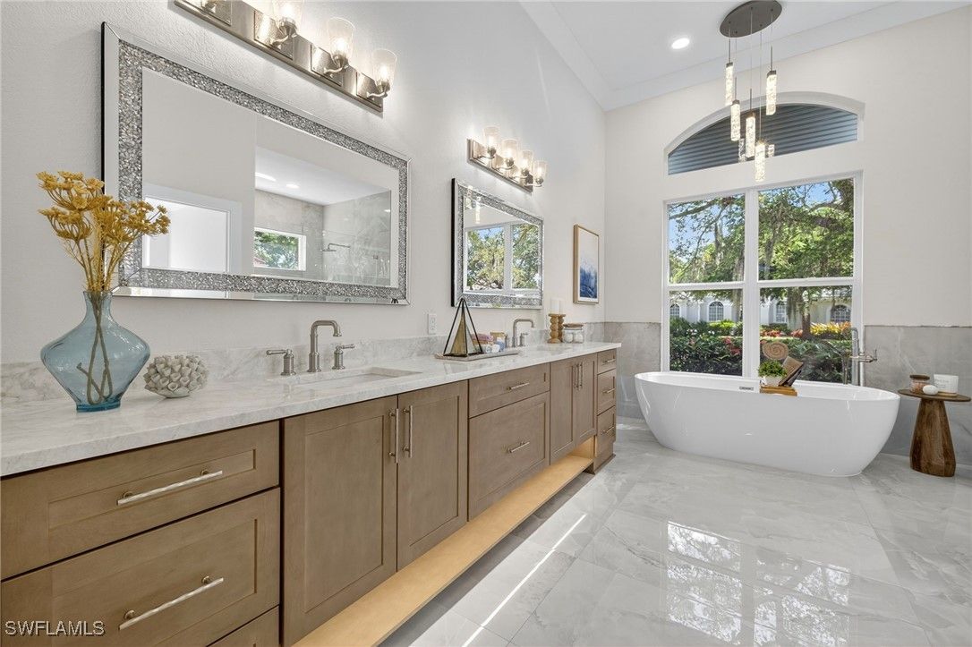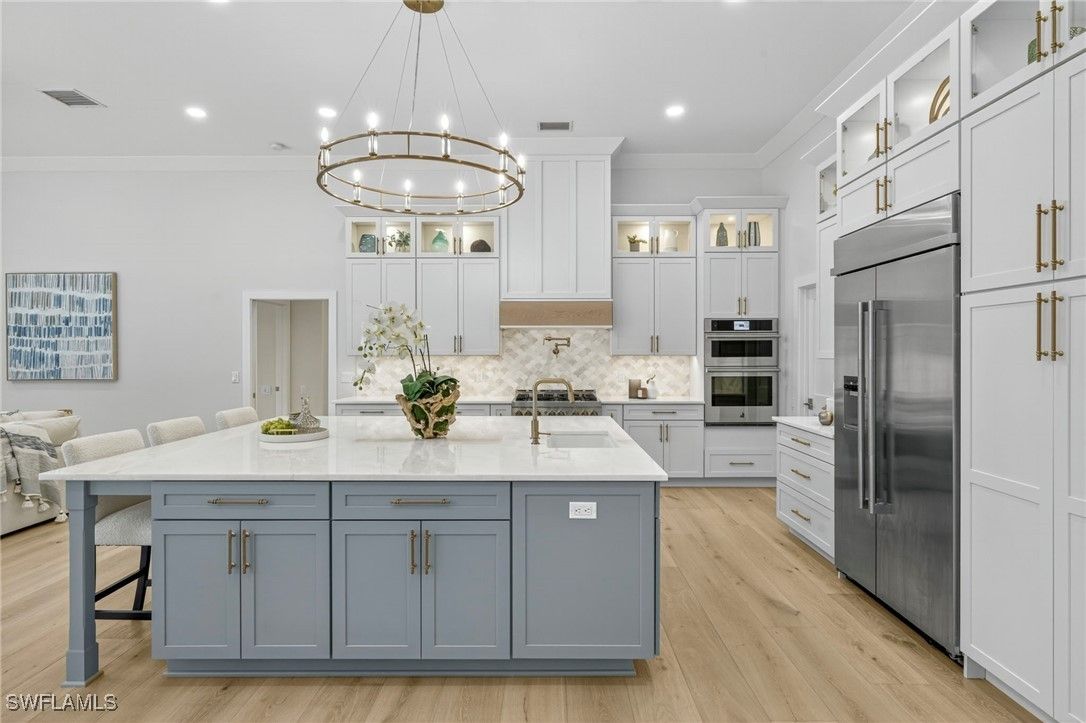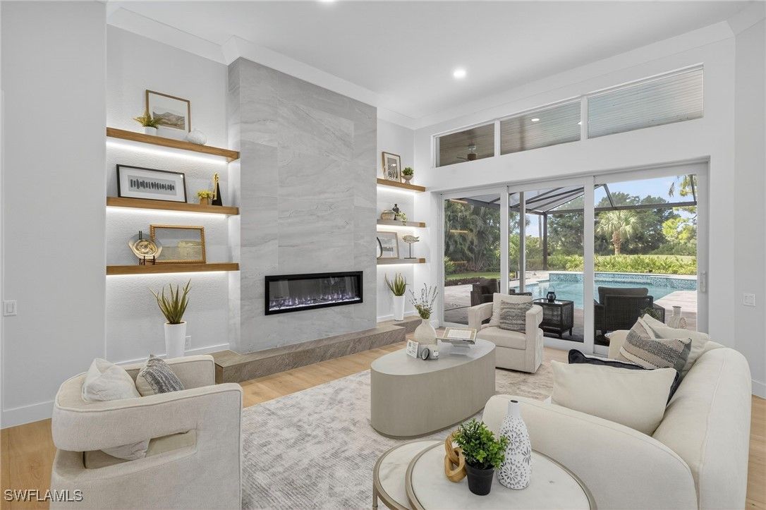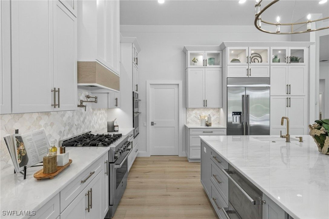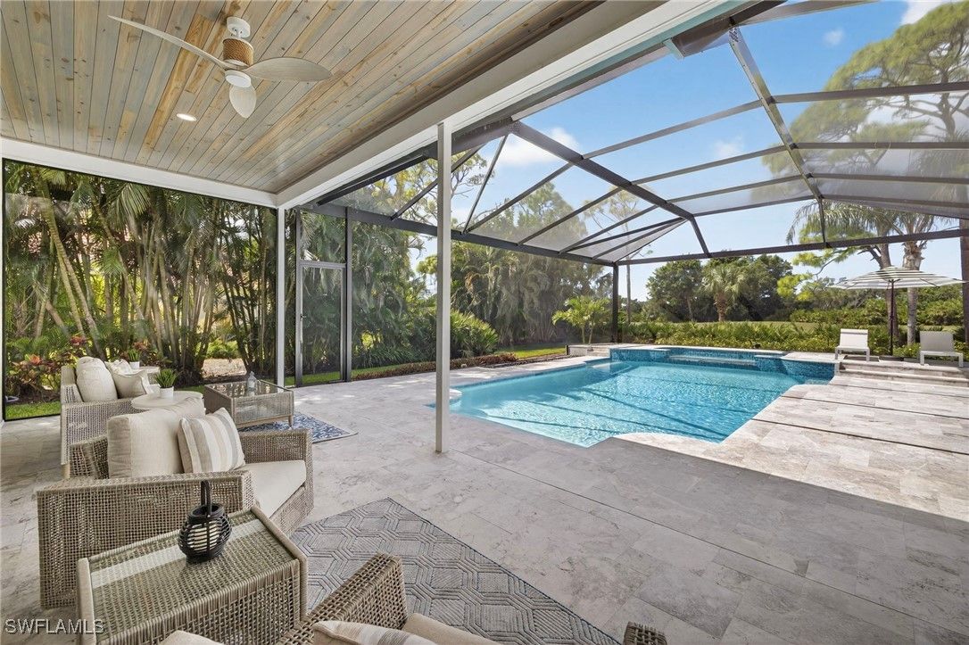 Welcome Home! This breathtaking full house remodel by Tortuga Homes, Inc. redefines luxury living with timeless coastal elegance. Perfectly situated along the scenic 8th fairway of the Hurricane Golf Course in Pelican Landing, this fully reimagined 4-bedroom plus den, 3.5-bath residence offers refined style, thoughtful functionality, and a lifestyle of effortless sophistication. Step inside to wide-plank European white oak floors flowing through light-filled, open-concept spaces. The heart of the home is a chef’s kitchen designed to impress—featuring top-tier appliances, custom cabinetry, and ample storage that makes both everyday living and entertaining feel seamless. Adjacent, the tastefully appointed great room invites relaxed gatherings with family and friends. Designed for those who love indoor-outdoor living, this home truly shines beyond its walls. A fabulous outdoor kitchen and bar anchor the expansive lanai, creating an ideal setting for al fresco dining and sunset cocktails. Enjoy the lush, professionally landscaped backyard complete with a private bocce ball court and sweeping fairway views. Each of the four bedrooms offers comfort and serenity, including a luxurious primary suite with a spa-inspired bath. The versatile den adds flexibility as a home office or reading retreat. A 2.5-car garage provides generous room for vehicles, storage, and more—every detail crafted with intention. Every inch of this home reflects Tortuga Homes’ signature craftsmanship and commitment to quality—from the custom millwork and thoughtful layout to the cohesive, coastal-inspired design. This is more than a remodel—it’s a full reinvention. Don’t miss the opportunity to own one of Pelican Landing’s finest homes, where luxury meets lifestyle on the fairway. Joining the Country Club is optional, but in Pelican Landing the Private Beach Club, Tennis, Pickleball, Fitness Center, and much more are included by the Homeowner's Association.