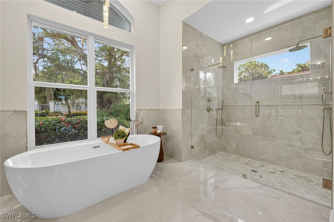 - Built-in Features, Bedroom on Main Level, Bathtub, Closet Cabinetry, Dual Sinks, Eat-in Kitchen, Fireplace, High Ceilings, Kitchen Island, Living/Dining Room, Multiple Shower Heads, Main Level Primary, Pantry, Separate Shower, Cable TV, Bar, Walk-In Closet(s), High Speed Internet, Pot Filler Faucet, Split Bedrooms
