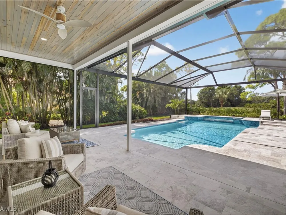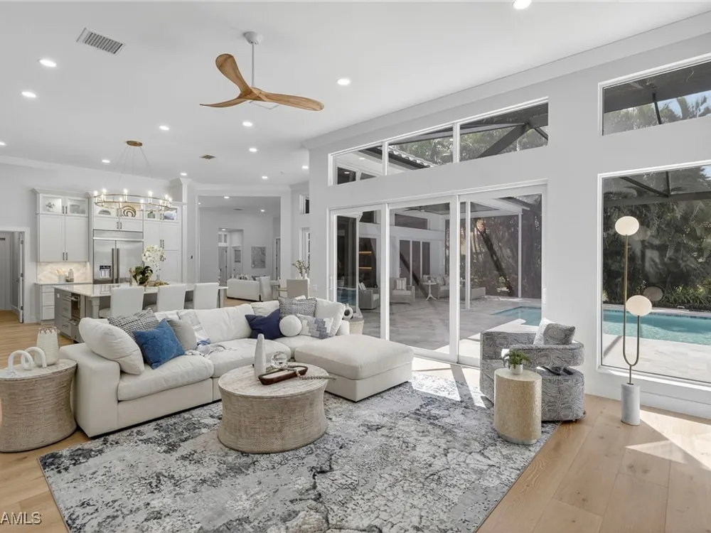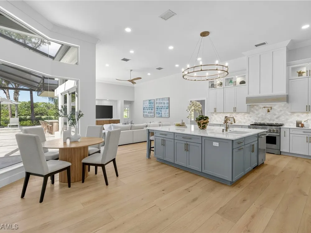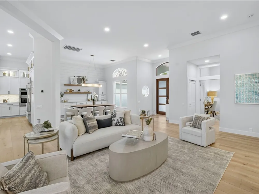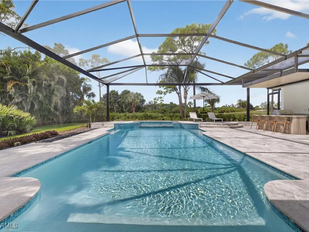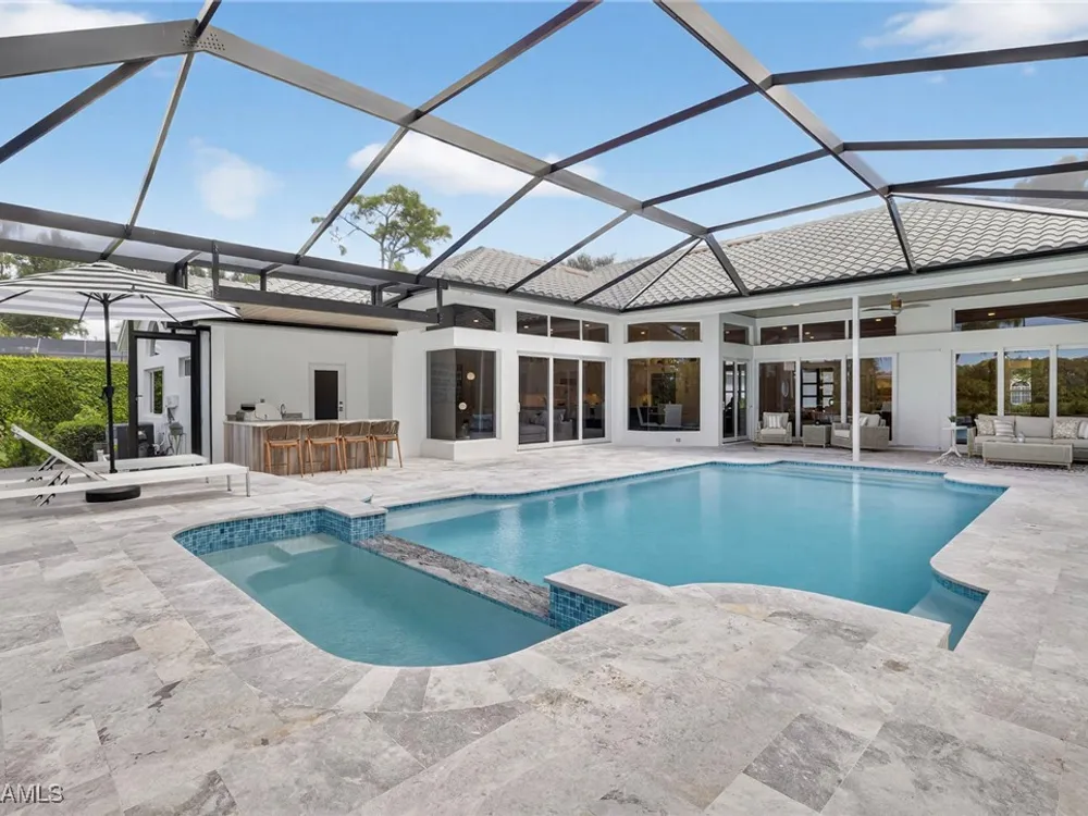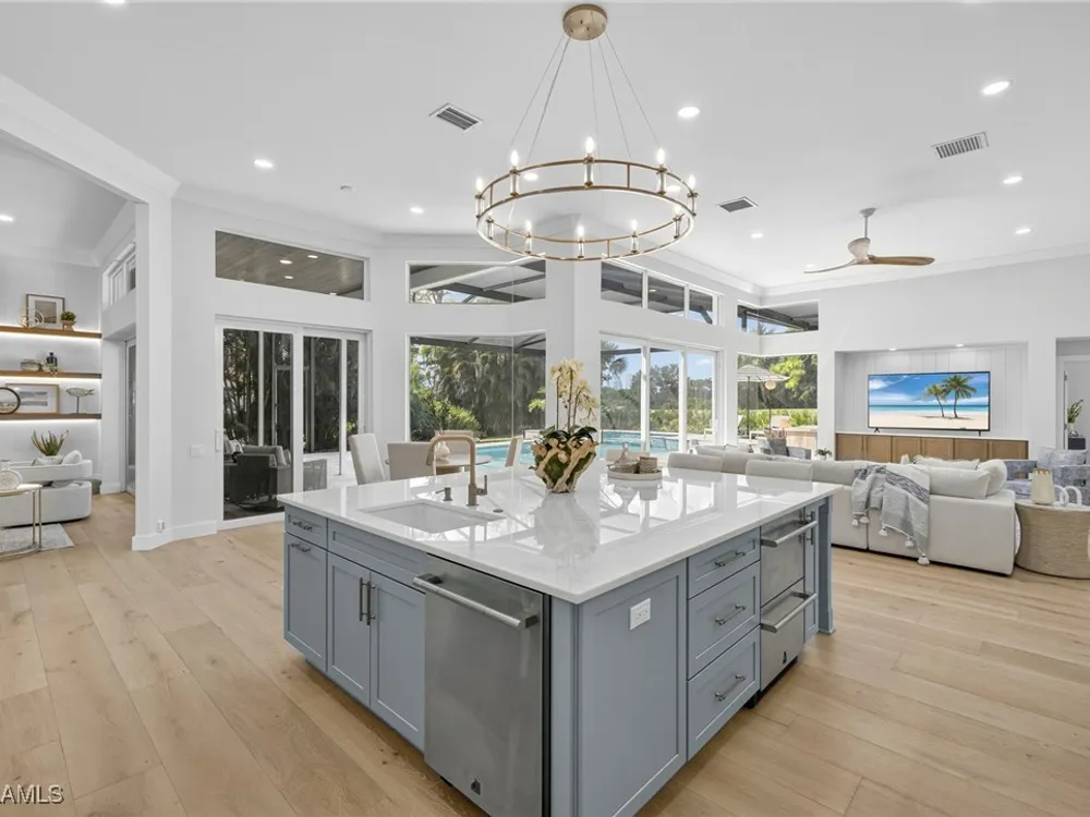 Welcome to your dream home—a breathtaking House Rescue by Tortuga Homes that redefines luxury living with timeless coastal elegance. Perfectly situated along the scenic 8th fairway of the Hurricane Golf Course in Pelican Landing, this fully reimagined 4-bedroom plus den, 3.5-bath residence offers refined style, thoughtful functionality, and a lifestyle of effortless sophistication. Step inside to wide-plank European white oak floors flowing through light-filled, open-concept spaces. The heart of the home is a chef’s kitchen designed to impress—featuring top-tier appliances, custom cabinetry, and ample storage that makes both everyday living and entertaining feel seamless. Adjacent, the tastefully appointed great room invites relaxed gatherings with family and friends. Designed for those who love indoor-outdoor living, this home truly shines beyond its walls. A fabulous outdoor kitchen and bar anchor the expansive lanai, creating an ideal setting for al fresco dining and sunset cocktails. Enjoy the lush, professionally landscaped backyard complete with a private bocce ball court and sweeping fairway views. Each of the four bedrooms offers comfort and serenity, including a luxurious primary suite with a spa-inspired bath. The versatile den adds flexibility as a home office or reading retreat. A 2.5-car garage provides generous room for vehicles, storage, and more—every detail crafted with intention. Every inch of this home reflects Tortuga Homes’ signature craftsmanship and commitment to quality—from the custom millwork and thoughtful layout to the cohesive, coastal-inspired design. This is more than a remodel—it’s a full reinvention. Don’t miss the opportunity to own one of Pelican Landing’s finest House Rescue homes, where luxury meets lifestyle on the fairway.
