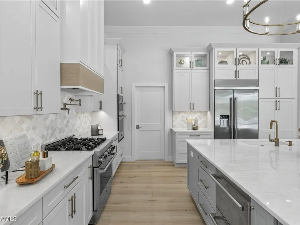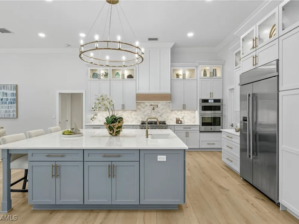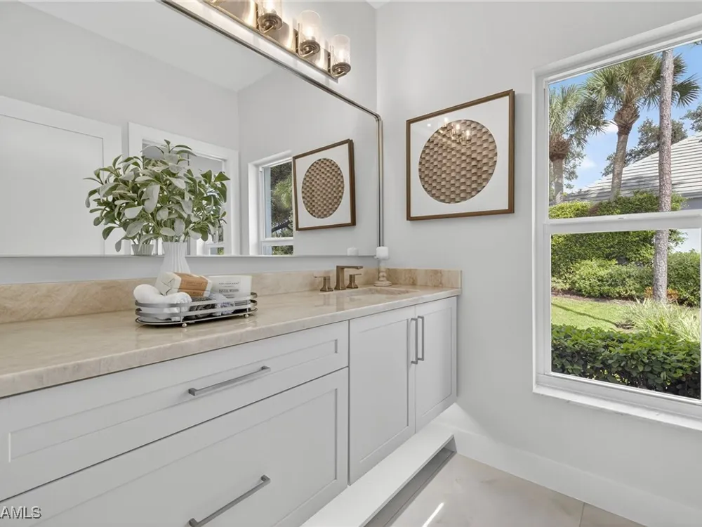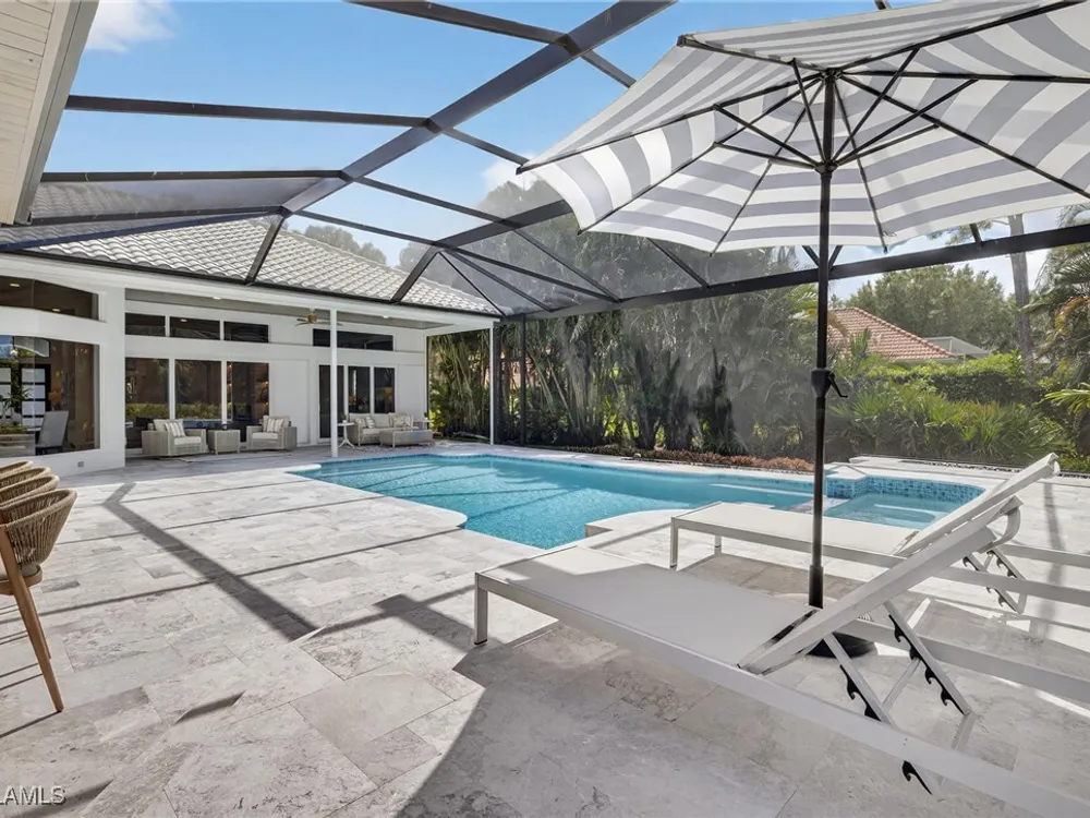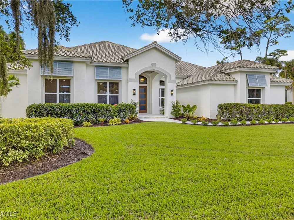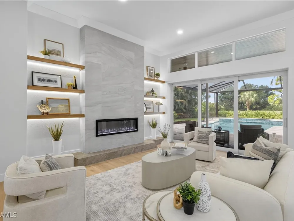 Welcome to your dream home—a breathtaking House Rescue by Tortuga Homes that redefines luxury living with timeless coastal elegance. Perfectly situated along the scenic 8th fairway of the Hurricane Golf Course in Pelican Landing, this fully reimagined 4-bedroom plus den, 3.5-bath residence offers refined style, thoughtful functionality, and a lifestyle of effortless sophistication. Step inside to wide-plank European white oak floors flowing through light-filled, open-concept spaces. The heart of the home is a chef’s kitchen designed to impress—featuring top-tier appliances, custom cabinetry, and ample storage that makes both everyday living and entertaining feel seamless. Adjacent, the tastefully appointed great room invites relaxed gatherings with family and friends. Designed for those who love indoor-outdoor living, this home truly shines beyond its walls. A fabulous outdoor kitchen and bar anchor the expansive lanai, creating an ideal setting for al fresco dining and sunset cocktails. Enjoy the lush, professionally landscaped backyard complete with a private bocce ball court and sweeping fairway views. Each of the four bedrooms offers comfort and serenity, including a luxurious primary suite with a spa-inspired bath. The versatile den adds flexibility as a home office or reading retreat. A 2.5-car garage provides generous room for vehicles, storage, and more—every detail crafted with intention. Every inch of this home reflects Tortuga Homes’ signature craftsmanship and commitment to quality—from the custom millwork and thoughtful layout to the cohesive, coastal-inspired design. This is more than a remodel—it’s a full reinvention. Don’t miss the opportunity to own one of Pelican Landing’s finest House Rescue homes, where luxury meets lifestyle on the fairway.