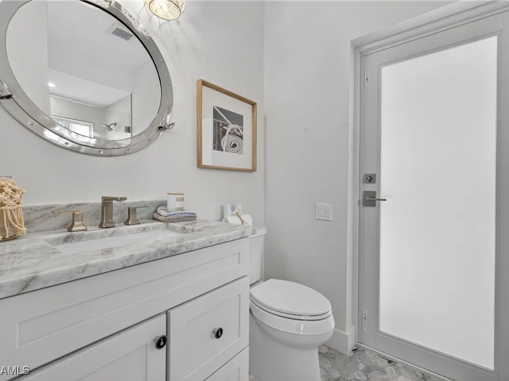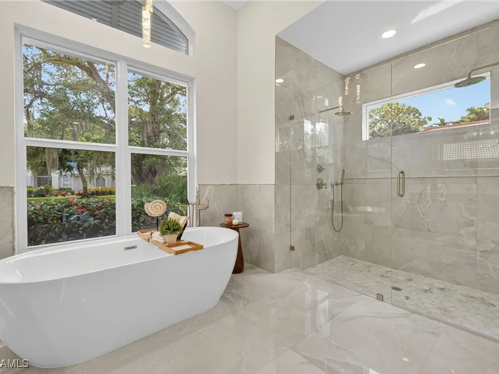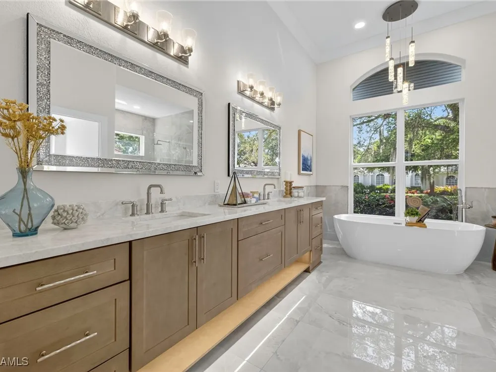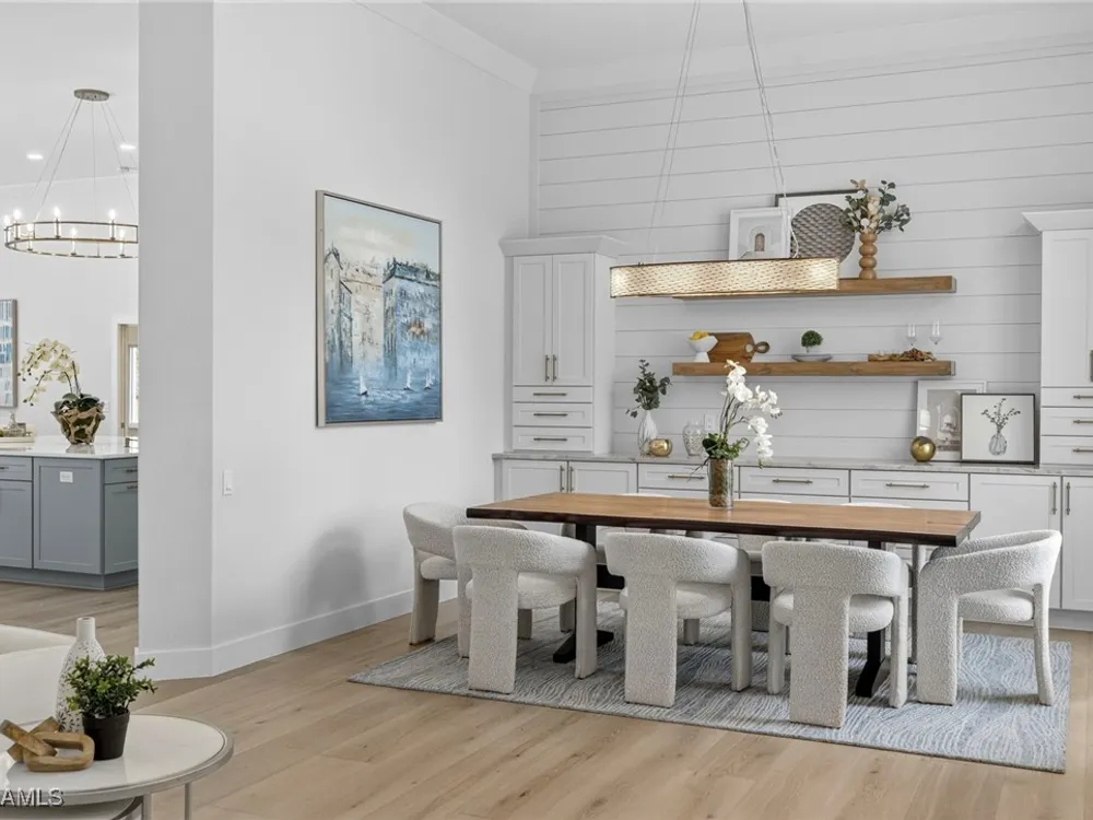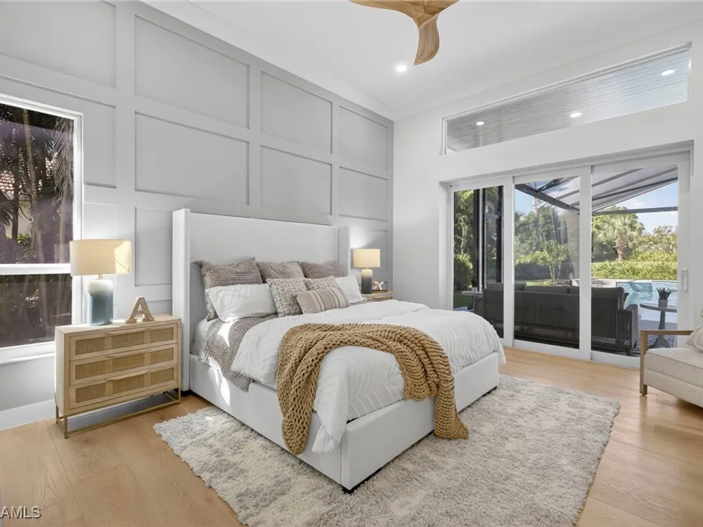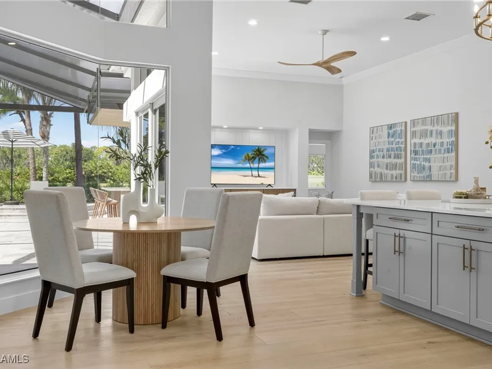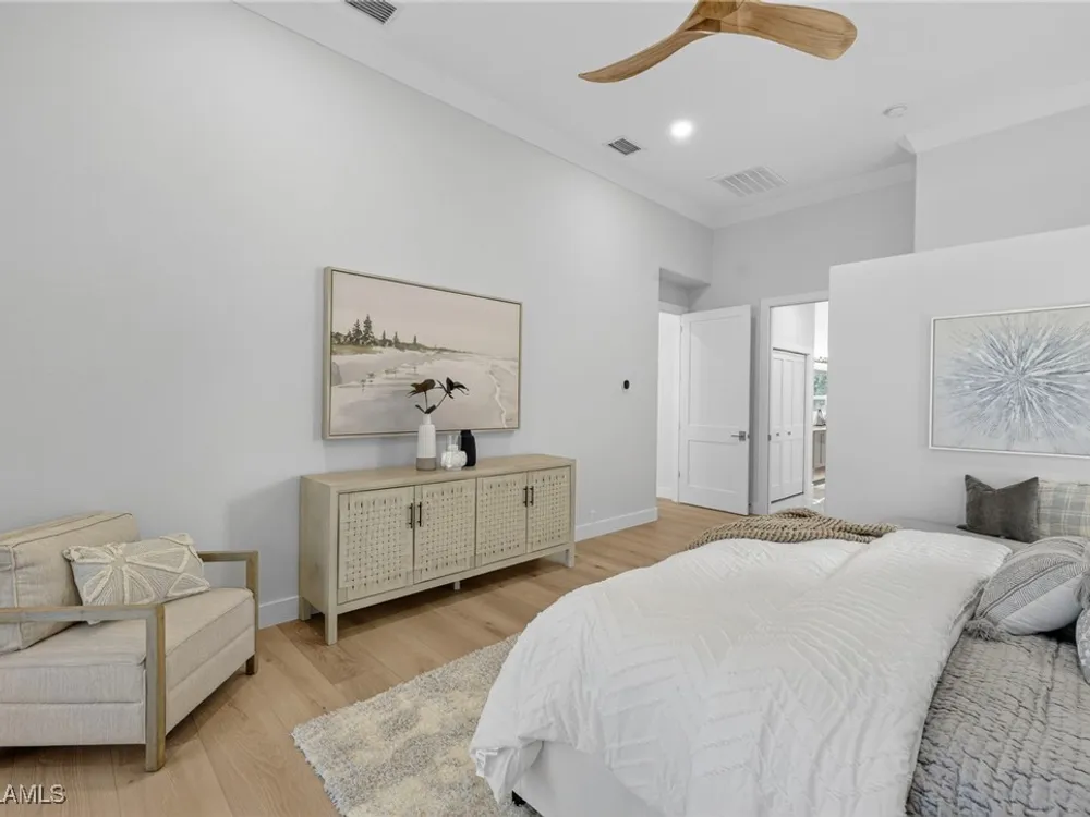 Welcome to your dream home—a breathtaking House Rescue by Tortuga Homes that redefines luxury living with timeless coastal elegance. Perfectly situated along the scenic 8th fairway of the Hurricane Golf Course in Pelican Landing, this fully reimagined 4-bedroom plus den, 3.5-bath residence offers refined style, thoughtful functionality, and a lifestyle of effortless sophistication. Step inside to wide-plank European white oak floors flowing through light-filled, open-concept spaces. The heart of the home is a chef’s kitchen designed to impress—featuring top-tier appliances, custom cabinetry, and ample storage that makes both everyday living and entertaining feel seamless. Adjacent, the tastefully appointed great room invites relaxed gatherings with family and friends. Designed for those who love indoor-outdoor living, this home truly shines beyond its walls. A fabulous outdoor kitchen and bar anchor the expansive lanai, creating an ideal setting for al fresco dining and sunset cocktails. Enjoy the lush, professionally landscaped backyard complete with a private bocce ball court and sweeping fairway views. Each of the four bedrooms offers comfort and serenity, including a luxurious primary suite with a spa-inspired bath. The versatile den adds flexibility as a home office or reading retreat. A 2.5-car garage provides generous room for vehicles, storage, and more—every detail crafted with intention. Every inch of this home reflects Tortuga Homes’ signature craftsmanship and commitment to quality—from the custom millwork and thoughtful layout to the cohesive, coastal-inspired design. This is more than a remodel—it’s a full reinvention. Don’t miss the opportunity to own one of Pelican Landing’s finest House Rescue homes, where luxury meets lifestyle on the fairway.