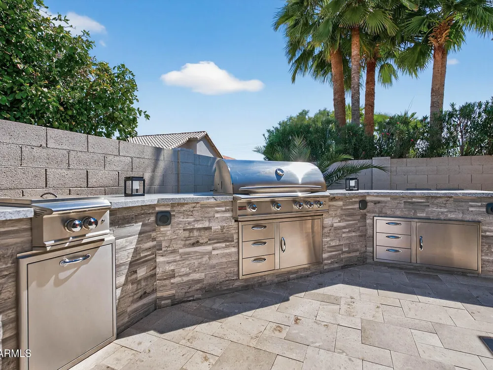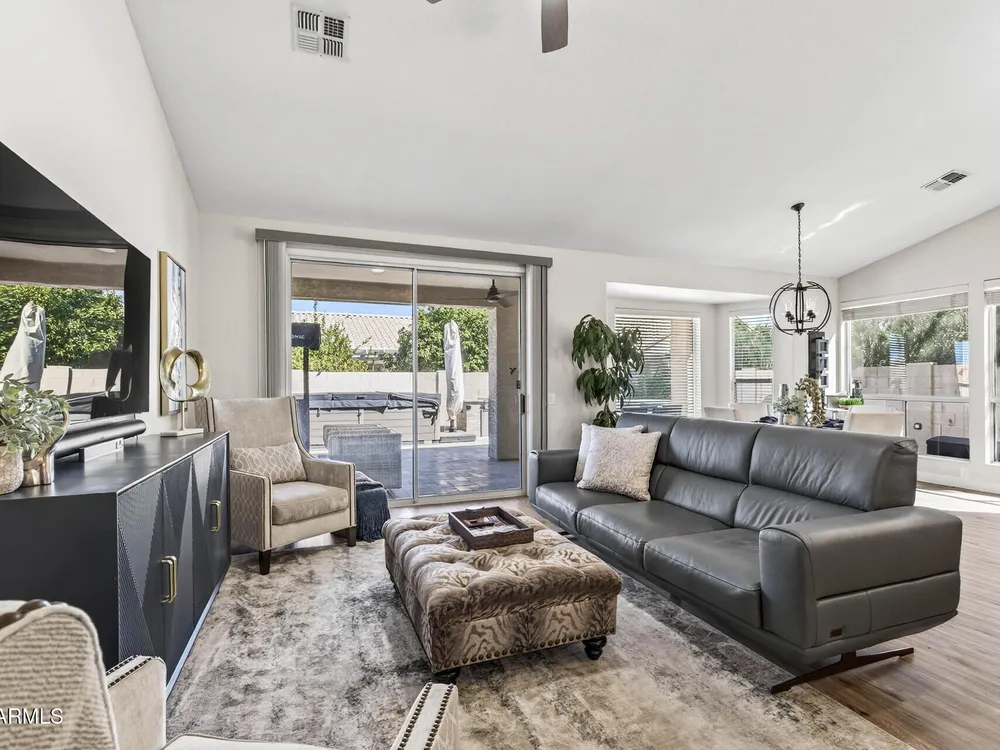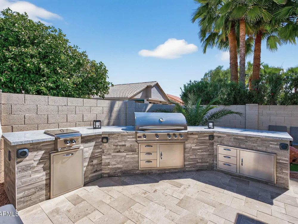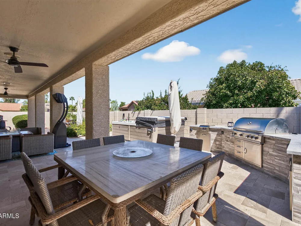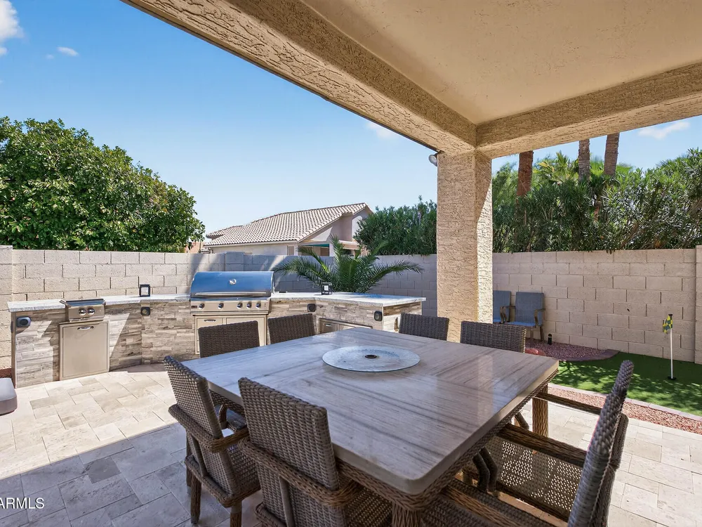 Welcome to this beautifully remodeled 3-bedroom, 2-bathroom home located in the highly desirable active adult community of Sun Lakes. Spanning an impressive 2,659 square feet, this home blends modern elegance with comfort, offering spacious living and thoughtful upgrades throughout. From the moment you step inside, you'll notice the attention to detail—every inch of this home has been tastefully renovated, creating a light, open, and inviting atmosphere. The gourmet kitchen features high-end finishes, custom cabinetry, and top-of-the-line appliances, seamlessly connecting to spacious living and dining areas perfect for entertaining. Step outside into your backyard oasisan entertainer's dream come true! With over $125,000 in upgrades, this outdoor space offers a resort-style experience, complete with custom hardscaping, lush landscaping, built-in BBQ, fire features, and multiple areas for dining and relaxing under the Arizona sky. Additional highlights include: 3-car garage with epoxy flooring and ample storage space Large primary suite with spa-inspired bathroom Energy-efficient upgrades and modern finishes throughout Located in a vibrant, amenity-rich community with golf, pools, tennis, and social clubs Don't miss this rare opportunity to own a turnkey, luxury home in one of Sun Lakes' most sought-after neighborhoods.