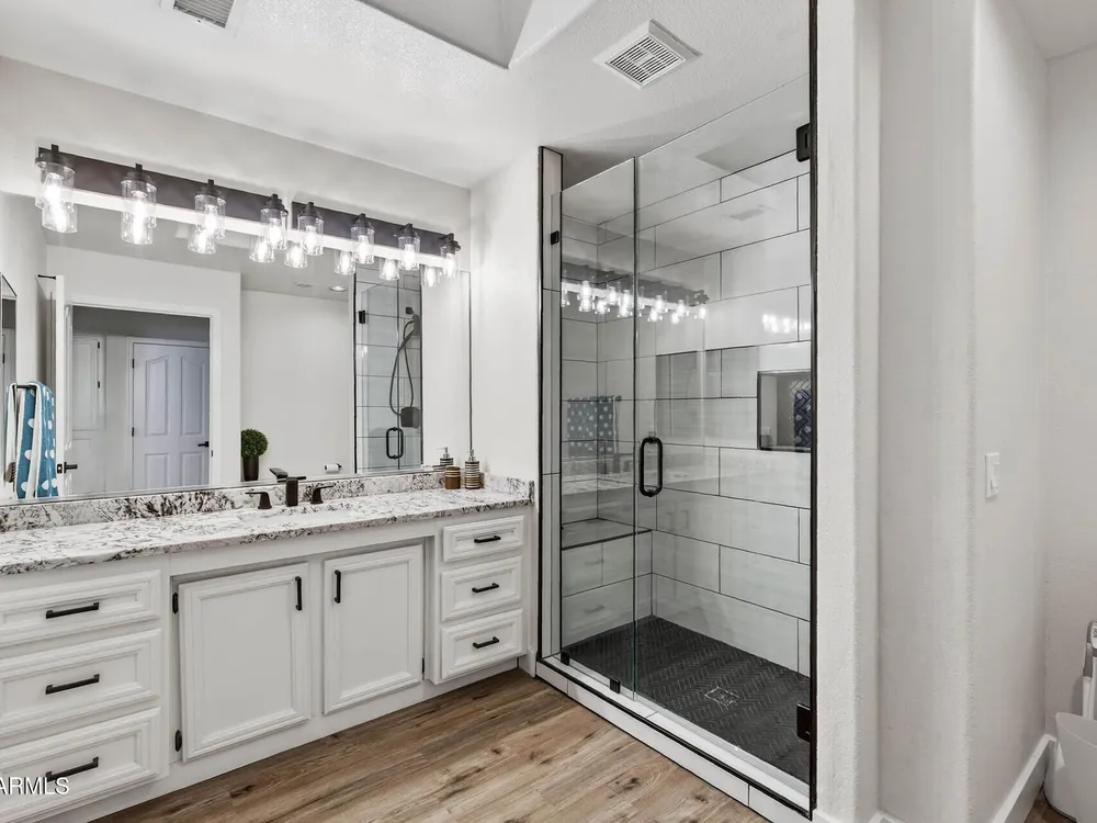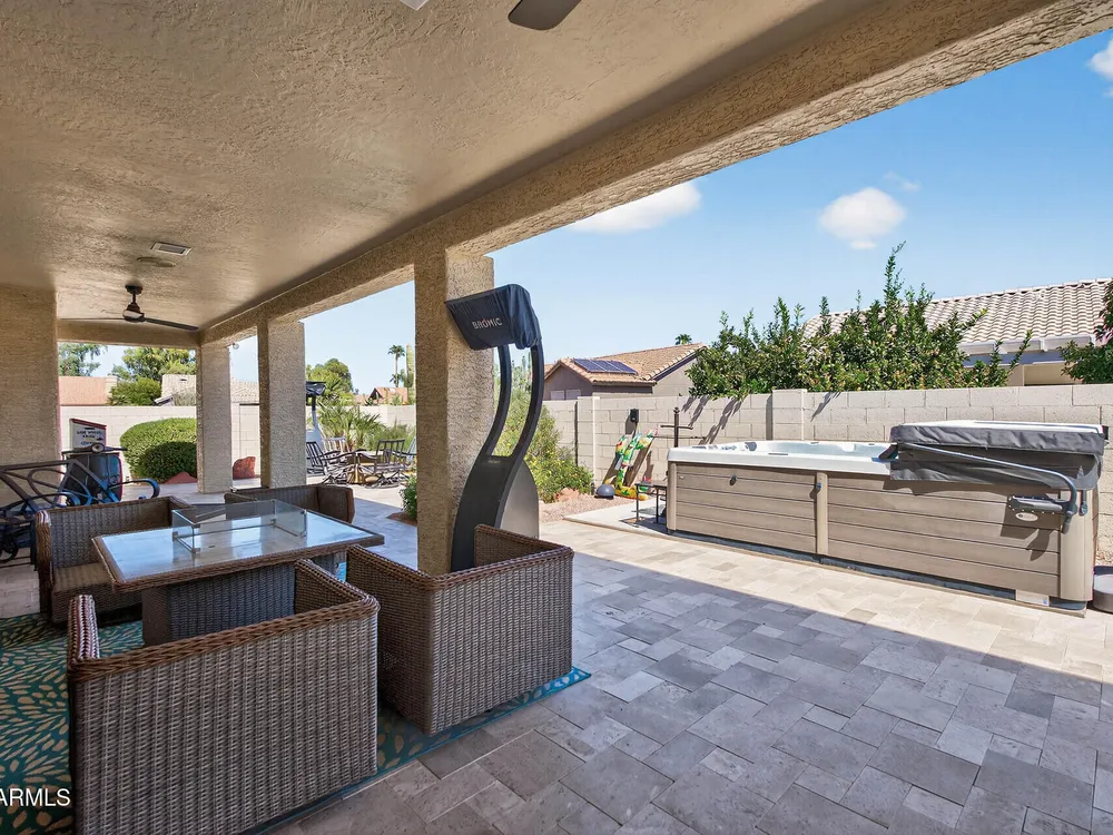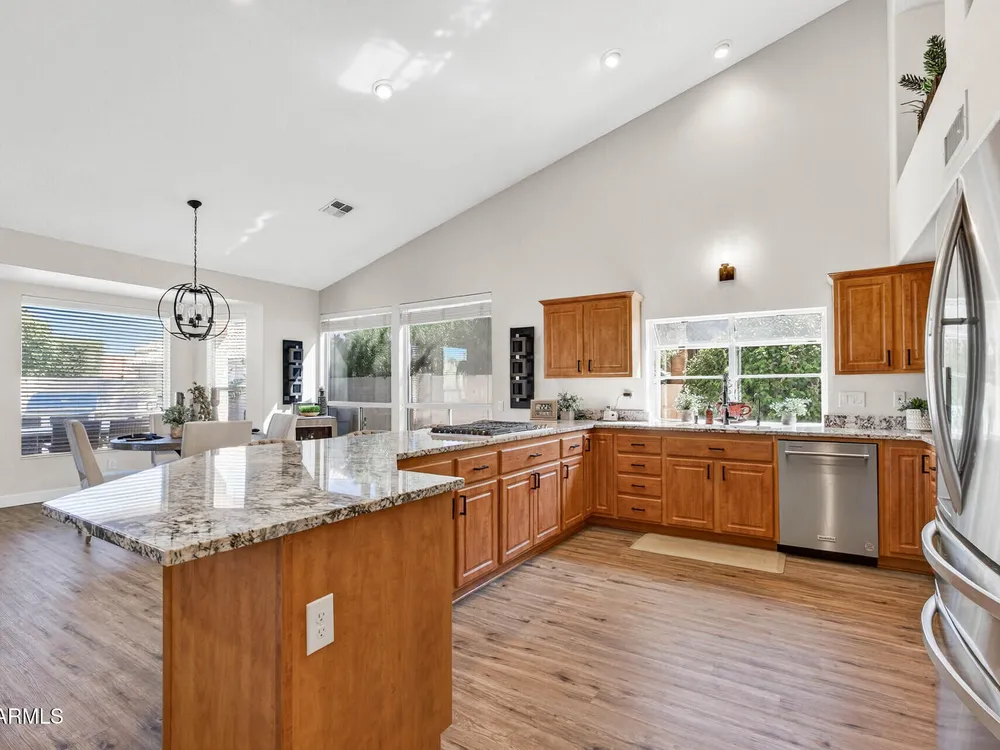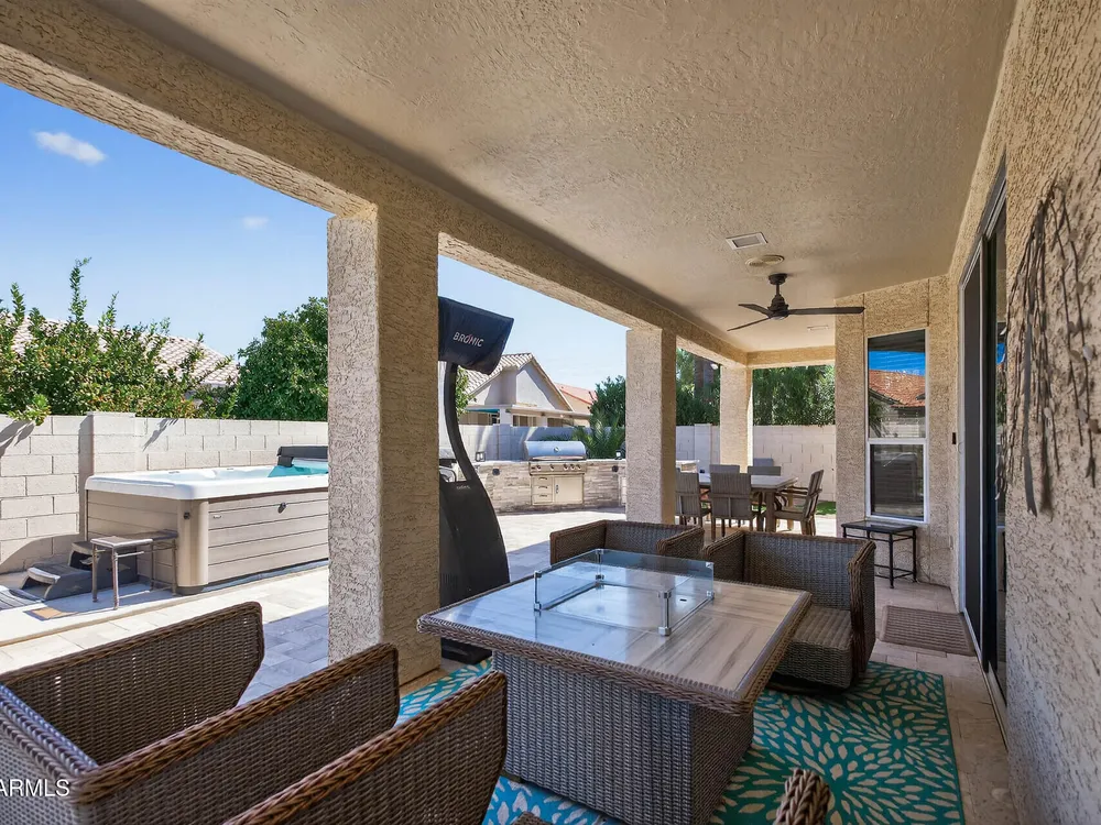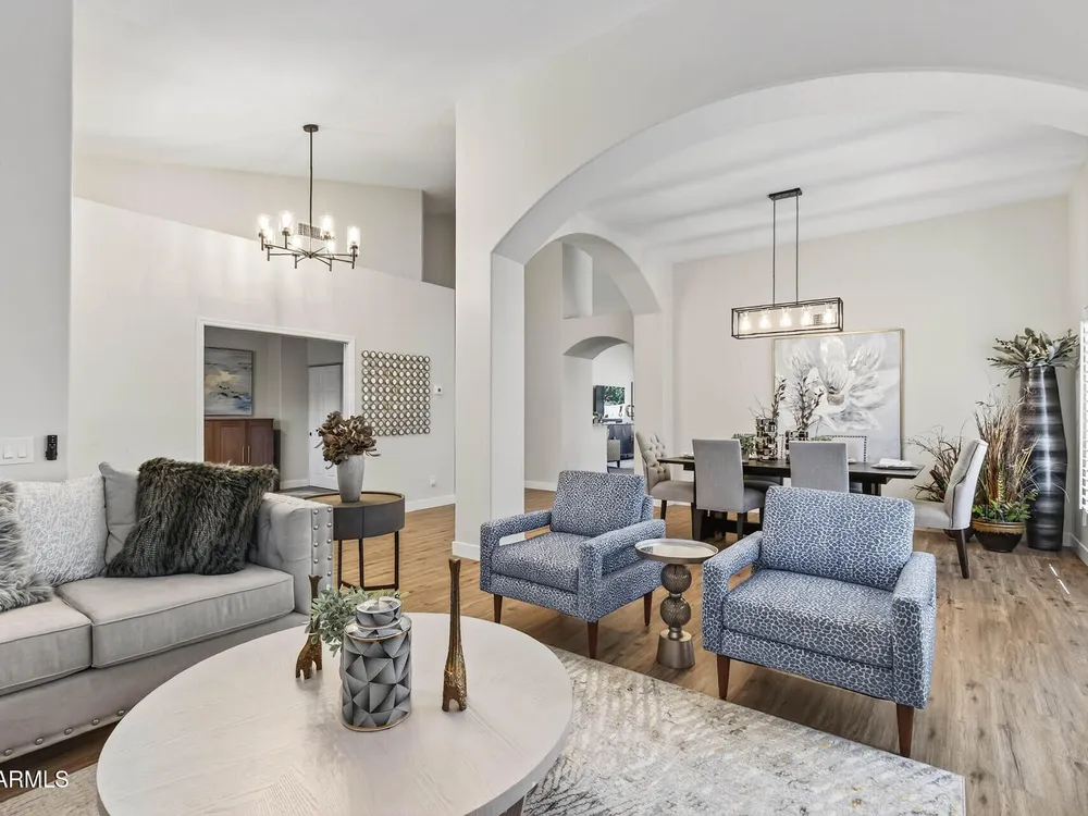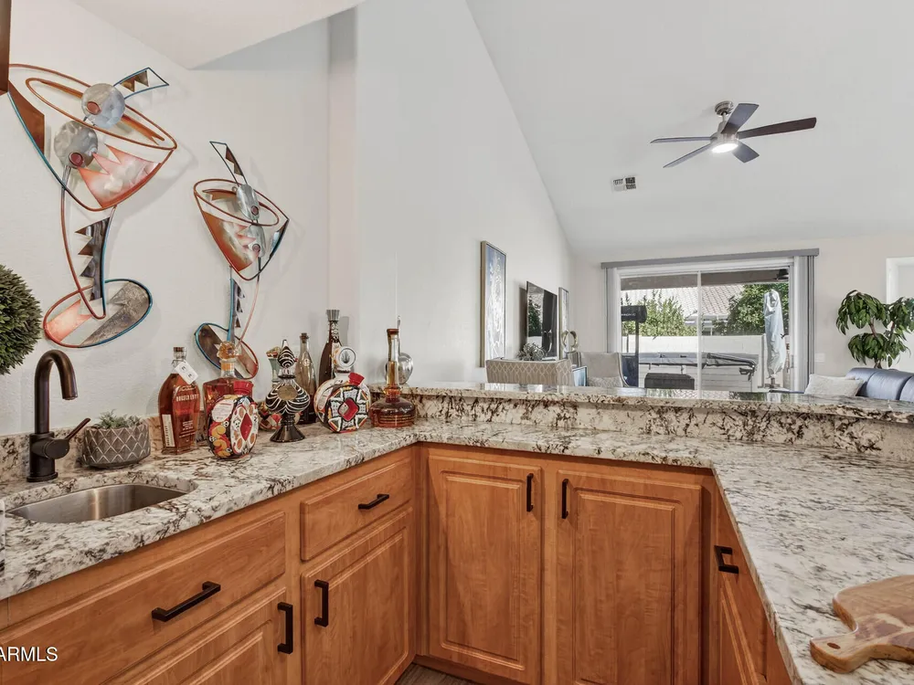 Welcome to this beautifully remodeled 3-bedroom, 2-bathroom home located in the highly desirable active adult community of Sun Lakes. Spanning an impressive 2,659 square feet, this home blends modern elegance with comfort, offering spacious living and thoughtful upgrades throughout. From the moment you step inside, you'll notice the attention to detail—every inch of this home has been tastefully renovated, creating a light, open, and inviting atmosphere. The gourmet kitchen features high-end finishes, custom cabinetry, and top-of-the-line appliances, seamlessly connecting to spacious living and dining areas perfect for entertaining. Step outside into your backyard oasisan entertainer's dream come true! With over $125,000 in upgrades, this outdoor space offers a resort-style experience, complete with custom hardscaping, lush landscaping, built-in BBQ, fire features, and multiple areas for dining and relaxing under the Arizona sky. Additional highlights include: 3-car garage with epoxy flooring and ample storage space Large primary suite with spa-inspired bathroom Energy-efficient upgrades and modern finishes throughout Located in a vibrant, amenity-rich community with golf, pools, tennis, and social clubs Don't miss this rare opportunity to own a turnkey, luxury home in one of Sun Lakes' most sought-after neighborhoods.