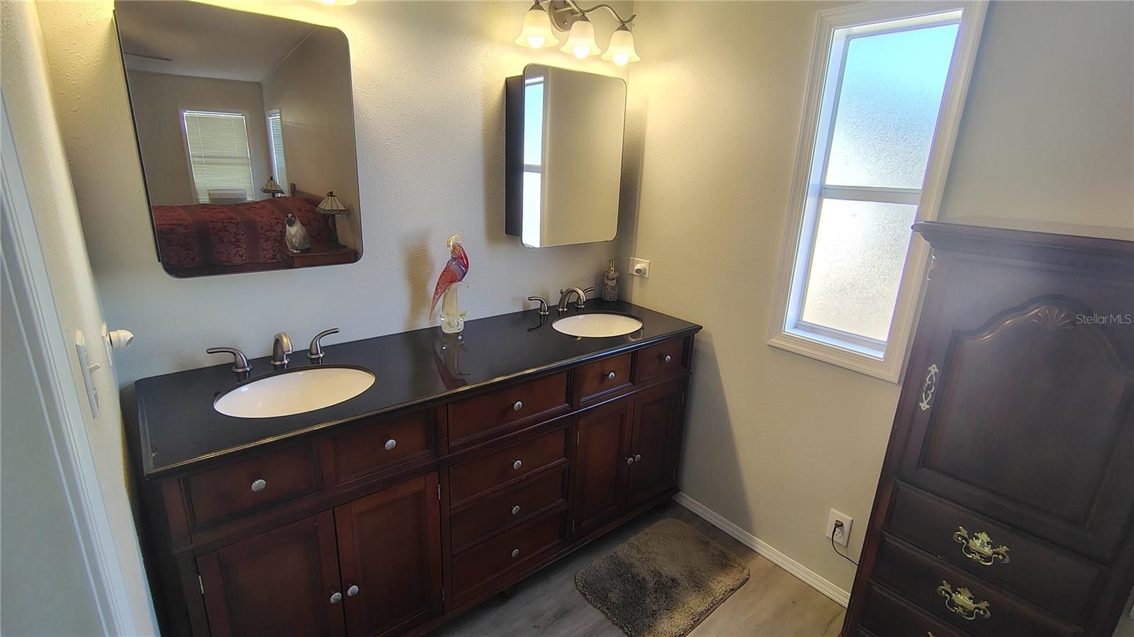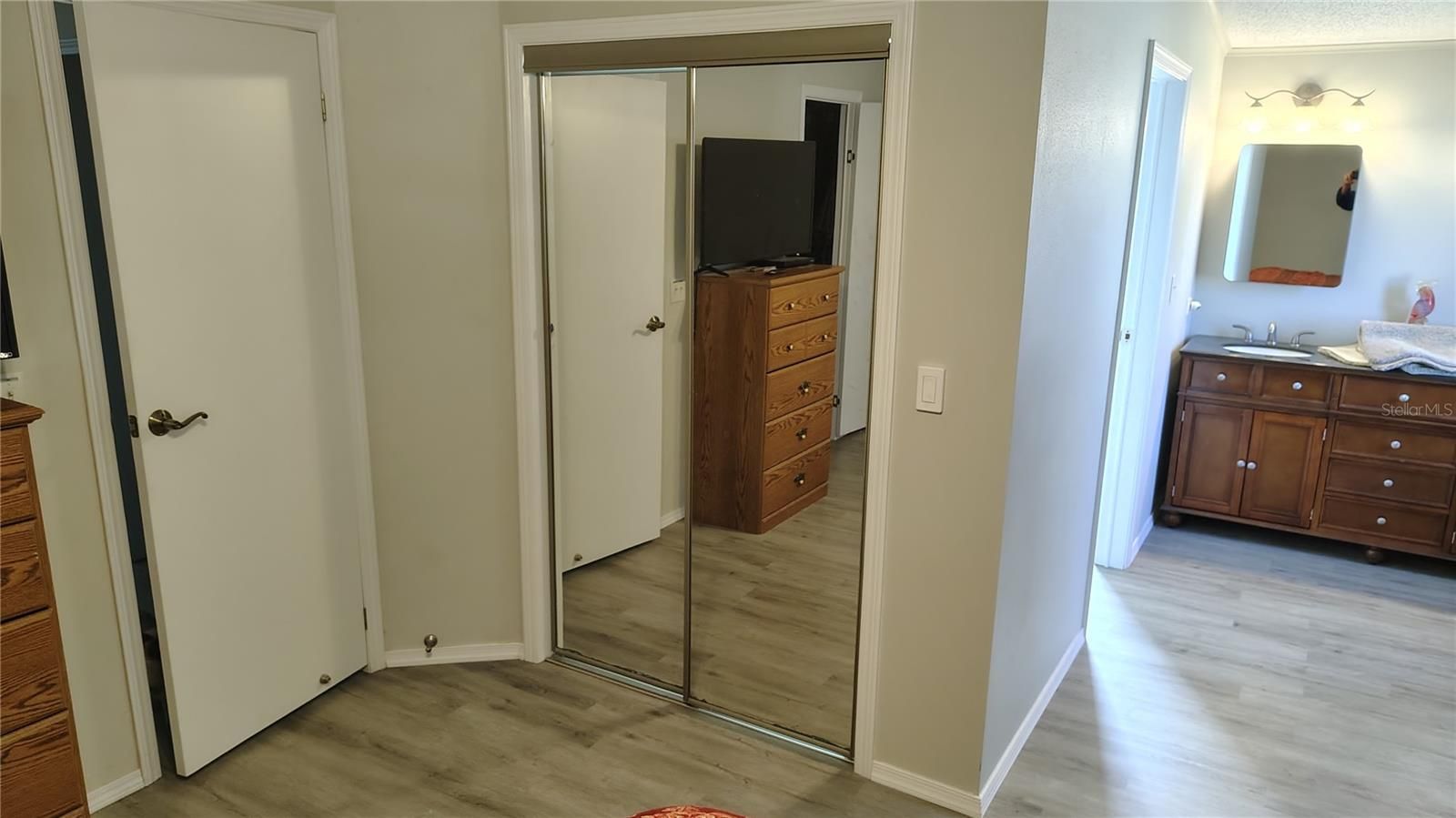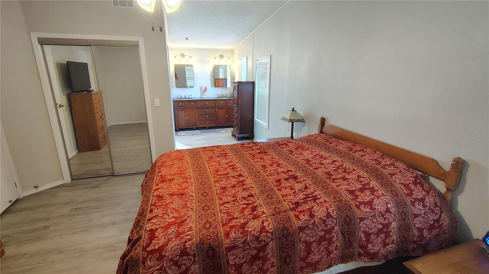 Welcome to this two bedroom two bath home located in the highly sought after 55 plus community of Plantation at Leesburg. A new roof was installed 6 years ago plus luxury vinyl plank flooring throughout most of the home, separate living and family room areas, dining room, kitchen with stainless appliances and tiled counter tops, inside laundry with cabinets, full guest bath, large guest bedroom with 8 ft closet with mirror and doors, master bedroom with dual closets, renovated primary bathroom with dual sinks and dual medicine cabinets, newer shower and light fixtures and upgraded fans throughout the home. There's a Florida room and a nice size wood deck for barbecuing an outside entertaining. They're good size shed combination workshop with golf cart garage door and covered carport. This golf course community has 2 golf courses, 24 hr. guards at the entrances, three club houses, three swimming pools, large Manor clubhouse which hosts plays and musical events as well as many other activities. Activities include billiards, exercise facilities, bocce ball, tennis, pickleball, baseball field, batting cage, archery, RV and boat storage as well as many others.