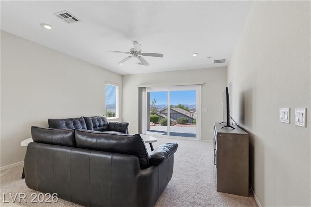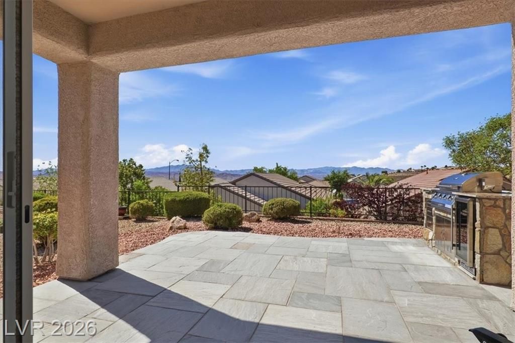 Solera at Anthem! Lewis floor plan on a premium elevated lot with stunning mountain views. This beautifully updated home features fresh two-tone interior paint and new carpet throughout. The kitchen is well-appointed with brand new granite countertops, porcelain tile backsplash, and pantry. Additional features include a reverse osmosis system, and brand-new stainless appliances including refrigerator, gas stove, microwave. The spacious great room features a brand new sliding glass door that open to the backyard—perfect for indoor-outdoor living. The primary suite includes a large walk-in closet, a bath with dual sinks, raised vanity, and walk-in shower. Additional upgrades include brand new pella dual-pane windows, a new water softener, and a water treatment system. A convenient laundry closet comes complete with washer and dryer. The backyard features a covered patio, new Italian bluestone built-in BBQ with low voltage lighting and a refrigerator!