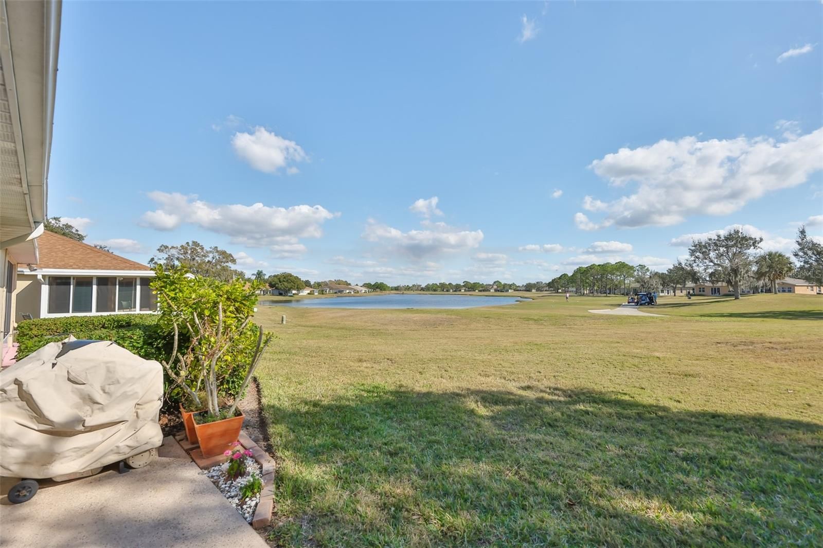 This Concord model condo is centrally located with quick access by car or golf cart to both the North and South clubhouses. Each feaures indoor and outdoor pools, exercise areas, arts and crafts, game rooms, and party rooms. The North also includes a cafe and a large auditorium with a large stage for various entertainment including movies and live performances. The South includes a restaurant and bar. If you don't want to go to a club house to take a swim, your Nantucket Associations has their own private swimming pool for your pleasure. Enjoy your coffee in the morning and your favorite drink in the evening by gazing over the golf course and water view from the back of your home. The brick paver driveway was recently resealed and leads to the Epoxy covered garage floor. Once inside, you will notice the kithen includes new backsplash tile, newer appliances, pantry and leads to the laundry area with entrance to the 1.5 car garage with room for a car, golf cart and lots of storage. The kitchen counter allows for a breakfast bar with seating for two. The combination dining and living room leads to the enclosed lanai under central air. The split bedrooms allow for more privacy for you and your guest. A newer walkin shower was recently installed in the main bath. Vinyl wood floors and ceramic tile are featured throughout the condo. The air conditioner was replaced in Occtober 2024 and a repipe of the plumbing system was done in January of 2017. A final note: your location puts you within a mile of all the venues the Tampa area has to offer: 4 major sports, the white sandy beaches of the gulf coast, cruise lines, the arts of Tampa and Sarasota. Add a half hour to your trip and your in Walt Disney World in Orlando, Florida.