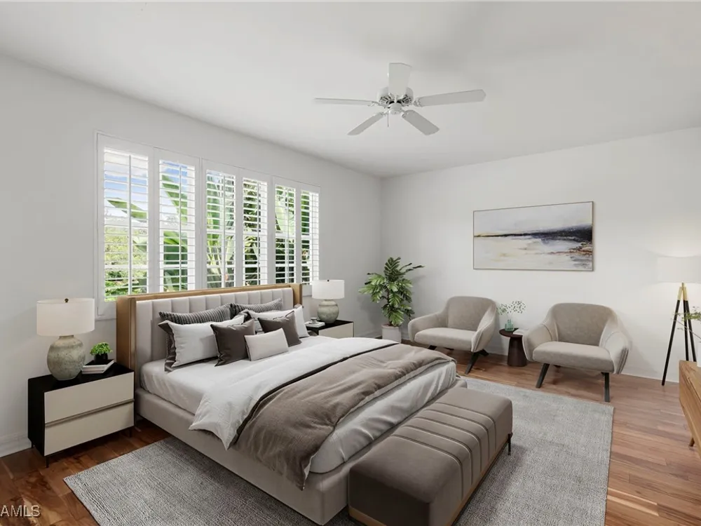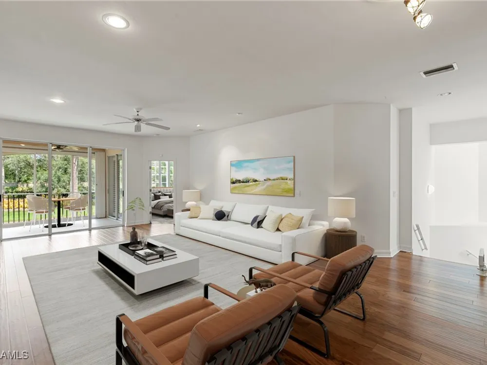 Welcome to your Florida retreat! This charming 3 bedroom, 2 bath home offers easy living with hardwood floors, Murphy beds in the guest rooms, and a spacious primary suite. Available furnished or unfurnished, buyer’s preference, the attached 1 car garage also adds convenience. From your private screened patio, take in the beautiful views of Pelican Landing, known for its protected wildlife and serene landscapes. Close to the community pool and the resort-style amenities; tennis, pickleball, kayaking, butterfly garden, complimentary sailing lessons, exclusive access to a private Gulf-front island (via a 10-minute water shuttle) this active community truly has it all! With most amenities covered by the main HOA his home is perfect for those seeking comfort and convenience in their Florida lifestyle. Optional membership at The Nest Golf Club includes two Tom Fazio-designed courses and a newly renovated clubhouse.