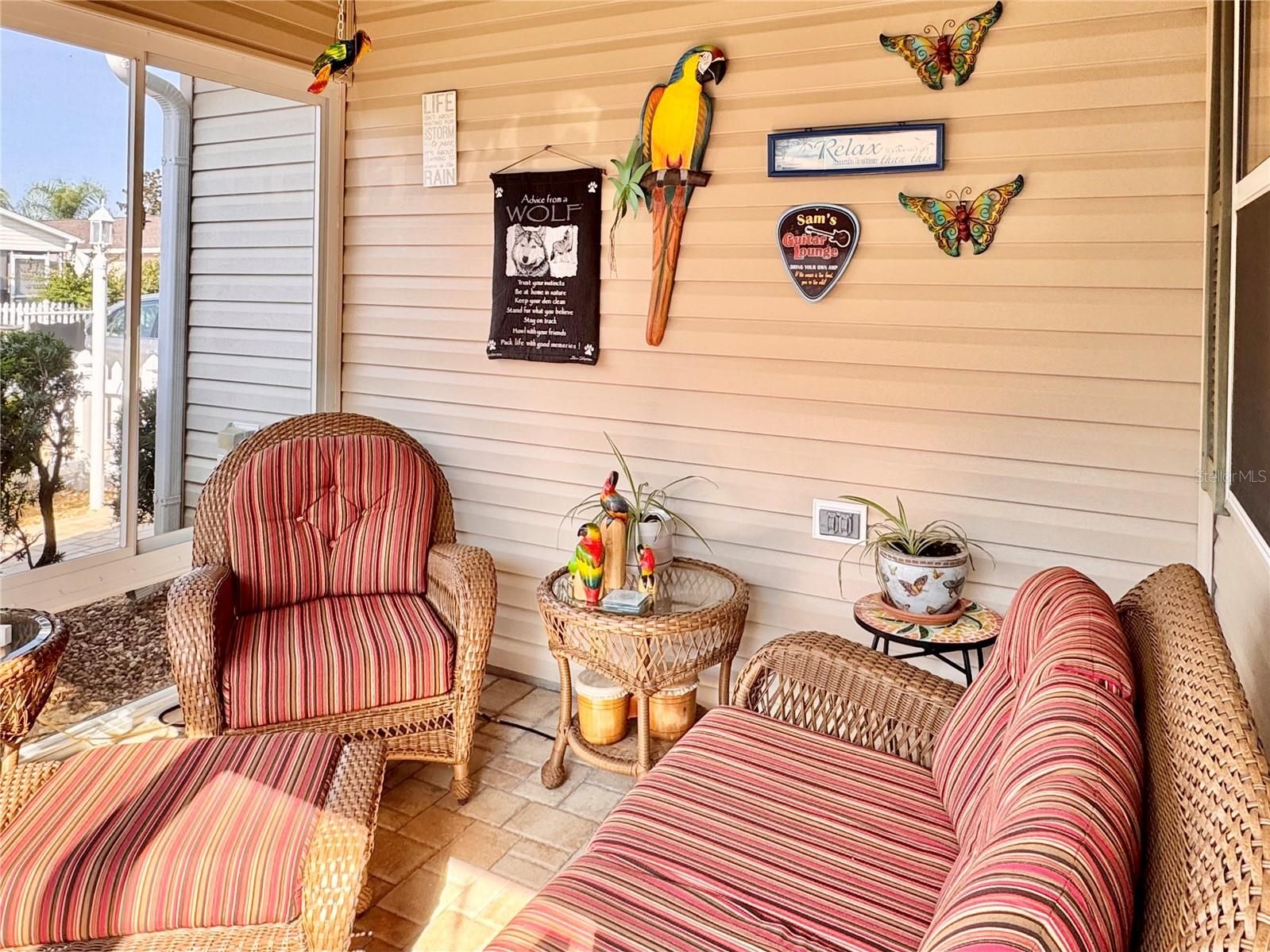 Welcome to this beautifully maintained 2-bedroom, 2-bath Cabot Cove Patio Villa perfectly located in the Village of Duval, just south of Lake Sumter Landing. This IMMACULATE home offers an inviting blend of comfort and style, highlighted by vaulted ceilings, no carpet, and a bright, open layout that lives larger than expected. The kitchen has been tastefully enhanced with beautifully painted cabinets, QUARTZ countertops, and newer appliances, creating a fresh, modern feel. A 2-year-old roof adds peace of mind, while the brick-paved driveway, walkway, and patio elevate the home’s curb appeal. The enclosed lanai provides a relaxing all-season space, and the car-coated garage floor adds a clean, finished touch. Inside laundry includes a stacked washer and dryer, allowing room for additional cabinetry plus a generous pantry closet. Thoughtful landscaping frames the home beautifully, and the property is being offered partially furnished for added convenience. With its exceptional condition and prime location near golf, pools, shopping, and Lake Sumter Landing, this villa is truly move-in ready and a standout in today’s market. Call today!
