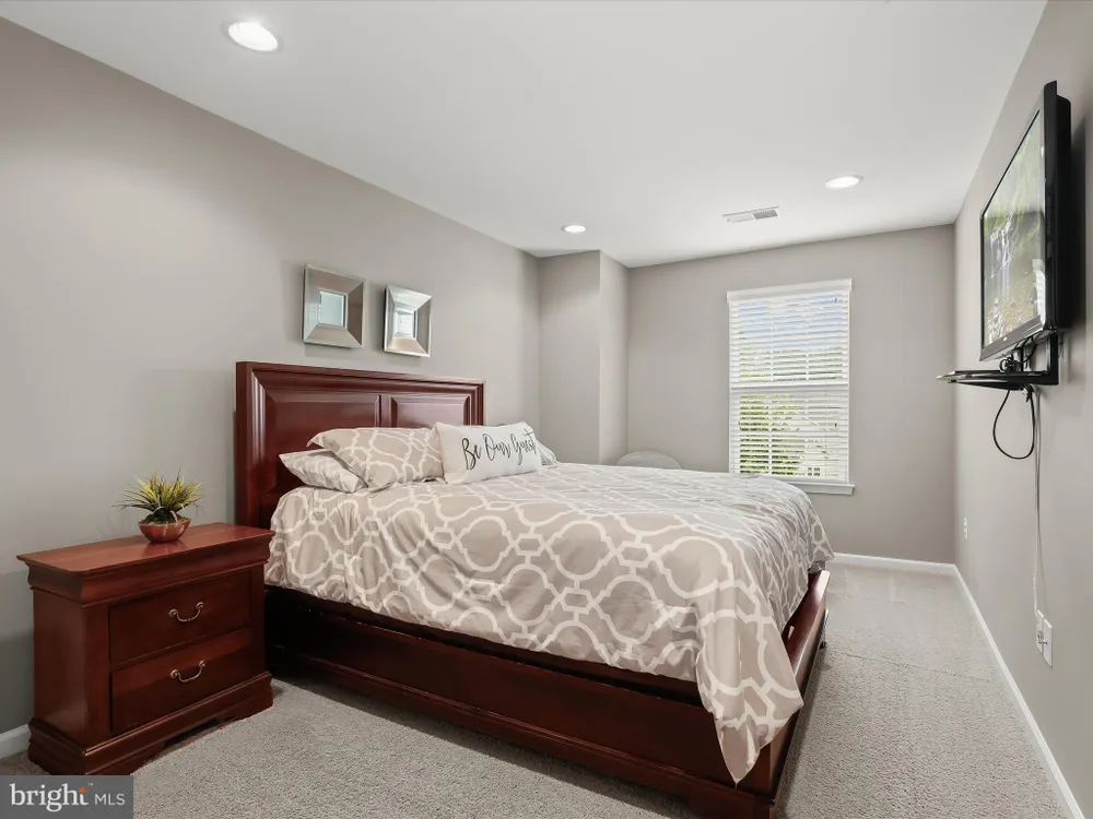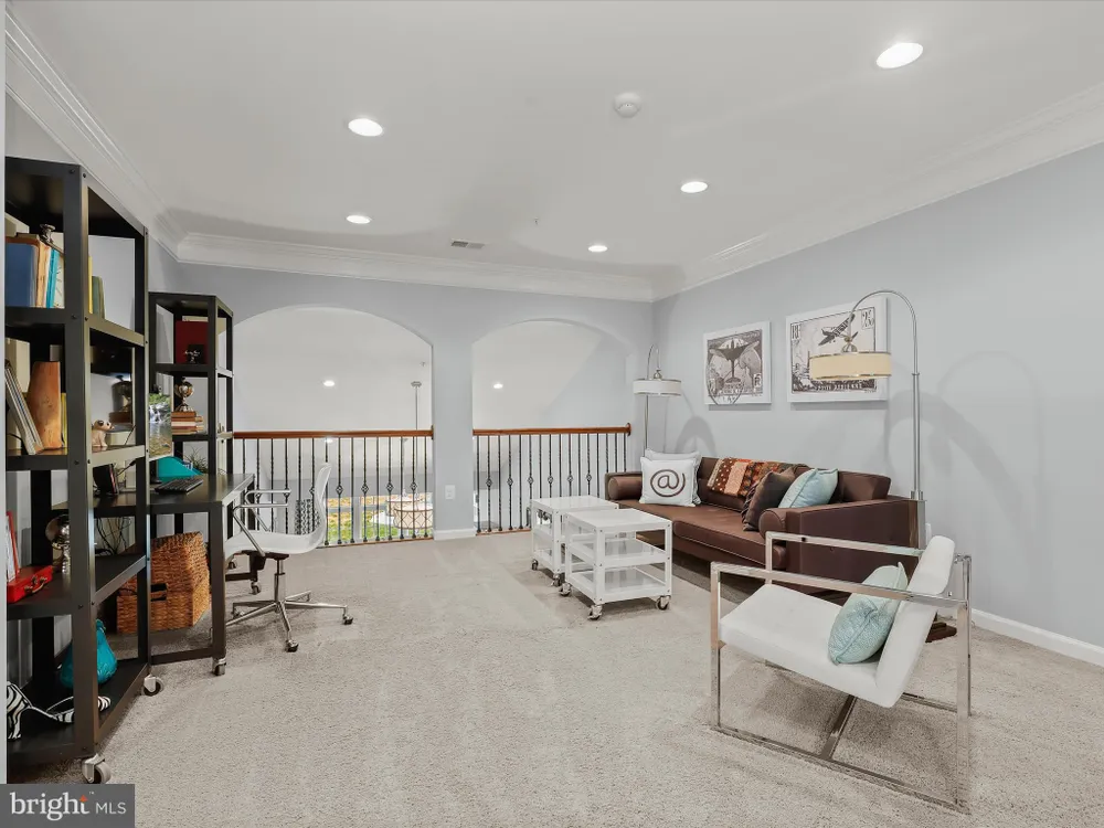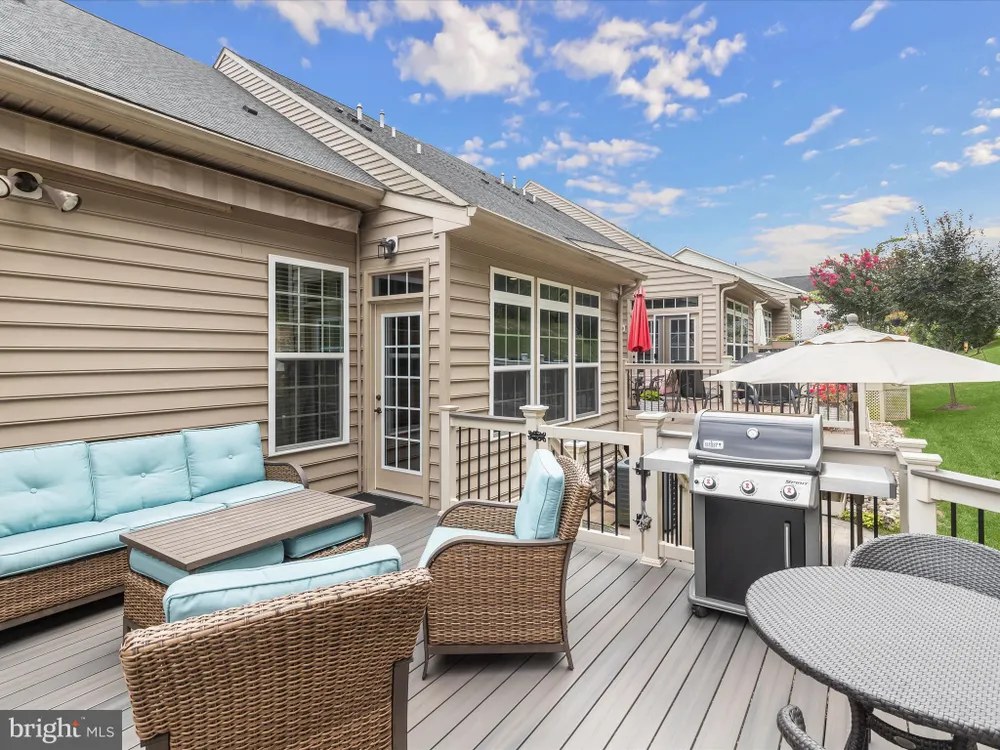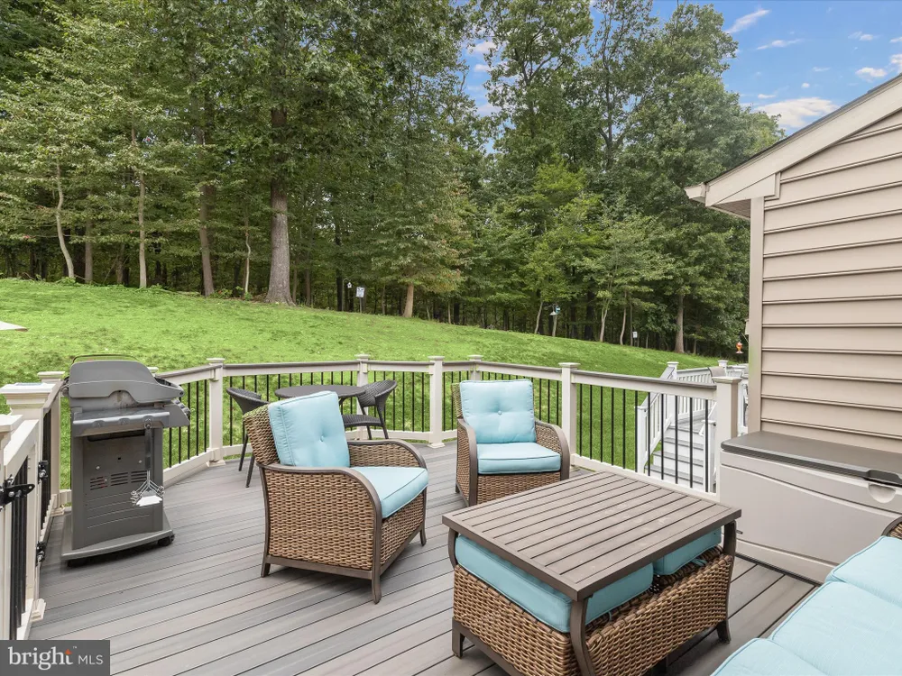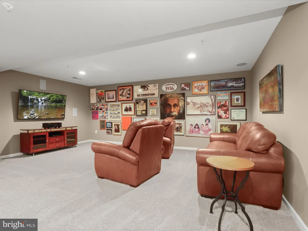 Welcome to Waverly Woods West, a premier 55+ active adult community where lifestyle, comfort, and convenience come together. This vibrant neighborhood features a spacious clubhouse with gathering areas, a fitness center, and an outdoor pool, all set against a backdrop of beautifully maintained walking trails that weave throughout the community. Situated in the newest and final set of villas built here, this elegant three-level residence offers sophistication and thoughtful upgrades throughout, and it is among the rare few backing to serene forest conservation. Meticulously maintained by its original owners, the home greets you with upgraded hardwood flooring, designer lighting, upgraded security system and refined crown molding. A graceful staircase showcases iron balusters, custom picture frame molding, and a wool runner, setting the tone for the quality within. The open-concept main level begins with a kitchen designed for both beauty and function, featuring off-white glazed cabinetry for warmth and dimension with pull-out shelving, granite counters, and two islands, one for prep and the other with a breakfast bar. Stainless steel appliances include a gas cooktop and double wall ovens, complemented by a new Italian tile backsplash installed in 2024 and a convenient pantry. Adjacent, the dining area glows beneath an upgraded tiered wood bead chandelier, flowing seamlessly into the living room with its soaring two-story vaulted ceiling. Here, two oversized drum pendant lights suspend elegantly from above, drawing the eye upward while adding warmth and contemporary style to the room. A dramatic wall of windows fills the space with natural light, and a glass door opens to the custom composite deck. The main-level primary suite offers a tranquil retreat with hardwoods added in 2024, crown molding, and a ceiling fan. The en-suite bath boasts a granite-topped double vanity, tiled shower, and a walk-in closet with custom built-ins and display cabinetry. Off the kitchen, the laundry room offers garage access and is conveniently located near a main-level half bath for guests. Upstairs, a generous loft overlooks the living area, joined by two spacious bedrooms, each with a walk-in closet and recessed lighting. A full bath with double sinks and a separate water room with the shower serves this level, along with a versatile bonus room ideal for storage or a study. The lower level is crafted for entertaining, with a custom wet bar featuring quartz counters, concealed storage for coffee or beverage stations, stainless shelving, a black granite bar sink, and two U-Line refrigerators for wine and beverages. Adjacent, a media room with surround sound further enhances the space and makes a perfect venue for at-home movie nights. This level also includes a half bath and a large storage room. Outdoor living shines with a low-maintenance composite deck framed by vinyl railings and a nearly full-length motorized awning, plus a stone patio, both with peaceful tree views. Additionally, finished two-car garage is equipped with dual Tesla chargers, while professionally tinted windows and six conveying TVs inside enhance both comfort and value. This home pairs exceptional craftsmanship with a premier setting, offering a rare opportunity to enjoy the very best of Waverly Woods West. Almost all home furnishings and accessories are available for sale - inquire thru the listing agent!