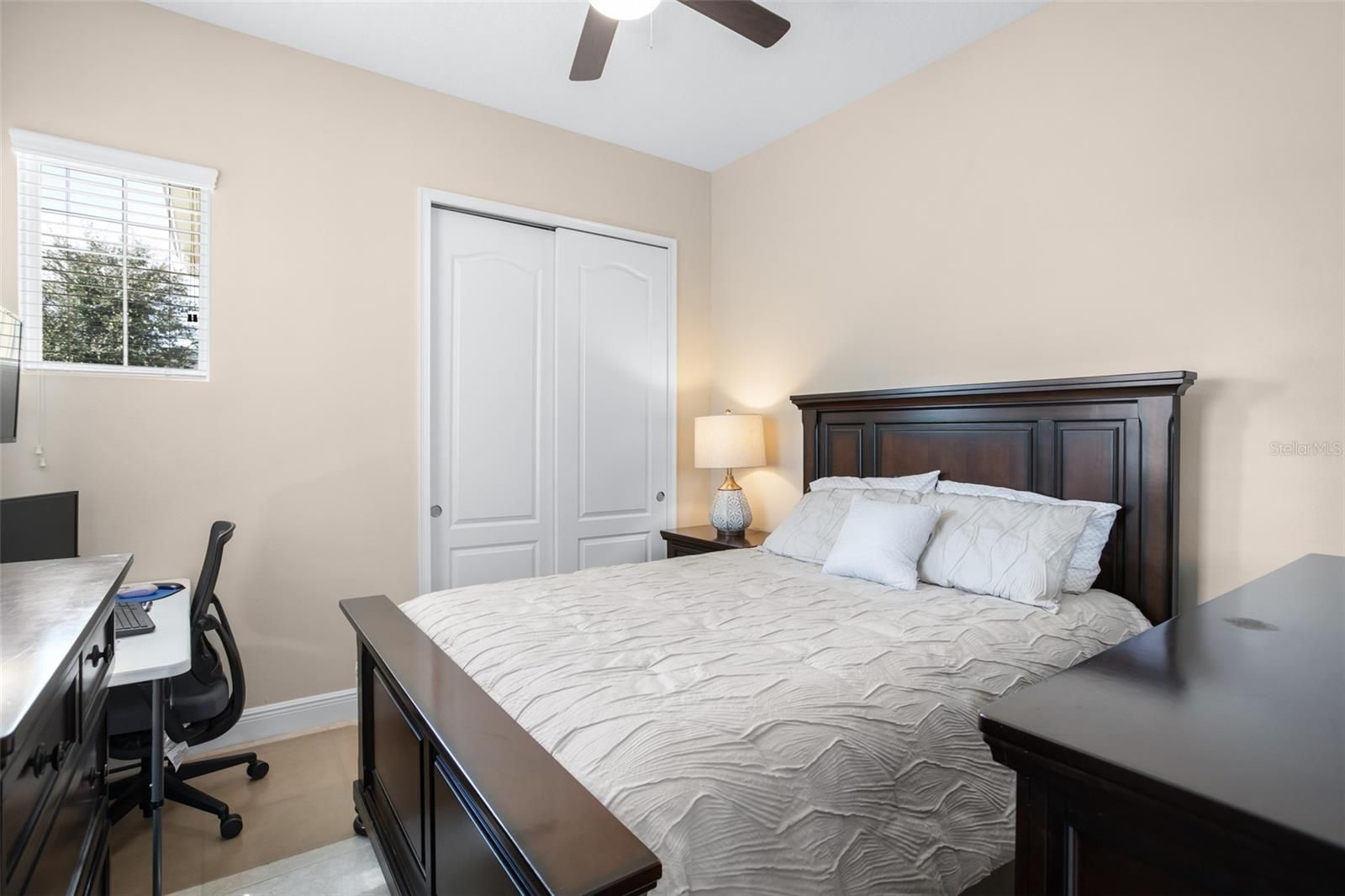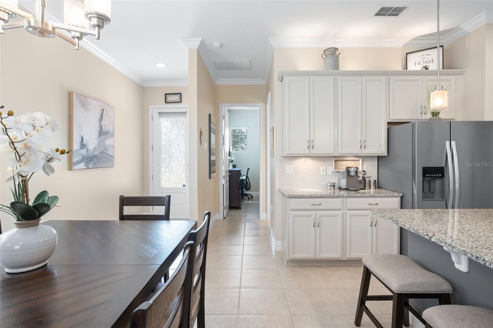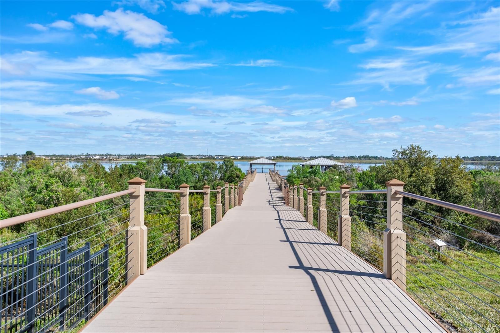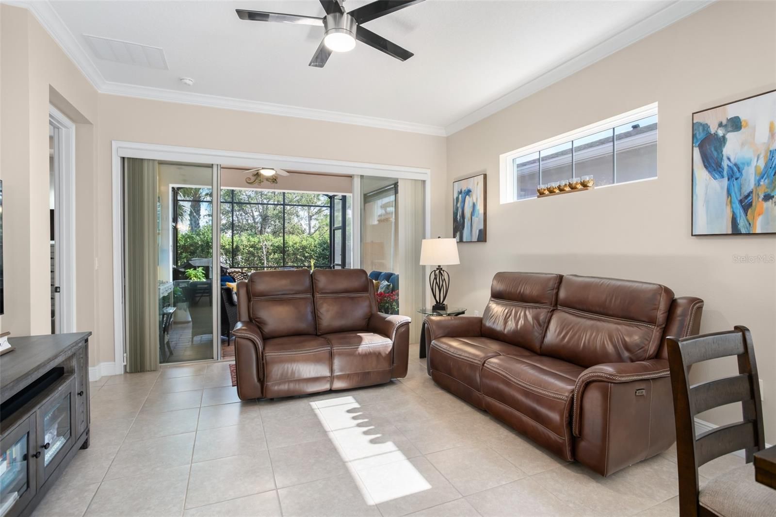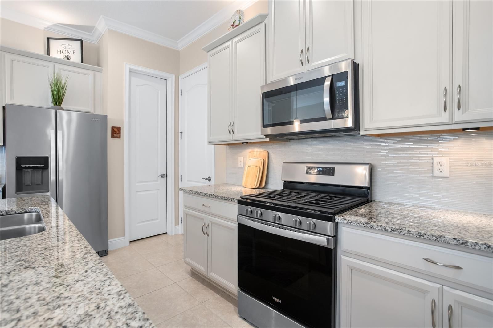 SHOWS LIKE A MODEL! Expect to be impressed with this beautifully appointed home in Twin Lakes, a Dell Webb active 55+ community. Layout boasts open common living space in the heart of the home and a split bedroom plan. Gorgeous contemporary kitchen features granite counters, island with breakfast bar, abundant raised panel cabinetry w/crown molding, under/over cabinet lighting, attractive tile backsplash, recessed and pendant lighting, and stainless Whirlpool appliances. You’ll find that the adjacent dining space is large enough to seat a crowd. And the living room, bathed in light by the clerestory window and French door sliders, makes a great gathering space. The primary suite is in the back. Your generous sized bedroom has a stylish tray ceiling and overlooks the greenery outside. The ensuite bath here features a dual sink, granite topped vanity and shower, and access to your sizable walk-in closet. Secondary bedroom and bath are tucked away in the front of the home. Your laundry room is off the kitchen, and you’ll LOVE having counter workspace and beautiful cabinetry for storage here, as well as the handy work sink. Outside, you’ll experience the WOW factor when you see that the covered paver patio has a fully screened extension – giving you ample space to enjoy fun in the sun (or shade). Other notable features here include an outlet for a wall mounted TV, ceiling fan, roll shades, and privacy hedging. Twin Lakes is a secure gated community with two amenity areas for you to take full advantage of. First, you can walk across the street to take a dip in the lakeside neighborhood pool. When you’re in the mood for more activities, there’s a waterfront amenity center 2 minutes away, where you will enjoy a clubhouse with a state-of-the-art fitness center, rooms for social activities and club gatherings, two pools (1 resort style w/hot tub, 1 lane/lap pool), and a fabulous outdoor grill area and patio bar. There are also sports courts (bball, tennis, pickleball, bocce) to keep you active and fit. Take a walk on the pier and enjoy the views of Live Oak lake or consider fishing, canoeing or kayaking. Excellent overall location – the community is about 5 minutes from your Publix & SR 192, providing easy access to essential shopping and dining venues, and 10 minutes from the Florida turnpike. This home simply SHINES, both inside and out. Come see all that it has to offer – you’ll love living here!