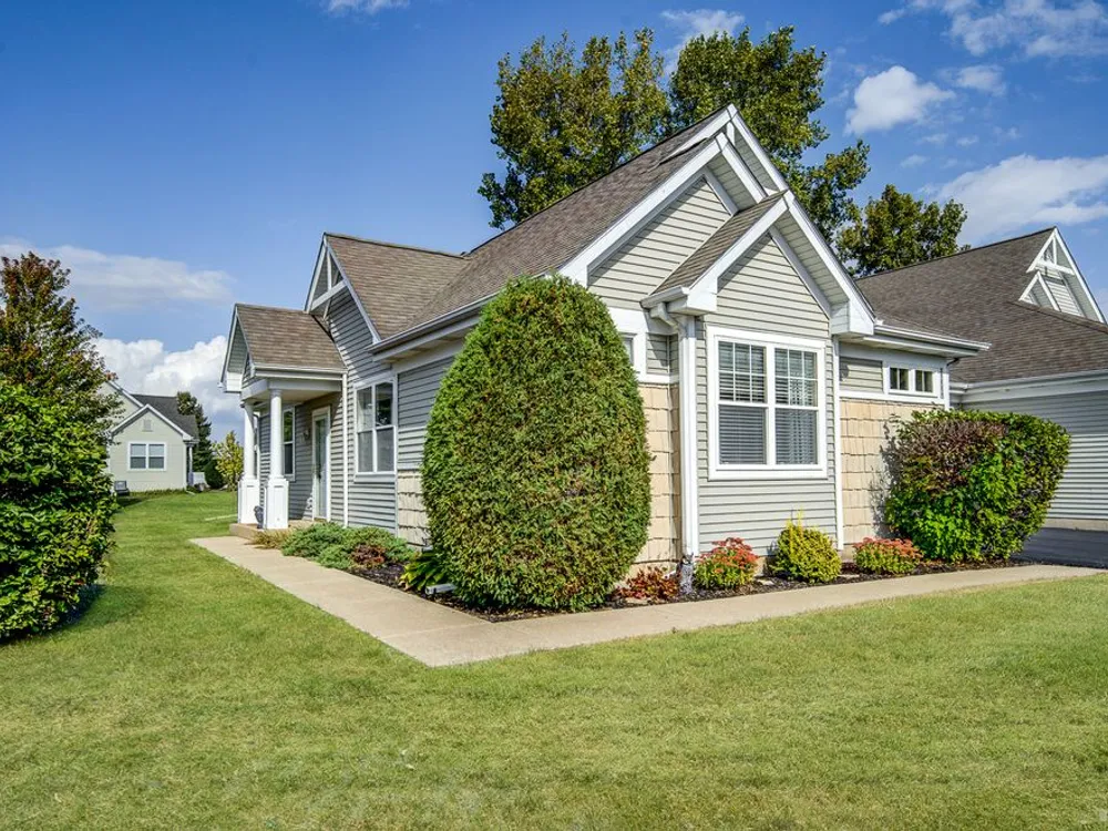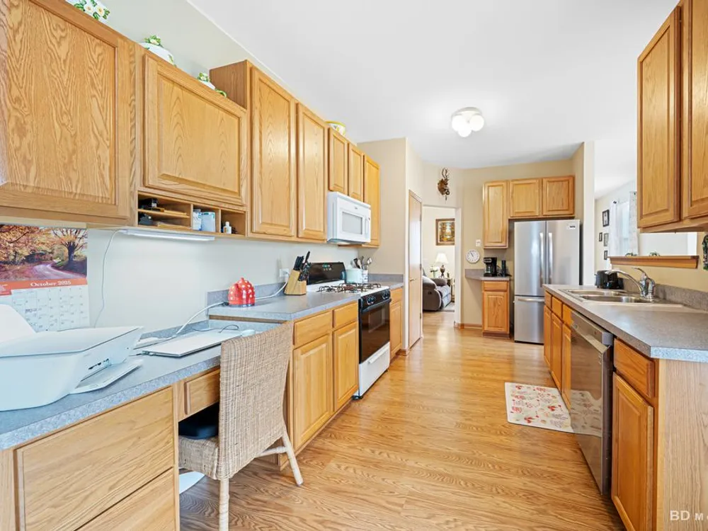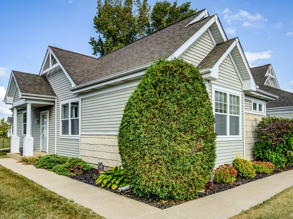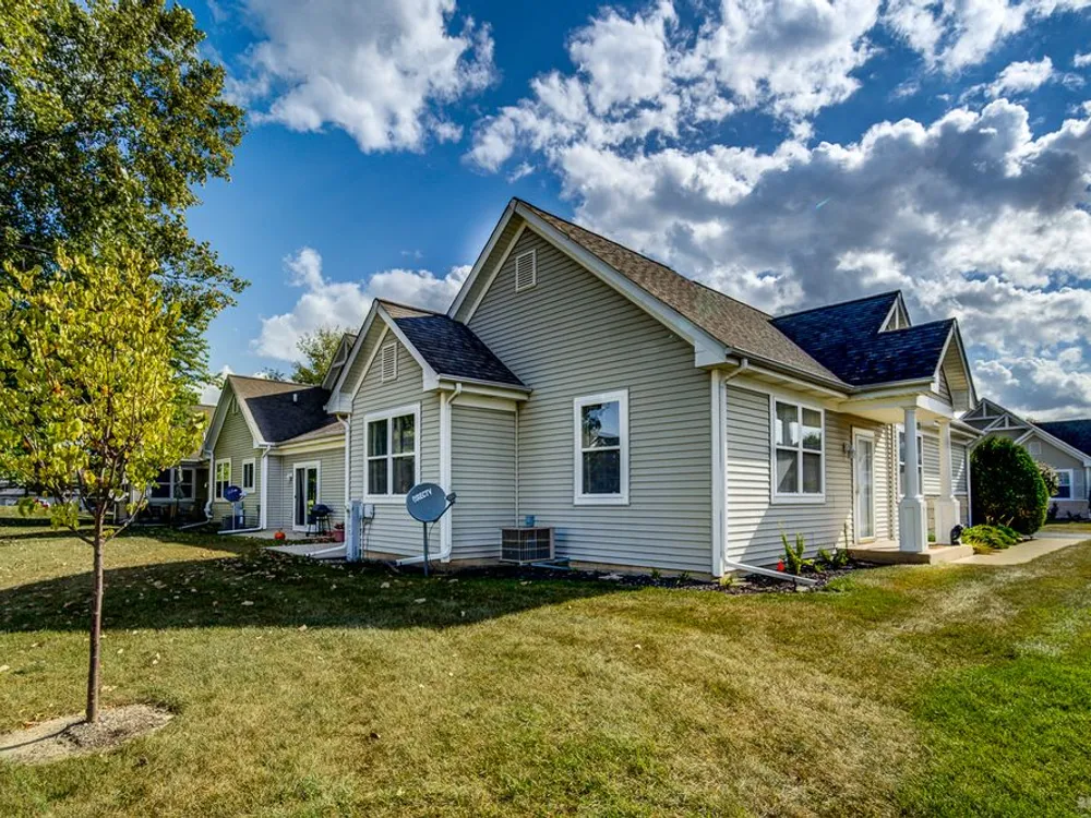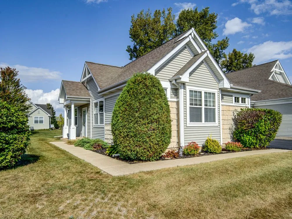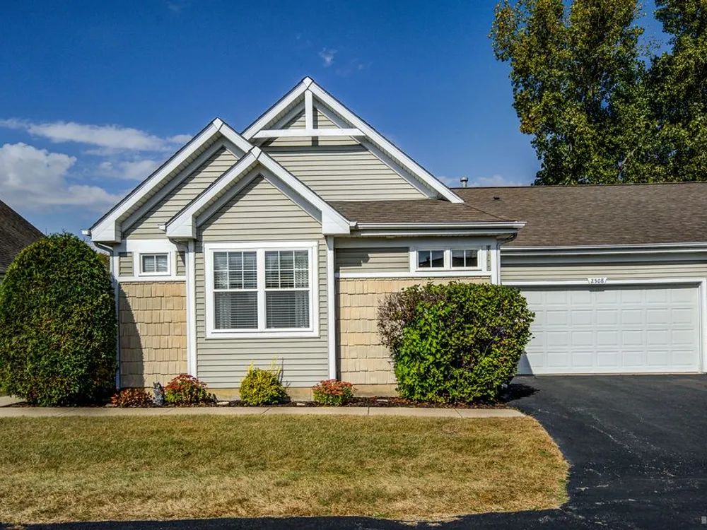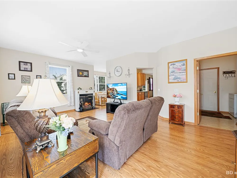 Welcome to this beautiful end-unit ranch townhome nestled in a highly sought-after gated 55+ community. Designed for comfort and convenience, this home boasts a well-appointed kitchen with 42-inch oak cabinets, a planning desk, pantry closet, and a spacious breakfast area with direct access to the concrete patio and the beautifully landscaped yard. A formal dining room with gleaming wood laminate floors opens to the sun-filled living room, complete with an electric fireplace for cozy evenings. The spacious master suite features a walk-in closet and a private bath with a large walk-in shower with built-in bench and a linen closet for added storage. A convenient laundry room with cabinetry, plus a two-car attached garage, make everyday living easy. Offering style, comfort, and a maintenance-free lifestyle, this move-in-ready home is the perfect choice for relaxed living in a vibrant 55+ community.