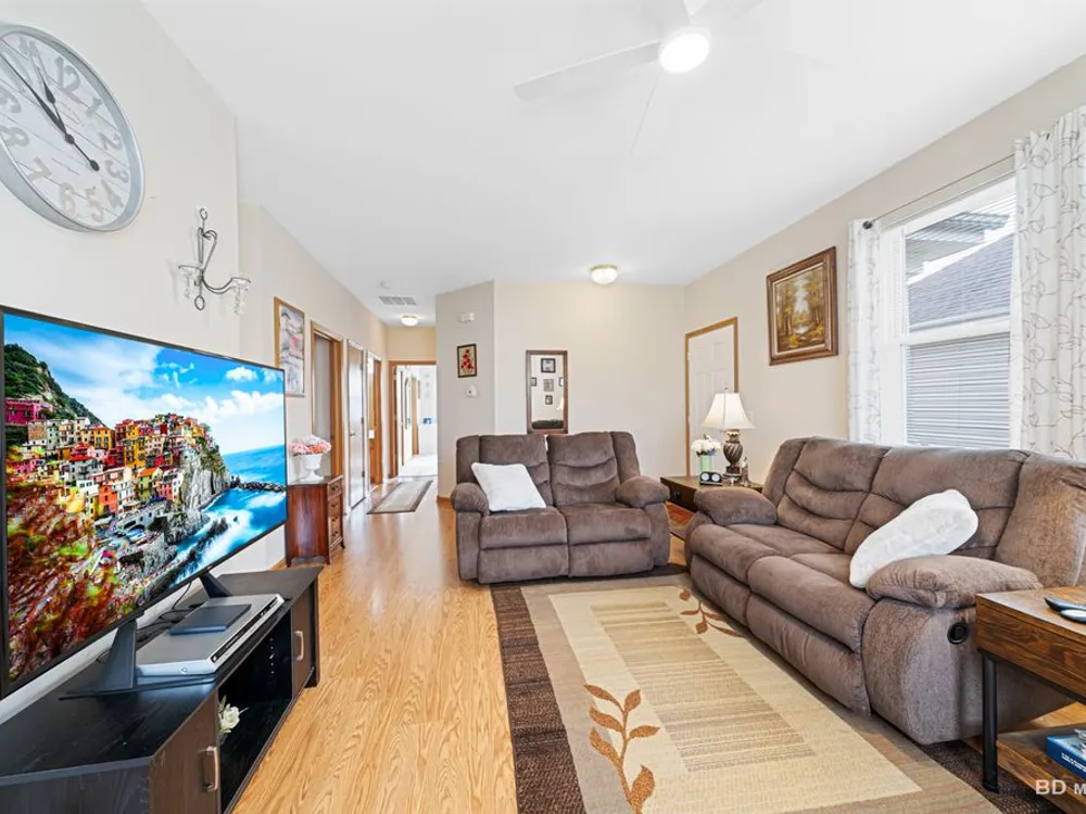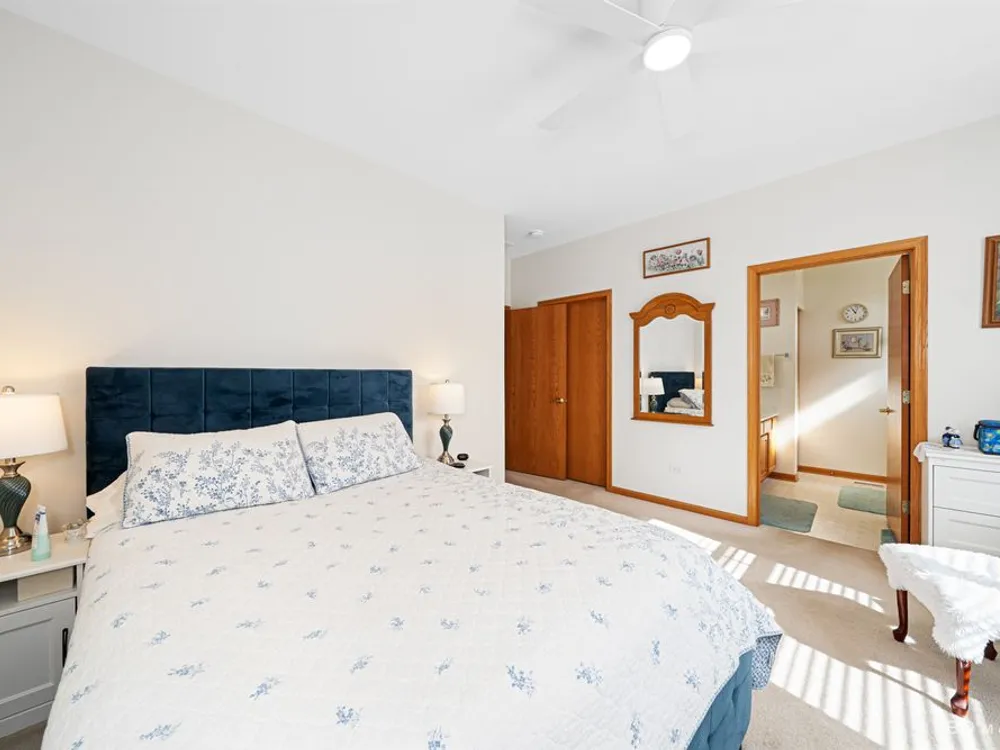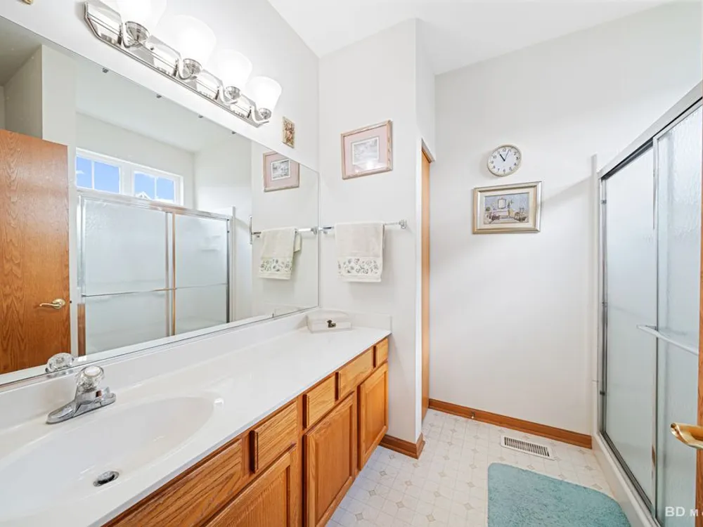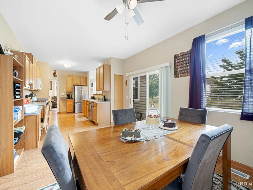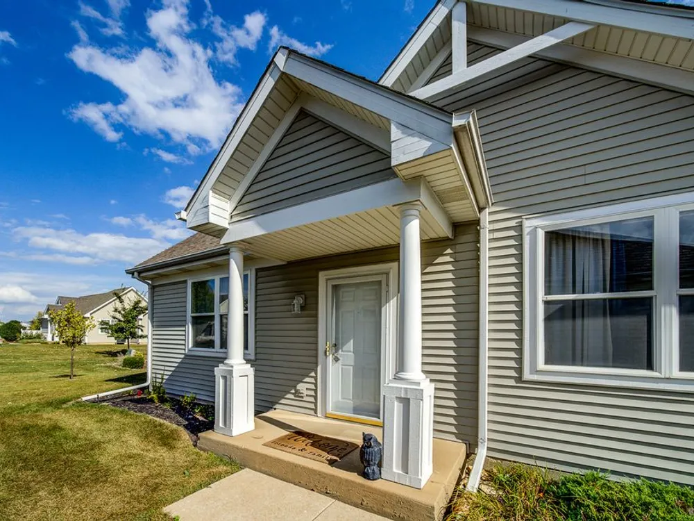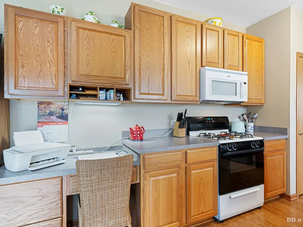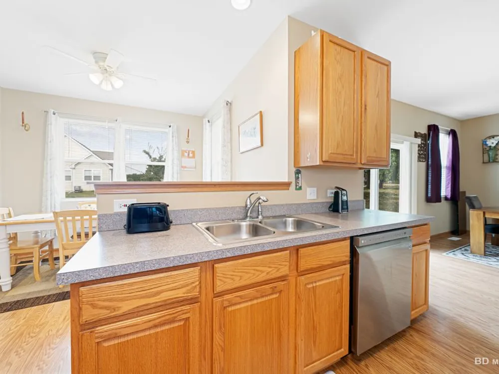 Welcome to this beautiful end-unit ranch townhome nestled in a highly sought-after gated 55+ community. Designed for comfort and convenience, this home boasts a well-appointed kitchen with 42-inch oak cabinets, a planning desk, pantry closet, and a spacious breakfast area with direct access to the concrete patio and the beautifully landscaped yard. A formal dining room with gleaming wood laminate floors opens to the sun-filled living room, complete with an electric fireplace for cozy evenings. The spacious master suite features a walk-in closet and a private bath with a large walk-in shower with built-in bench and a linen closet for added storage. A convenient laundry room with cabinetry, plus a two-car attached garage, make everyday living easy. Offering style, comfort, and a maintenance-free lifestyle, this move-in-ready home is the perfect choice for relaxed living in a vibrant 55+ community.