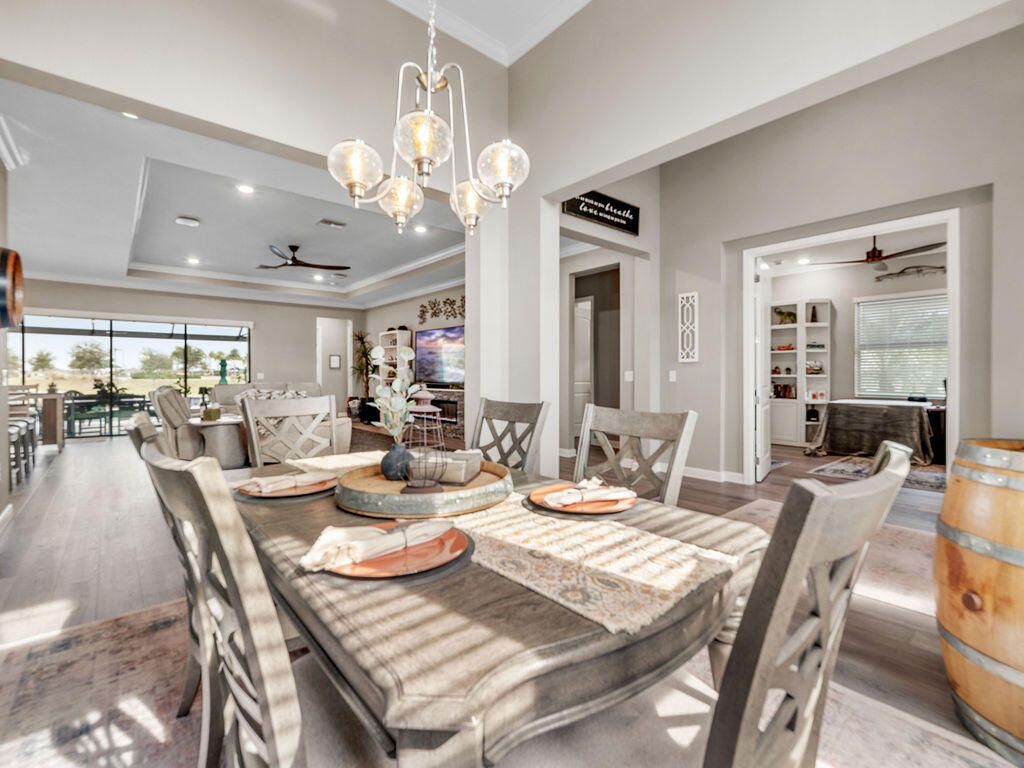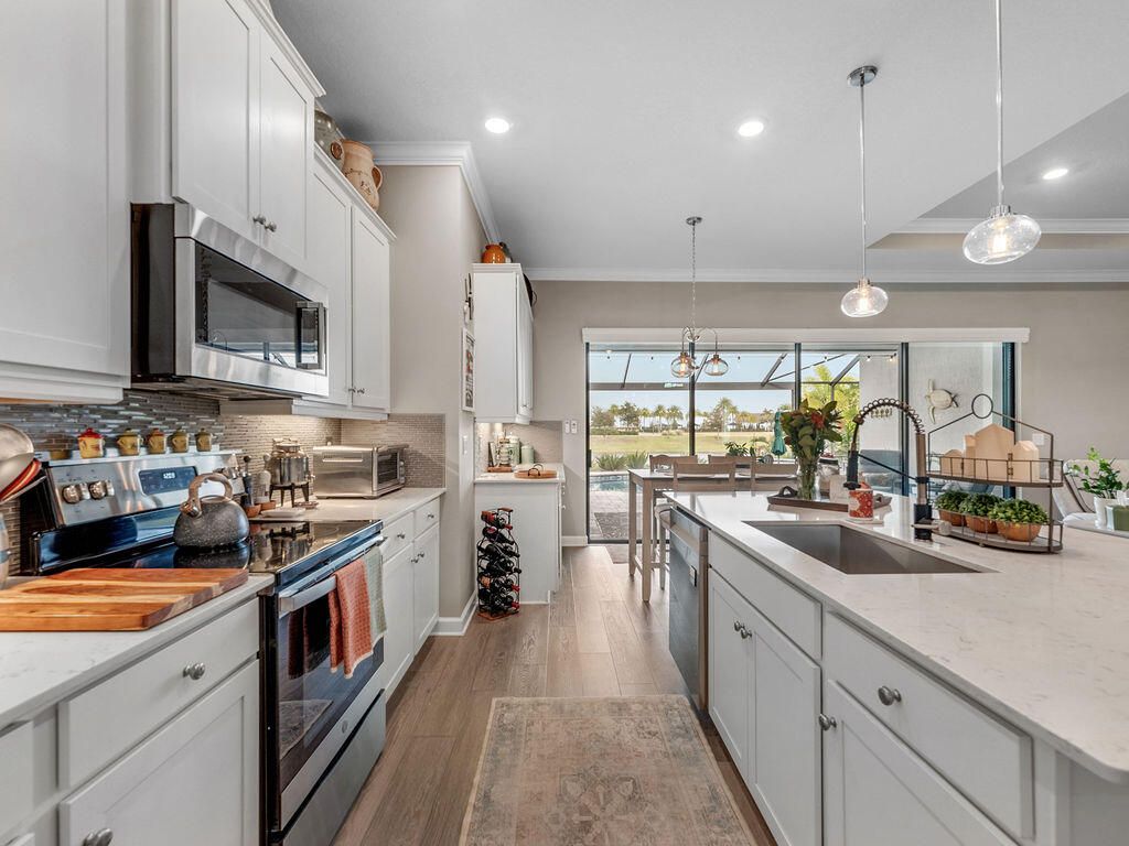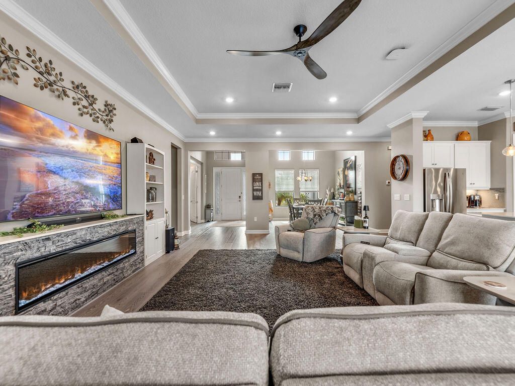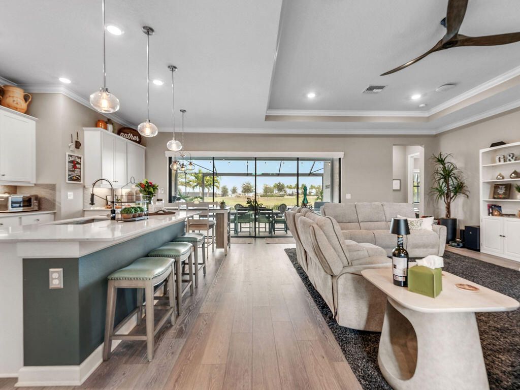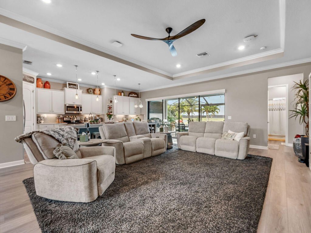 Look at this nearly new 4 Bedroom lakefront home in a premier 55+ Central Viera community! It features a private heated pool and spa, 3-car split garage and double driveway. Enjoy the open, light filled floorplan with spacious living areas and 3 full bathrooms. This house is storm ready with accordion and electric shutter and paid off solar panels. The community provides resort style amenities including clubhouse, fitness center, cafe, movie theater, pickleball, tennis, and a jam packed social calendar with non stop events and live music. Bring your golf cart and never leave home!