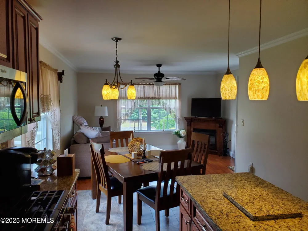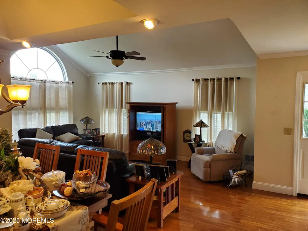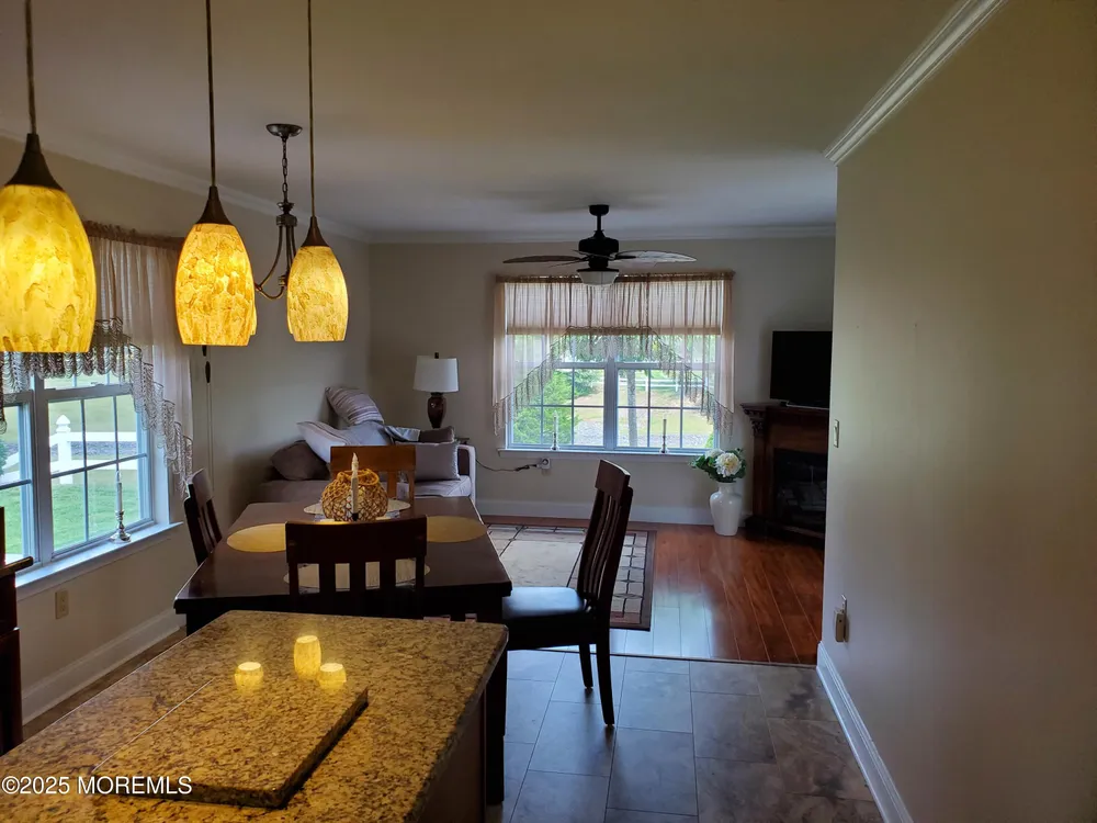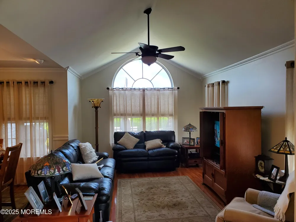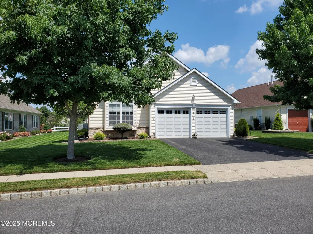 Welcome to the Outstanding Lake Ridge 55+ Adult Gated Community! This Beautiful Home is the opportunity you do not want to miss! This is One Floor Living at its Finest. From the moment you arrive Home your Pride of Ownership will begin with Superb Curb Appeal from Meticulously Maintained Lush Green Lawn, Bushes & Trees to the Super Clean Exterior & Double Wide 2 Car Garage & Driveway! The Entrance is Bright and Opens to Large L-Shaped Dining Room and Living Room with Cathedral Ceiling. Gleaming Wide Plank Hardwood Flooring throughout! The Kitchen is wonderfully equipped with all SS Appliances, Granite Countertops, Center Island and Dining Area plus Sitting Area that leads to Backyard Paver Patio! The Primary Bedroom is Large & Bright with High Ceiling, 2 Large Walk-In Closets & Private En Suite Bathroom w/Double Sinks, Jacuzzi Tub plus Shower Stall! Second Bedroom is Spacious also with HW Flooring, Closet & Ceiling Fan. Second Bathroom is Tiled with Shower over Tub, again Super Clean! Full Laundry & Utility Room off Hallway. Many Details, perfect Crown Molding throughout, Tiled Kitchen Floor, Roof 4 Years Young, Water Heater new 2022, Central Air, New Pull Down Attic Ladder to extra Large Attic over Garage. Low Taxes & HOA Fees. Many Amenities! Indoor Heated Pool, Outdoor Pool, Ballroom, Library, Billiard Room, Full Gym, Pickleball! Community Bus!! And Even More. You got to see it and be Ready to Enjoy it All right here at Lake Ridge Community!!