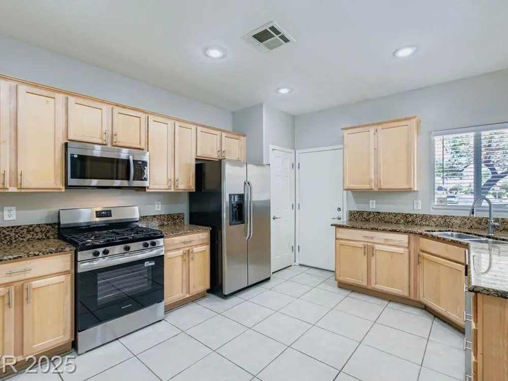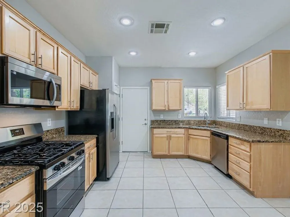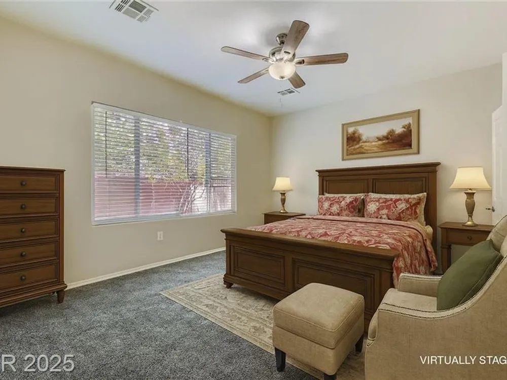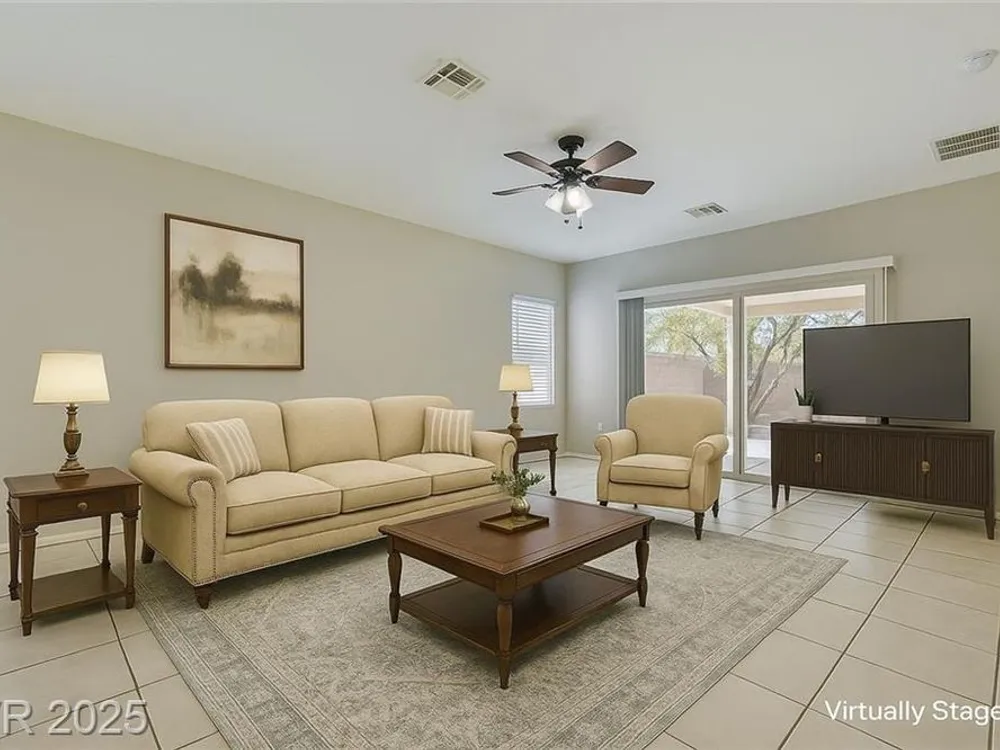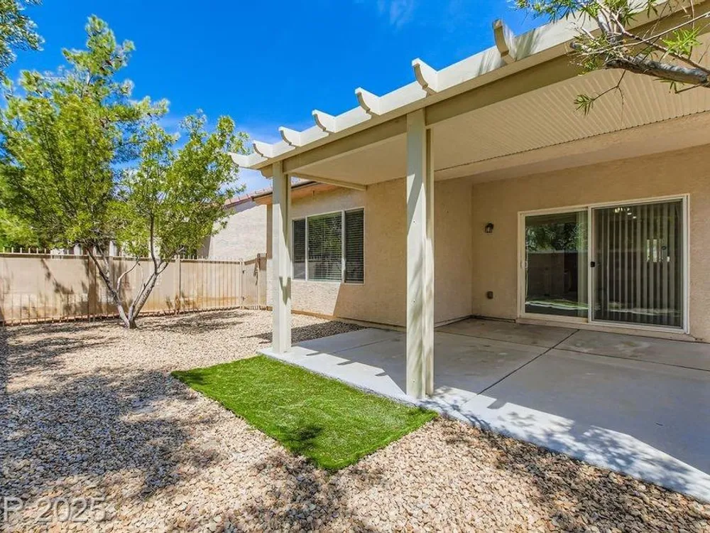 Enjoy resort-style living in this charming 2-bedroom home located in the desirable 55+ community of Sun City Aliante. Just minutes from the Aliante Casino and with quick access to the 215 Beltway, this home offers convenience and comfort. Inside, you’ll find tile flooring in the main living areas, new carpet in the bedrooms, blinds, fresh two-tone paint, and ceiling fans throughout, and a bright, open layout. The kitchen features sleek granite countertops, new stainless steel appliances, and ample cabinet space. Step outside to the extended covered patio and enjoy the beautifully landscaped, low-maintenance fenced backyard or enjoy the welcoming courtyard in the frontyard. As a Sun City Aliante resident, you’ll have access to exceptional community amenities including a clubhouse, fitness center, pool, golf course, tennis, and a variety of social activities.