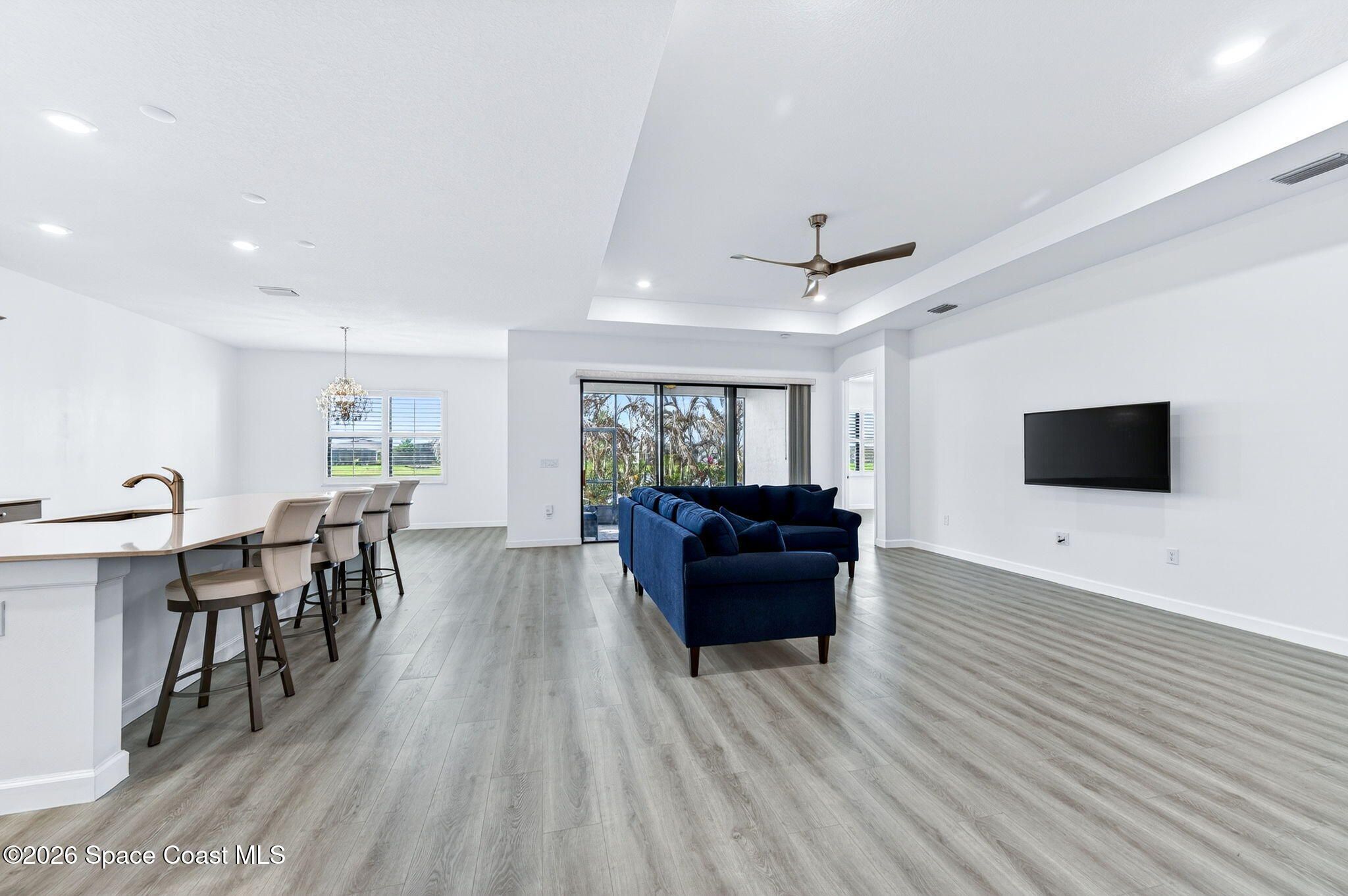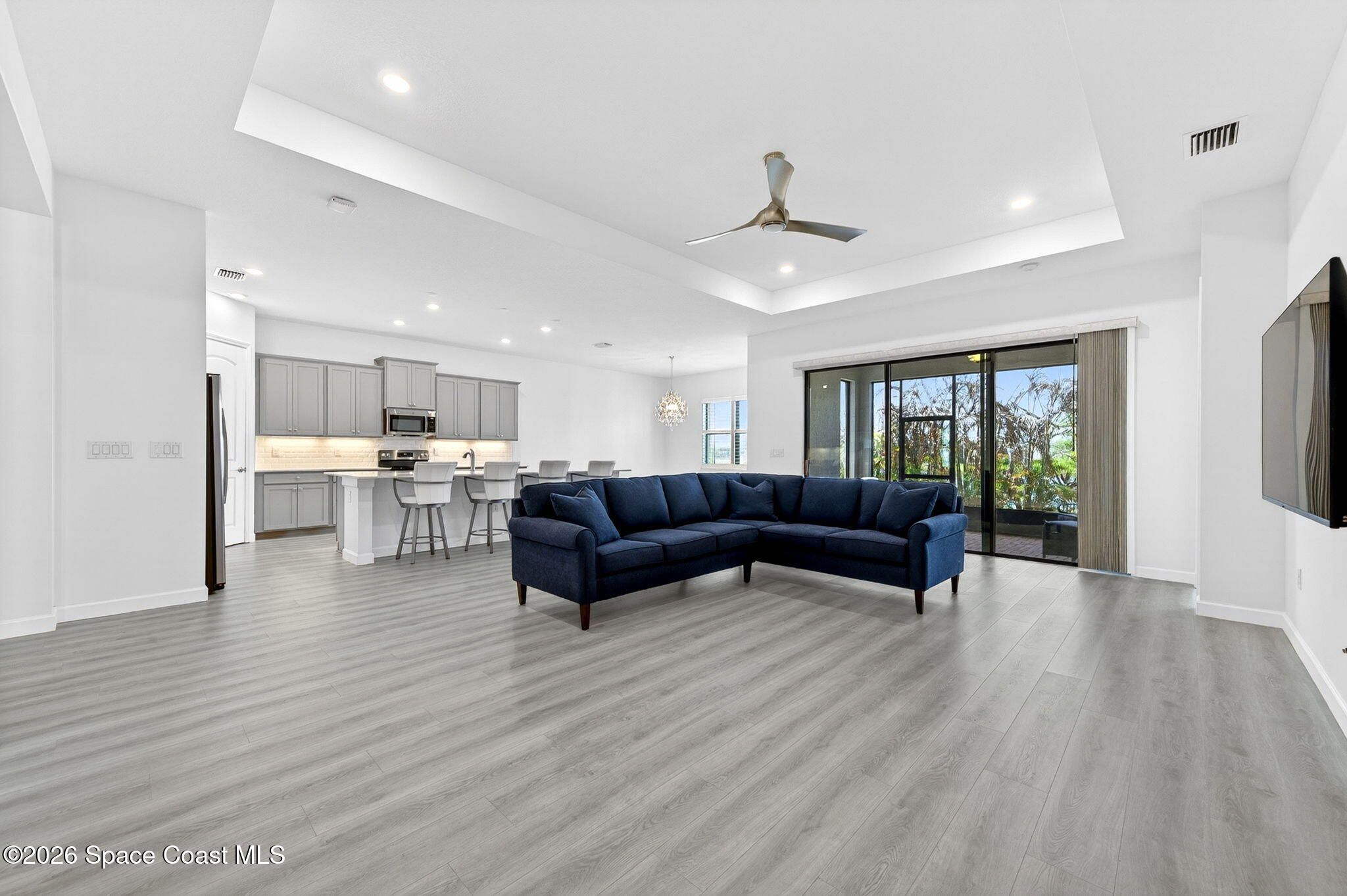 Experience resort-style living in the highly sought-after 55+ gated community of Bridgewater. This 3-bedroom, 3-bath waterfront home offers a functional layout and quality finishes, along with a desirable three-car garage, double door entry, and high ceilings. The main living area is open and practical, with the kitchen centrally located to connect the living and dining spaces, making it easy to stay engaged whether hosting or going about daily routines. Spacious living and dining areas provide plenty of natural light. A versatile flex space can be used as a home office, media room, or 4th bedroom. Sliding glass doors lead to a screened patio overlooking the water, creating a comfortable outdoor space to relax and unwind. Enjoy the ease of a low-maintenance community designed for stress-free living. Ideally located near shopping, dining, golf, beaches, airports, and area attractions, this home offers comfort, space, and an easy Florida lifestyle.