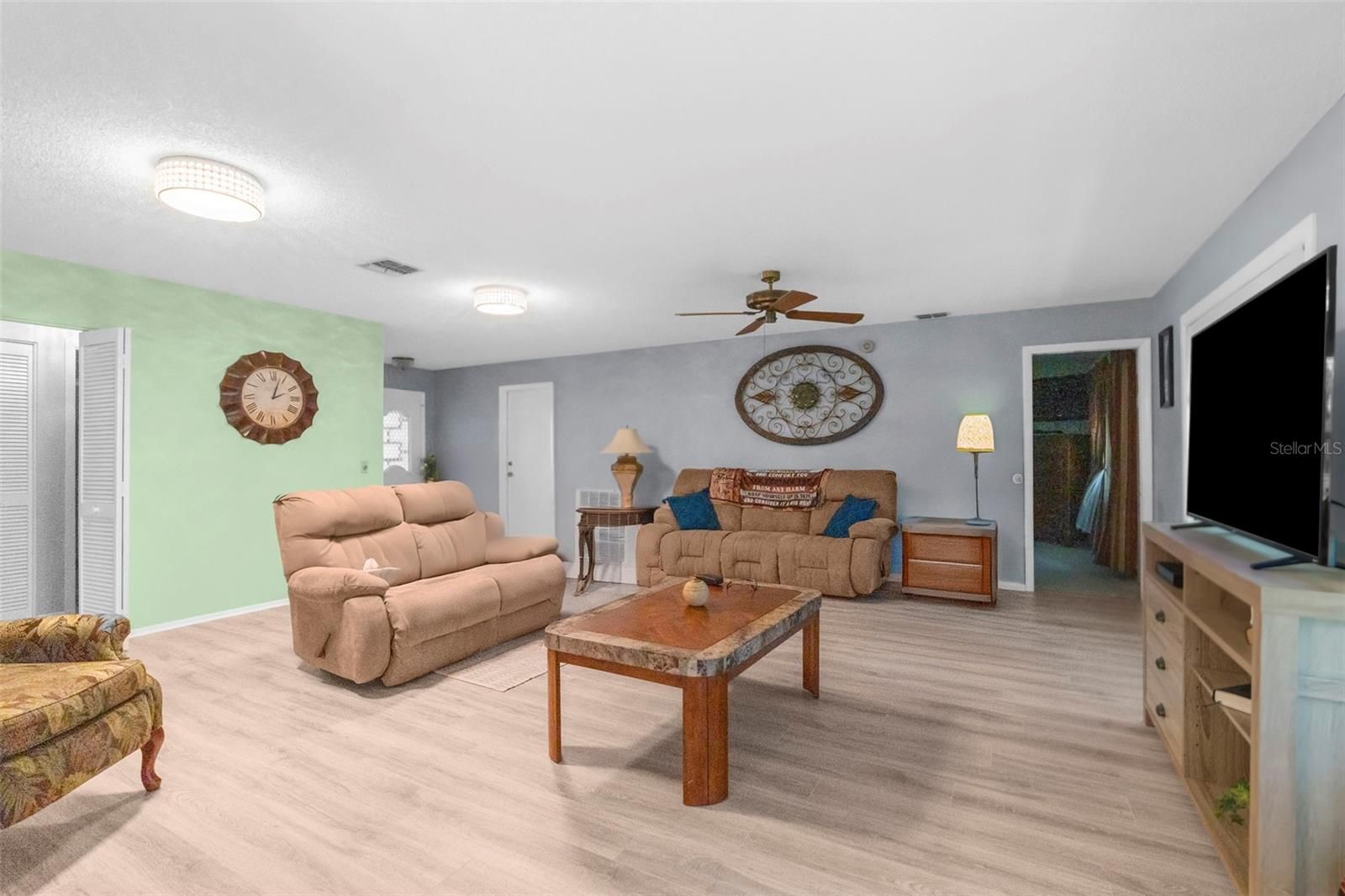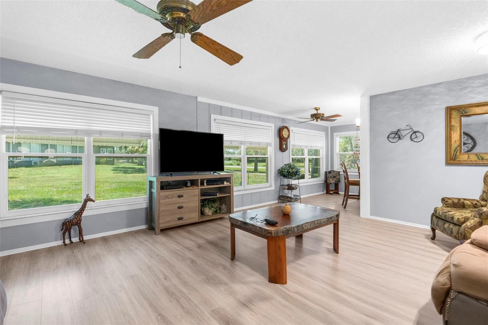 Welcome to this beautifully maintained 2 bedroom, 2 bathroom, 1,462 sq. ft. home located on a desirable corner lot in the highly sought-after 55+ community of Timber Pines. This home offers modern updates including a new roof (2019), energy-efficient windows (2018) with 3M UV protection film, and a new AC system (2018) with air handlers equipped with a UV-C light designed to disinfect the air and surfaces within the HVAC system, reducing bacteria, viruses, and mold for healthier indoor air quality. Inside, you'll love the spacious open floor plan featuring granite countertops, laminate flooring in the main living areas, tile in the kitchen and bathrooms, and carpeted bedrooms for comfort. Timber Pines is a gated, golf course community offering resort-style amenities such as multiple golf courses, pools, tennis, pickleball, fitness centers, and endless activities. Perfect for those seeking an active lifestyle in a secure and vibrant neighborhood, this home combines comfort, convenience, and peace of mind. Don't miss the chance to own this move-in-ready home in one of the most desirable 55+ communities in Florida!