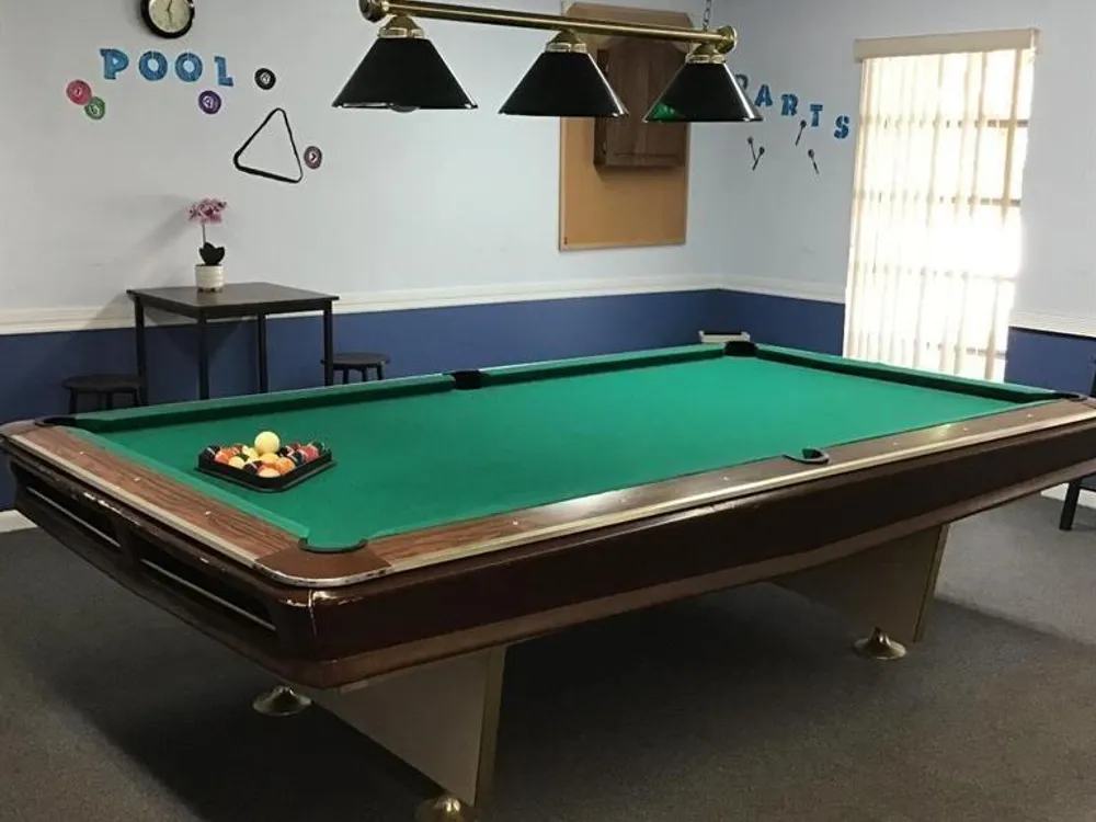 - Billiard Room, Clubhouse, Laundry, Community Room, Storage, Picnic Area, Pool, Shuffleboard, Street Lights