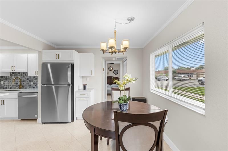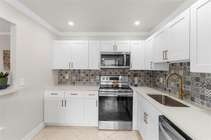 Great Location! been offered partially furnished/turn key! Simply Charming 1 bed /1 .5bath villa beautifully updated features Stainless Steel Appliances, new shaker-style kitchen with quartz countertops a Brand-New Laundry machines, Impact windows and a New Solid front door. The interior boasts great floorplan, offering comfort and style. including an enclosed patio with AC, perfect for relaxation or entertaining. Enjoy the convenience of parking one step from your back door. This property is a MUST-SEE! Kings Point is renowned for its resort-style 55+ community with three clubhouses, pools, two restaurants, theater & live shows, classes and more, located just minutes to nature preserves, famous Atlantic Ave.Maintenance $700.00 plus $310.00 until 12/31/25 for Roof Assessment)