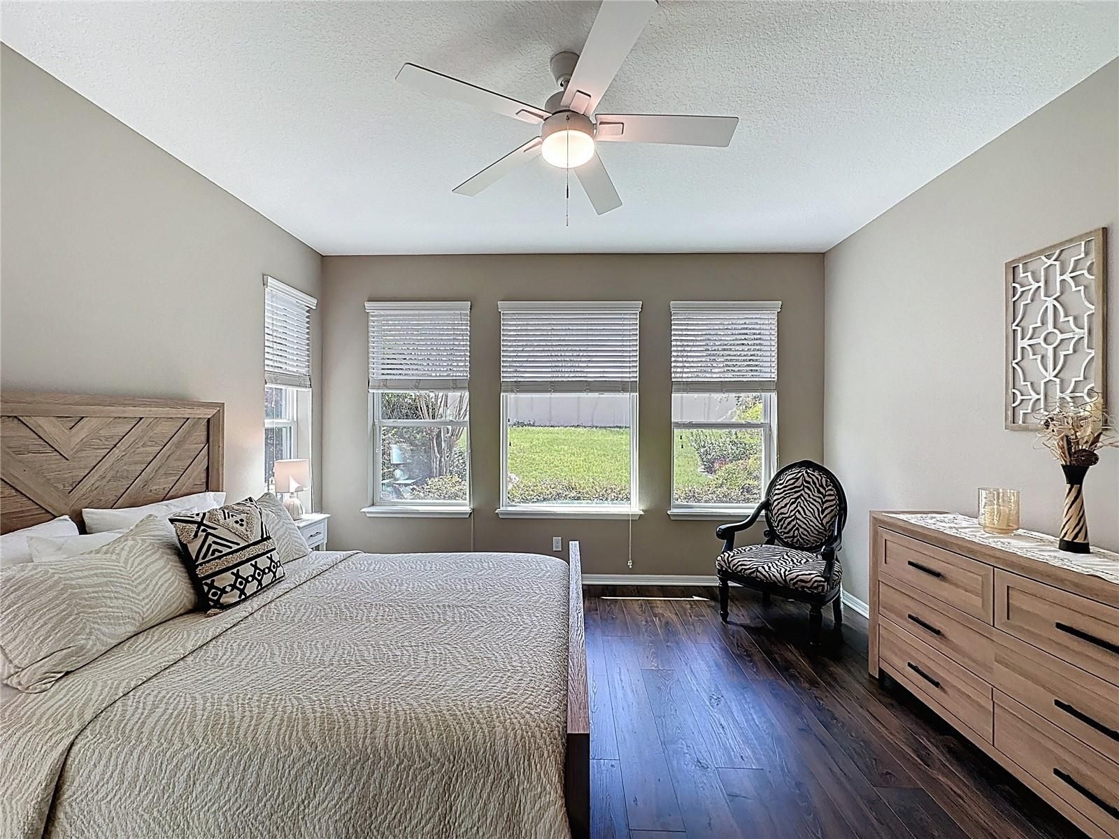 - Ceiling Fan(s), Open Floorplan, Solid-Wood Cabinets, Split Bedrooms, Stone Counters, Walk-In Closet(s), Window Treatments