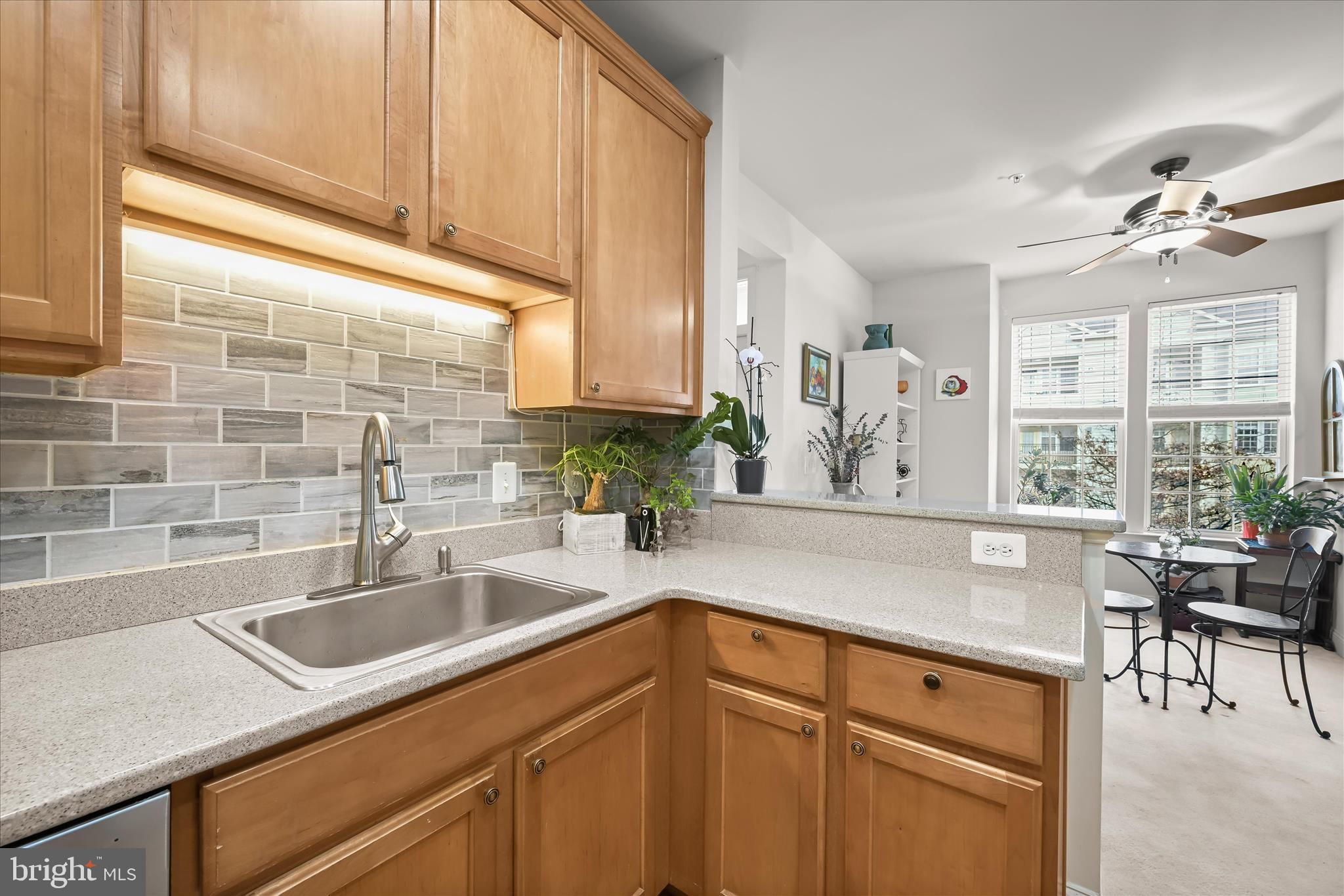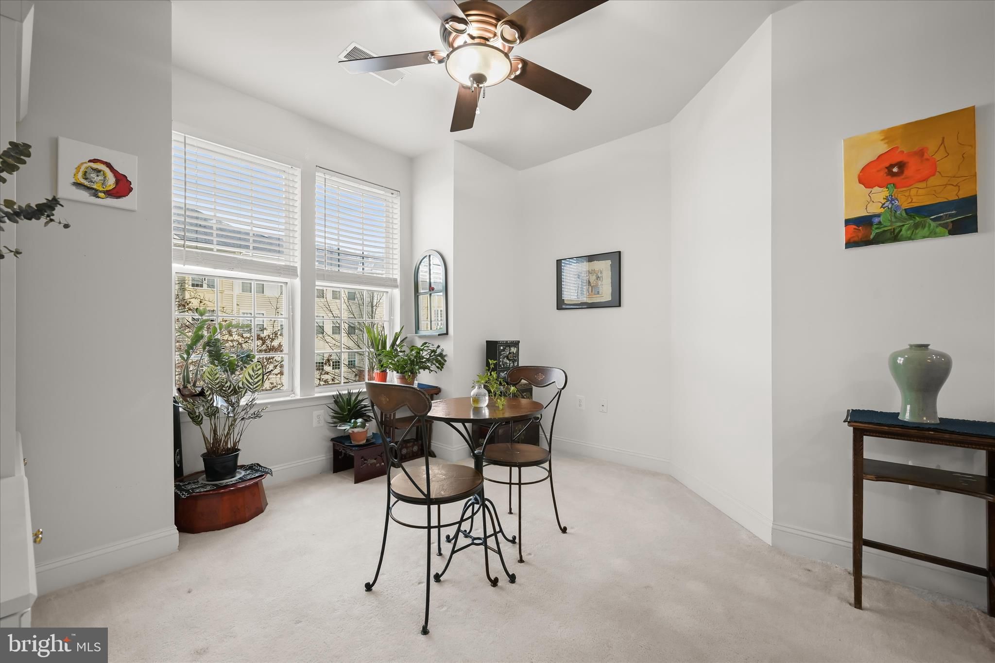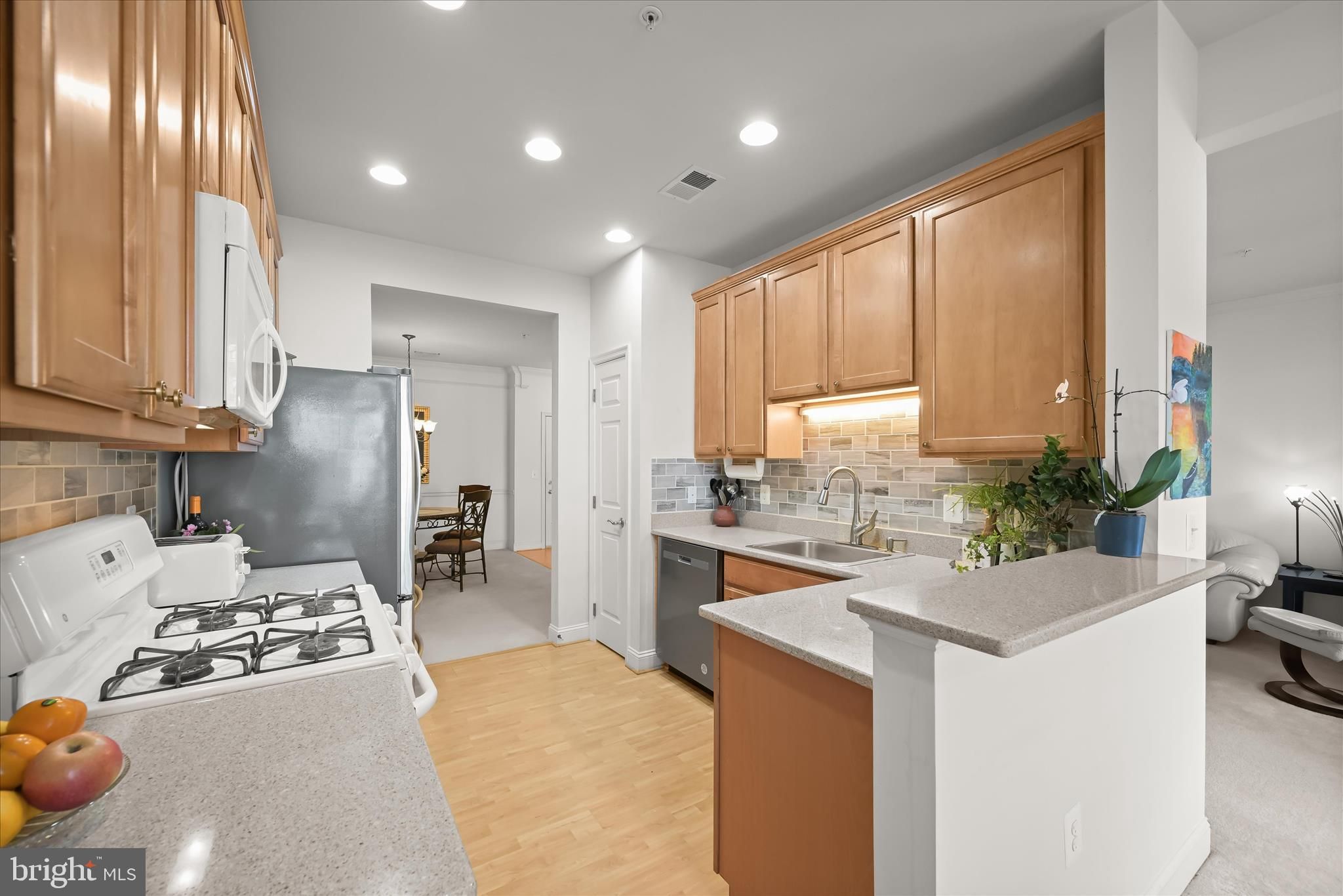Beautifully appointed condominium nestled in the desirable Ellicott Hills area of Ellicott City. Step inside this two-bedroom, two-bath residence and be welcomed by a formal dining area showcasing plush carpeting, classic chair railing, and intricate double crown molding, perfect for elegant entertaining. The living room continues the refined aesthetic with crown molding, plush carpet, and direct access to a private balcony, ideal for morning coffee or evening relaxation. The kitchen is thoughtfully designed with 42” cabinetry, ceramic tile backsplash, pull-out drawers, a pantry, stainless steel appliances, and Corian countertops. A cozy breakfast area features custom blinds and plush carpeting, creating a comfortable everyday dining space. Retreat to the primary bedroom suite offering high ceilings, abundant natural light, and a spacious double-door closet. The en-suite bath includes a dressing vanity area and a walk-in shower. An additional bedroom and a full hall bath complete the main level. Residents enjoy an array of community amenities, including a fitness center, swimming pool, tennis courts, and clubhouse. Convenient access to major commuter routes such as US-40, US-29, and I-70 allows for easy travel to The Mall in Columbia, Merriweather Post Pavilion, and a wide variety of shopping, dining, and entertainment options.