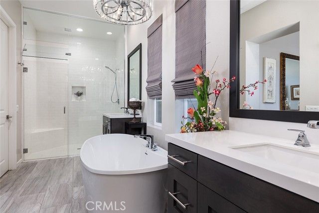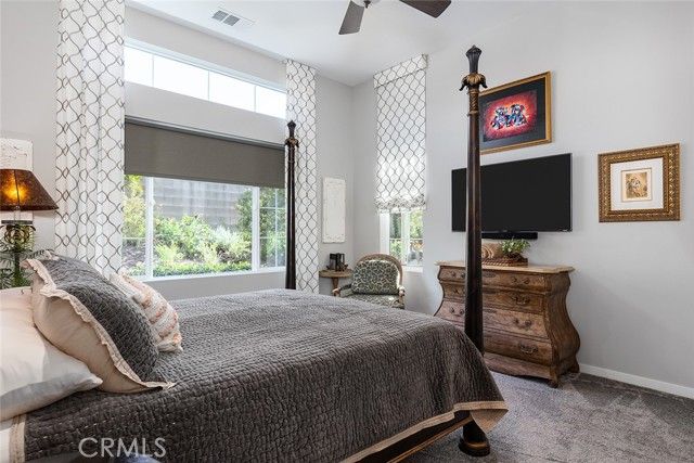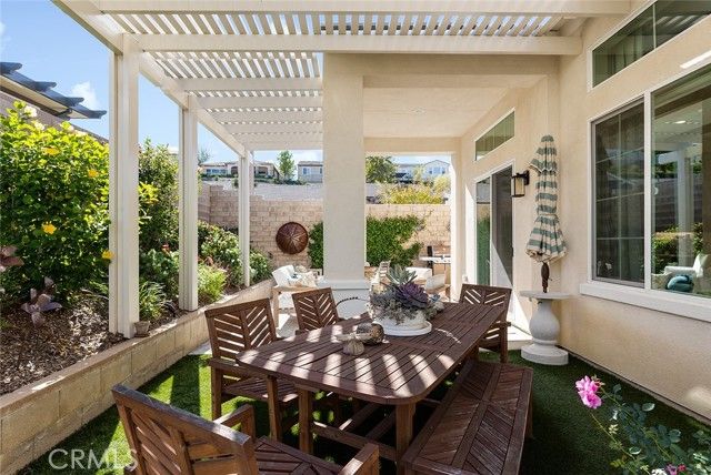 Set on a premier corner lot in the highly desirable Verano at Aliento community of Santa Clarita, this stunning single-level residence combines sophisticated design, luxury upgrades, and effortless indoor-outdoor living! The open-concept floor plan features two private bedroom suites plus an elegant guest powder room. The gourmet kitchen is a chef’s dream—upgraded with GE Monogram stainless steel appliances, including a double oven, four-burner gas cooktop with griddle, quartz countertops with matching backsplash, and an artisan Chef Pro sink. Stacked upper cabinets with glass doors, under-cabinet lighting, a butler’s pantry, and a walk-in pantry with custom built-ins provide exceptional storage. A spacious quartz center island anchors the kitchen, offering the perfect gathering place for cooking and conversation. The great room showcases dark wood-beamed ceilings, a gas fireplace and custom built-in cabinetry, and transitions seamlessly through a two-panel sliding glass door to a very private professionally landscaped backyard—ideal for entertaining or relaxing in style! Extra outdoor details include professionally installed Trimlights, drip irrigation and two separate gas lines for a firepit and BBQ. Nestled adjacent to the Golden Valley Open Space, Verano at Aliento celebrates the best of the California lifestyle with miles of scenic trails, parks, and walking paths. This double-gated, age-restricted community offers residents access to two resort-style community centers, featuring pools, spas, fitness facilities, and clubhouses. This is California living at its finest—welcome home to Verano at Aliento!