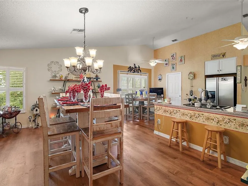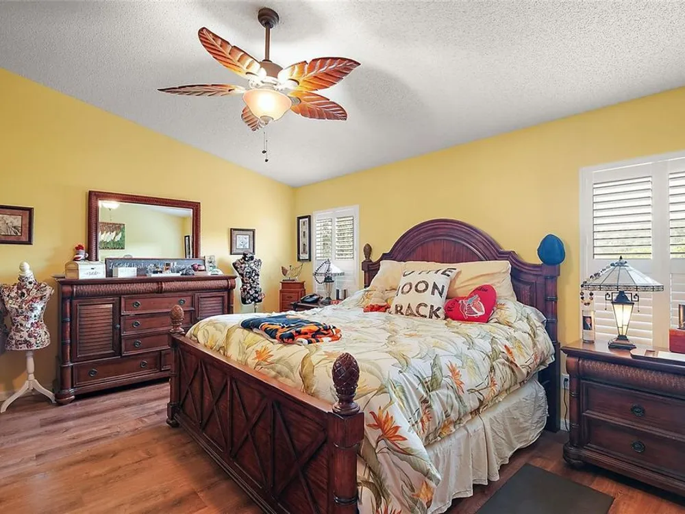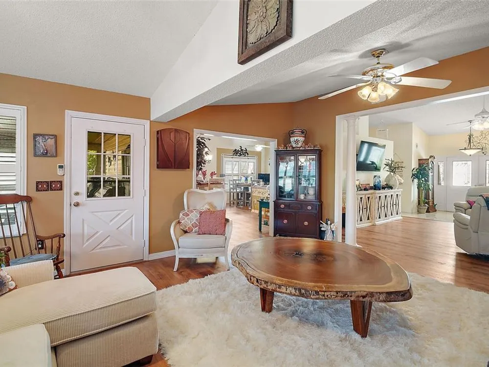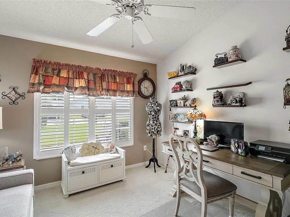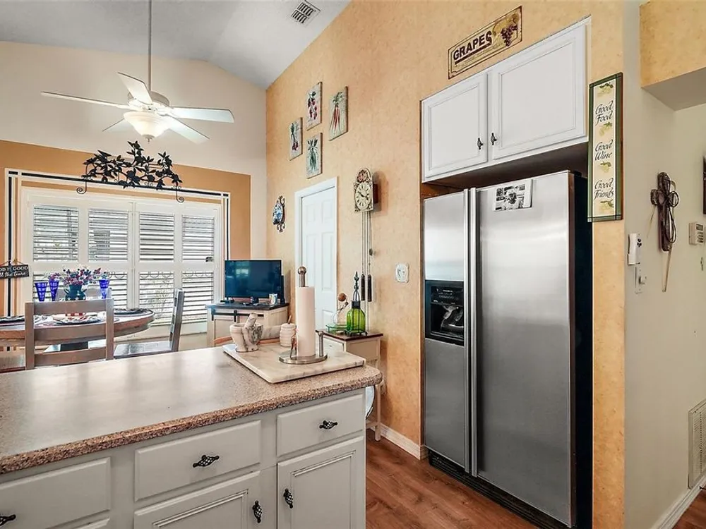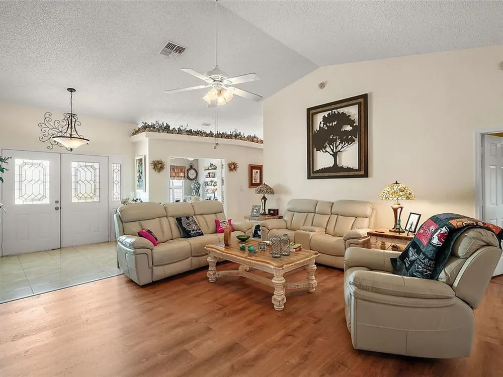 Welcome to Your Dream Home in a Premier Gated Active Adult Golf Community! Step into comfort and style with this beautifully updated 2-bedroom, 2-bath home, nestled in one of the area's most sought-after 55+ golf communities. From the moment you arrive, you'll be greeted by charming curb appeal with a brick paver driveway, a welcoming front patio, and elegant double-door entry. Inside, you'll find upgraded wood laminate flooring flowing throughout, setting the tone for a fresh and modern interior. The spacious floor plan includes an oversized bonus room—perfect for entertaining, hobbies, or relaxing with guests. Plantation shutters add a timeless touch and let in just the right amount of natural light. Heart of the home is the warm welcoming kitchen open to dining and ideal for gatherings. Stunning primary bathroom, thoughtfully remodeled with a large walk-in tiled shower, dual shower heads, and an updated vanity that offers both style and function. Enjoy Florida living year-round in the large enclosed lanai with ceramic tile flooring, or step out back to your expansive rear brick paver patio with sweeping views of the golf course—a perfect setting for morning coffee or evening sunsets. Additional highlights include a screened garage, updated roof (2022), and a quiet, neighborly location close to all the community’s resort-style amenities. Don’t miss your chance to live the lifestyle you deserve—golf, friends, and sunshine await!