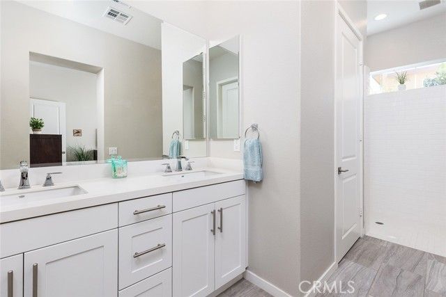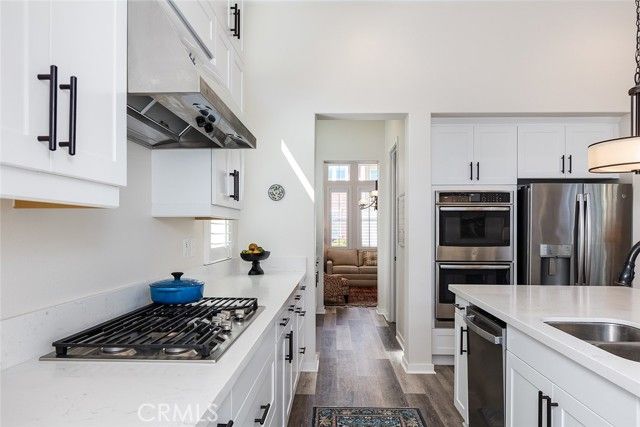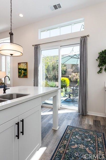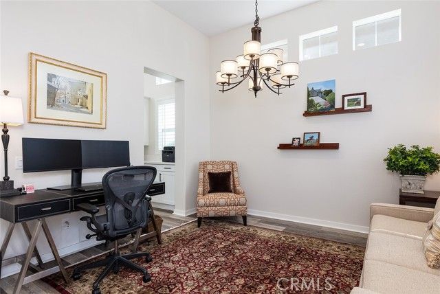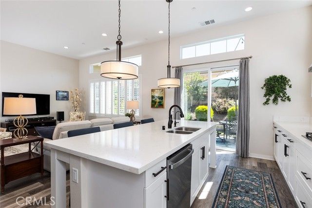 Welcome to this beautifully appointed single-story home offering 2 bedrooms, 2 bathrooms, and a versatile bonus room ideal for a home office or formal dining space! High ceilings and transom windows fill the home with natural light, creating a bright and inviting atmosphere from the moment you enter. The open concept floor plan features a spacious great room that flows seamlessly into an expansive kitchen, complete with premium GE Monogram appliances, elegant white stone countertops and an extended center island—perfect for entertaining! A convenient walk-through butler’s pantry and an oversized walk-in pantry offer exceptional storage. A generous primary suite includes a well-appointed en-suite bathroom with double sinks, a walk-in tiled shower, a large walk-in closet, high transom windows and a sliding glass door with access to the peaceful outdoor garden. Enjoy effortless indoor-outdoor living with a seamless transition to a private patio surrounded by beautiful landscaping—an ideal setting for morning coffee or relaxing evening barbecues. Thoughtful upgrades include wide-plank luxury vinyl flooring, plantation shutters, sliding glass doors, recessed lighting, ceiling fans, smart home features and extra overhead storage in the attached two car garage. Situated within the active, gated 55+ community of Verano at Aliento and nestled within the desirable Golden Valley area of Santa Clarita, this home offers immediate access to scenic hiking and biking trails. Nearby popular stores and resaurants are all just minutes away, along with quick access to the 14 freeway. Verano residents also enjoy full access to two community centers featuring pools, spas, fitness centers, and inviting gathering spaces. This is truly a retreat you’ll love coming home to!
