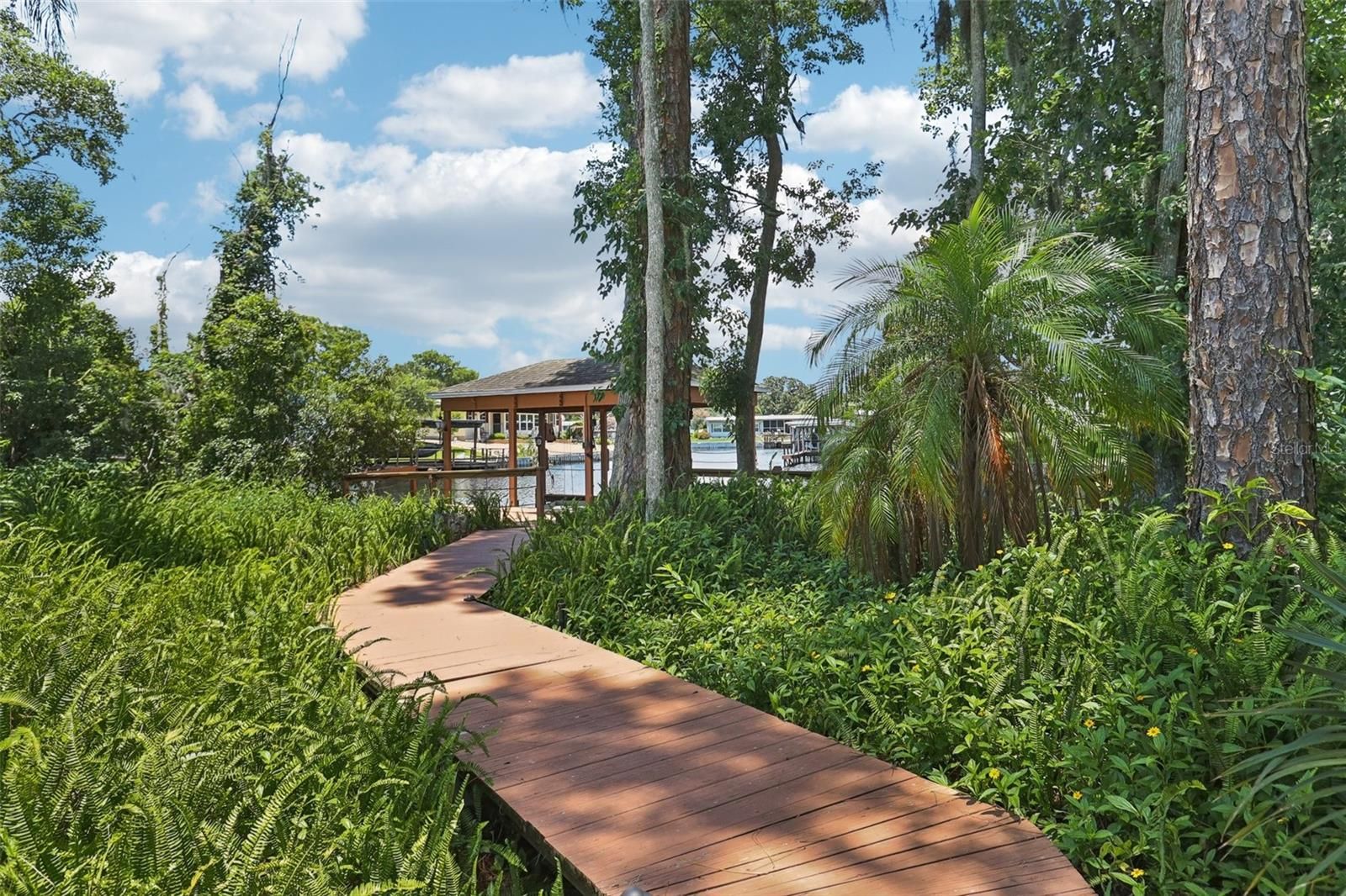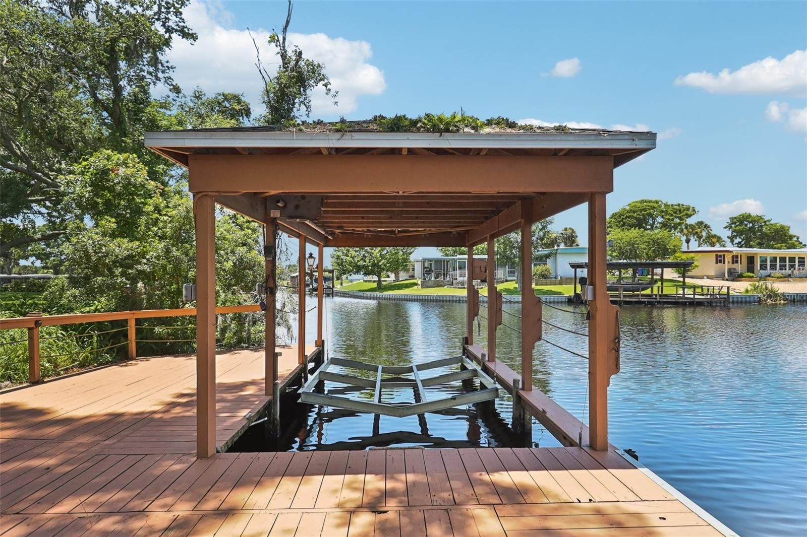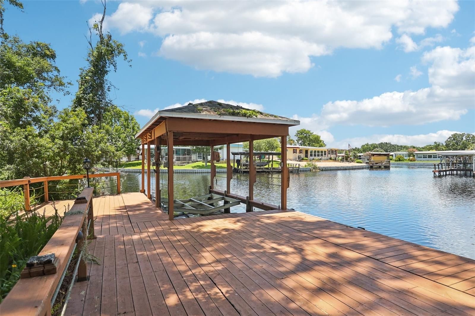 Back on the market as Buyer's financing fell through and a new price. 55 Plus Baytree Canal front home to the Dora Canal and Harris Chain of Lakes. Pictures are worth a thousand words for this immaculately updated home. The Boathouse with lift and deck out your back door is your passport to everything on the Harris Chain of Lakes. This three bed two bath home, with the third bedroom currently used as an office, situated at the end of a quiet cul-de-sac is offered furnished, features beautiful waterfront views, crown molding throughout, granite counters, motorized blinds, plantation shutters, elegant finishes and an oversized air conditioned garage The affordable HOA includes lawn mowing, irrigation, landscape trimming around the home, and power washing of the outside yearly. Amenities include greenspace for outdoor enjoyment, a club house with a pool, library, exercise room, pickle ball court and a great rec room where you can enjoy many activities which include water aerobics, multiple card games, and monthly dinners. It is close to the downtown entertainment district, lakes, shopping, and great waterfront dining choices are out your back door. Come make this your piece of Paradise.