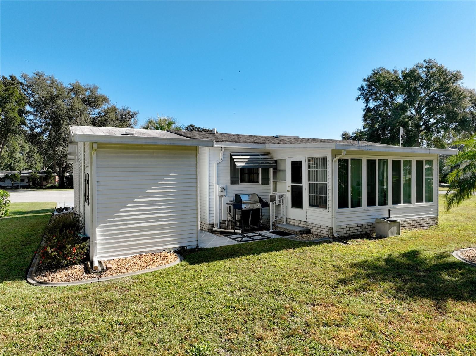Welcome to 25125 Bellevue, located in the Plantation at Leesburg. This cozy home is situated on a large landscaped corner lot, on a quiet cul-de-sac. The large living room and dining area provide plenty of room for entertaining. The kitchen has ample cabinet space and a breakfast bar. Both bedrooms have newer laminate floors. The large master bedroom offers built-in storage, a walk-in closet and en-suite bath with a shower, while the second bedroom provides a comfortable space for your guests. The 14x9 enclosed lanai offers additional space and opens up from the dining area via a slider. The lanai is surrounded by windows and has a window AC unit. Under the carport, there’s an outer building that provides a laundry area ,workshop with peg boards and storage space. The carport roof needs repair or replacement. There’s plenty of parking space on the extra wide and long driveway. Home is being sold with furniture and golf cart, as-is. Roof 2011. AC 2014. The Plantation at Leesburg is a an active 55+ community that offers a great lifestyle. It boasts 3 activity centers, 3 pools and spas, 2 fitness centers, tennis & pickleball courts, a driving range, 2- 18 hole golf courses, on-site restaurant & bar, along with many other amenities, clubs and activities. Come see what you’ve been missing!