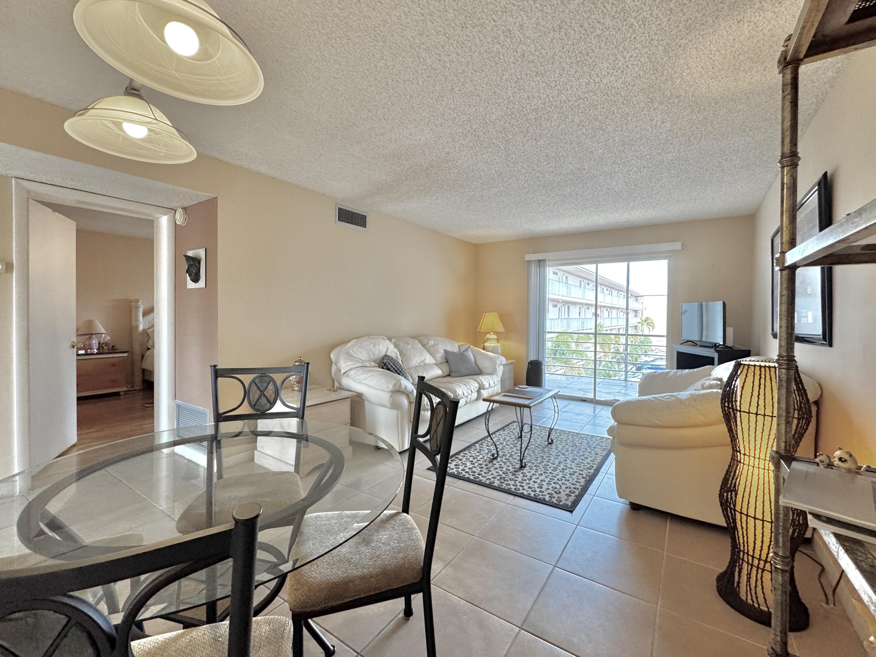 Fully furnished, turnkey 3rd-floor condo located in Building 14 of the highly sought-after 55+ community of Village Royale. This well-maintained unit features laminate and tile flooring, a spacious bedroom with two walk-in closets, and an easy, open layout. Milestone Inspection and SIRS have been completed and passed, with no current or upcoming assessments—offering peace of mind. Ideally situated next to the clubhouse and amenities. Monthly HOA includes cable, internet, and water. Just bring your suitcase and enjoy carefree active adult living.